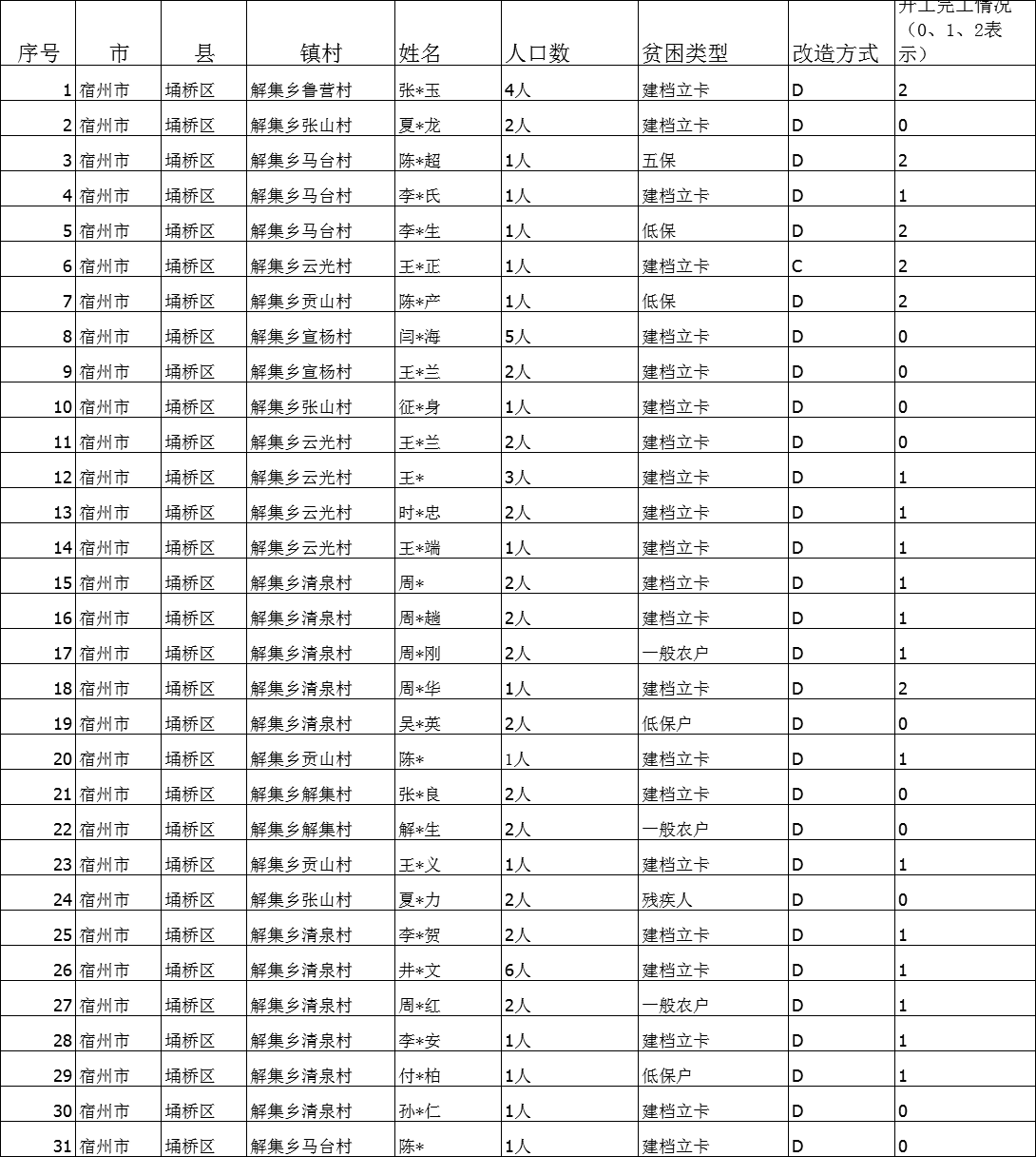 【危房改造完成】解集乡新增4类对象危房摸底汇总表