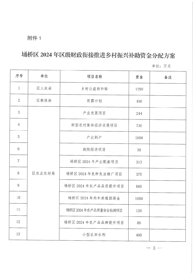 2024年区级财政衔接推进乡村振兴补助资金分配方案及项目计划的批复