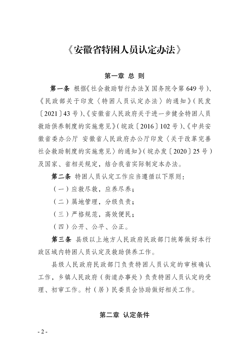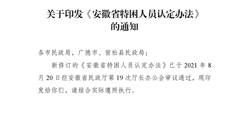 【政策法规文件】关于印发《安徽省特困人员认定办法》的通知(皖民社救字〔2021〕74号)