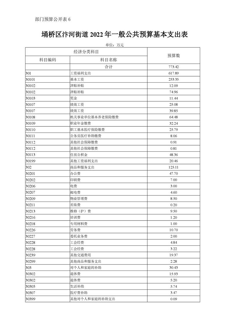【部门预算】汴河街道办事处2022年部门预算公开表