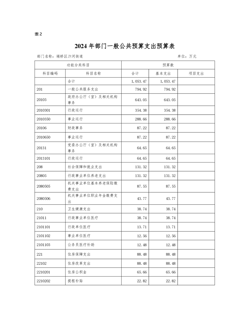 【部门预算】汴河街道办事处2024年部门预算公开表