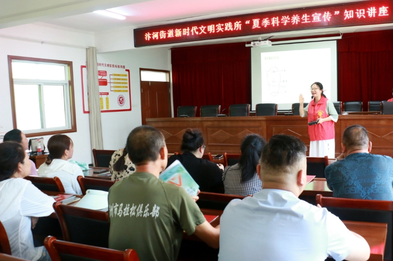 讲座现场,志愿者讲师站在台前,通过投影仪展示精心准备的 PPT,以通俗易懂的语言,围绕夏季的气候特点,深入浅出地讲解了夏季养生的重要性和方法。内容涵盖了夏季饮食调养、运动保健、作息调整等多个方面。
