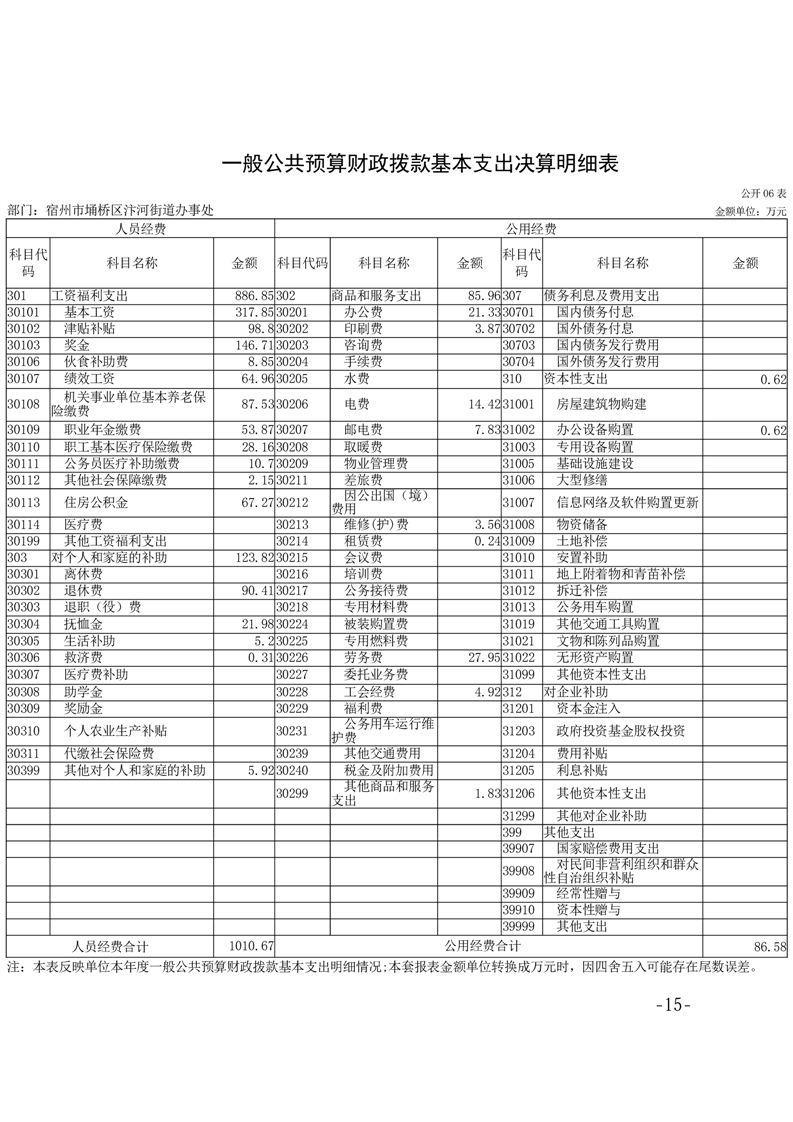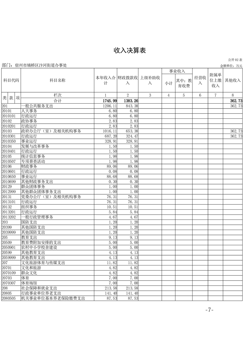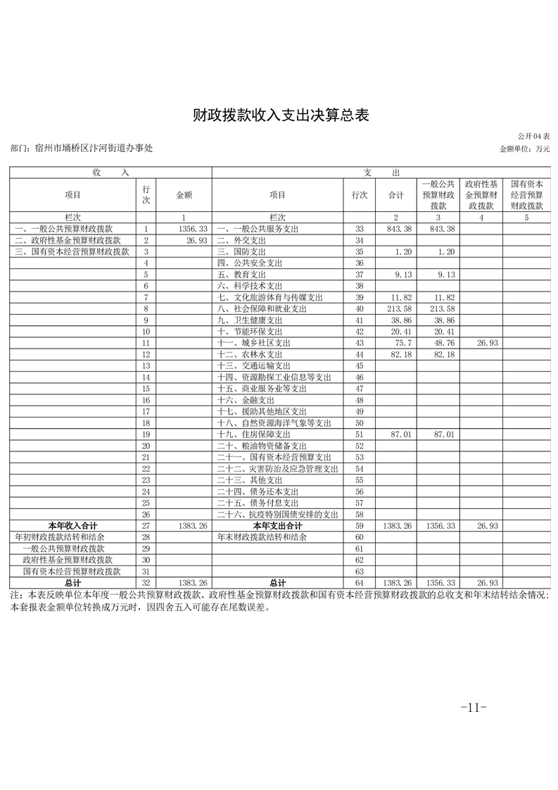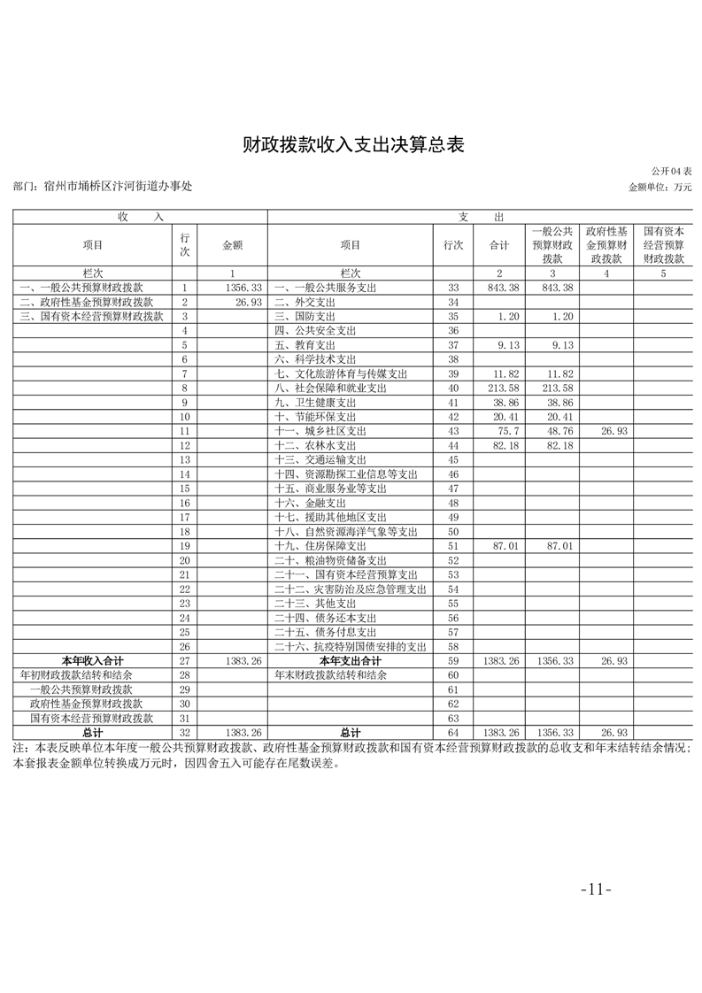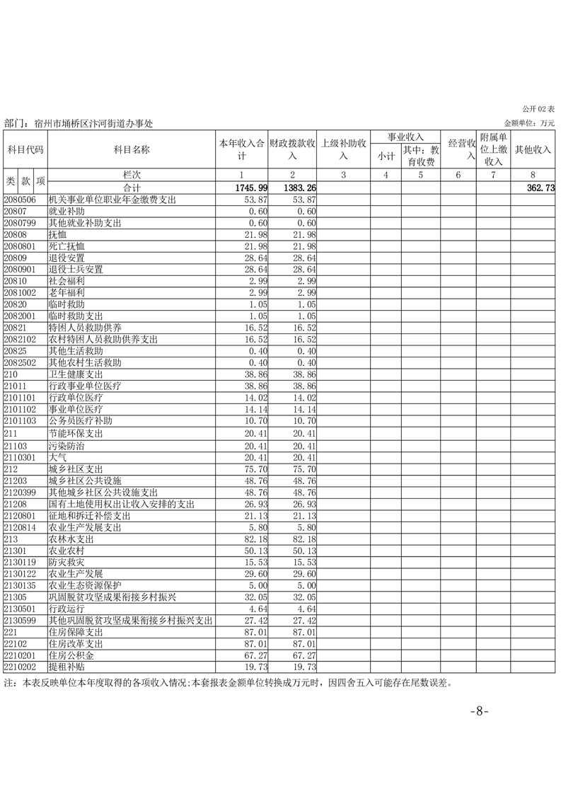【部门决算】宿州市埇桥区汴河街道2024年度部门决算