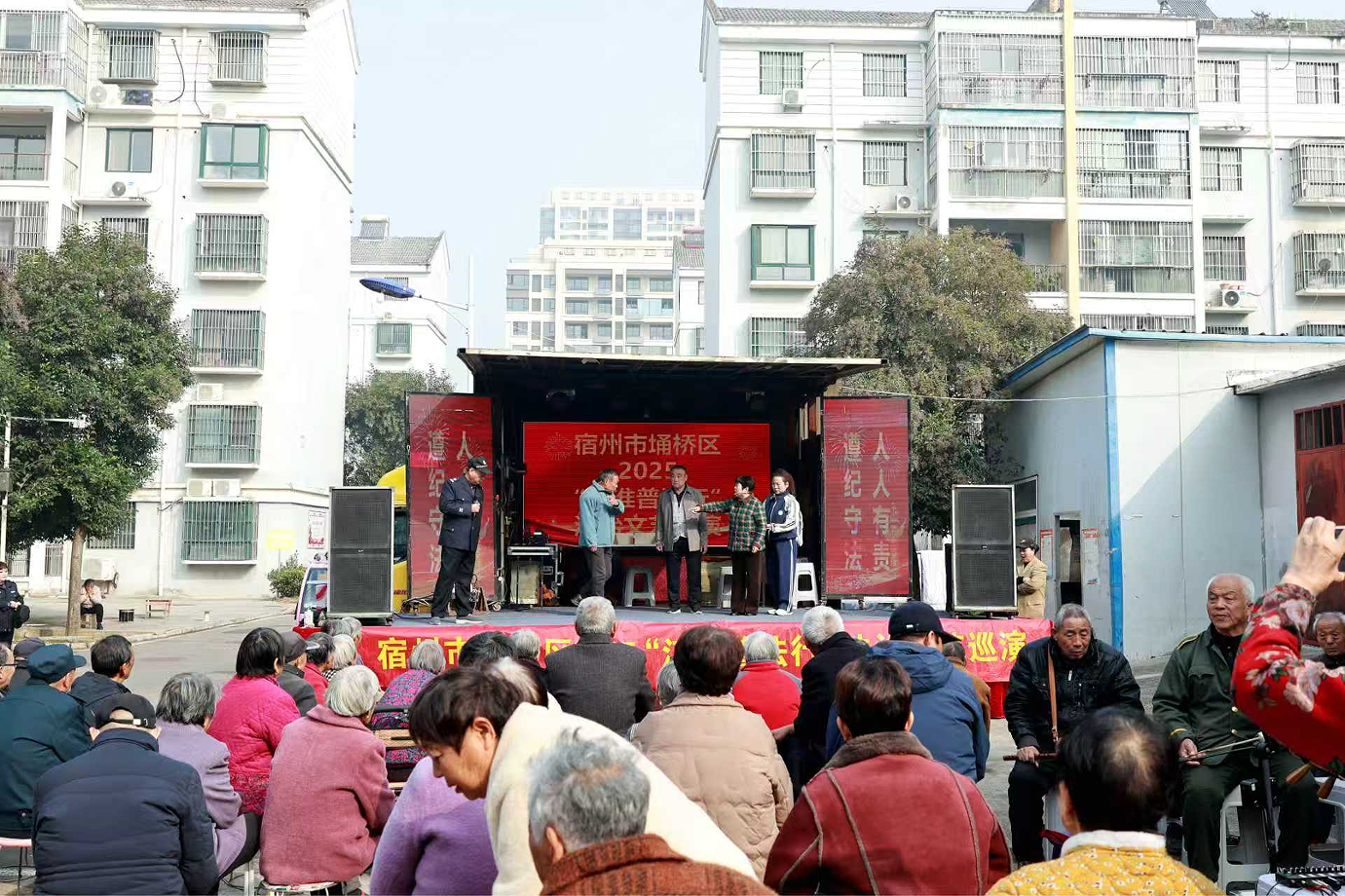 10月27日,埇桥区汴河街道唐河居民小区热闹非凡,埇桥区2025年“江淮普法行”法治文艺巡演在此精彩上演。