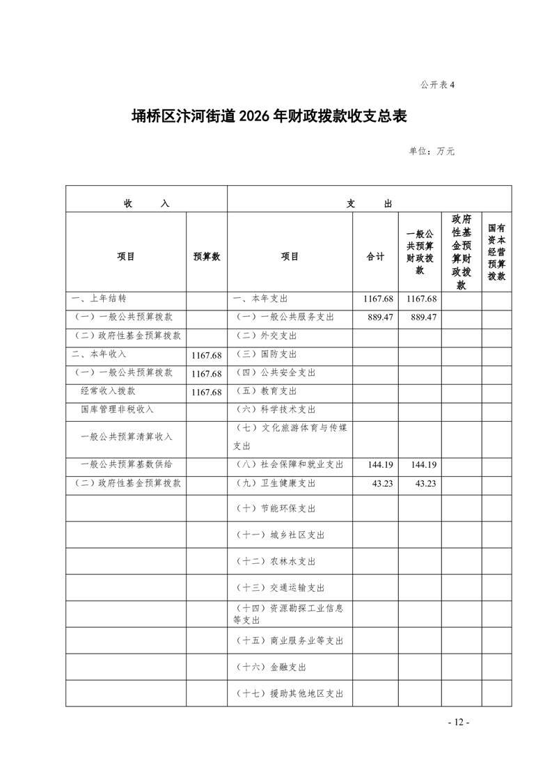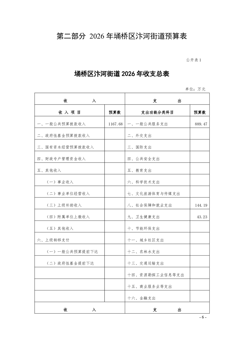 【部门预算】汴河街道办事处2026年度部门预算的批复