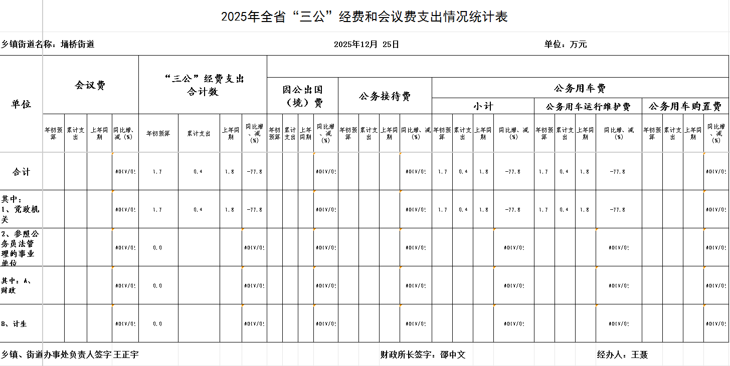 2025年埇桥街道办事处“三公”经费和会议费12月份支出情况统计表