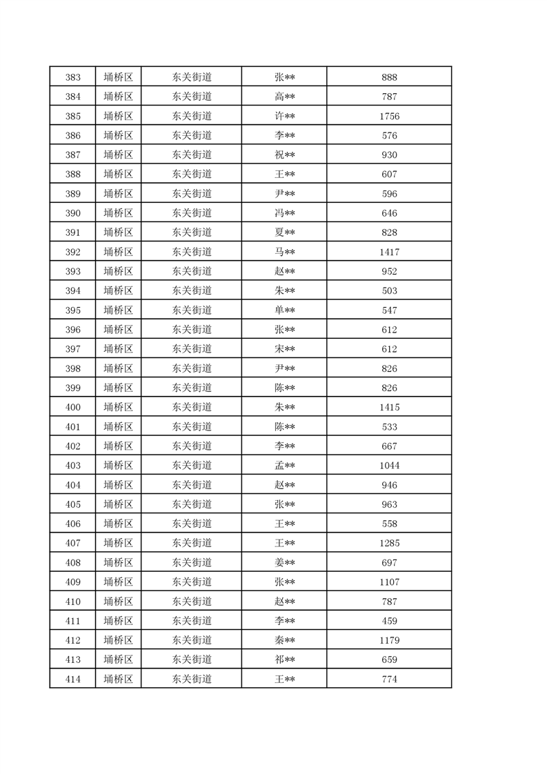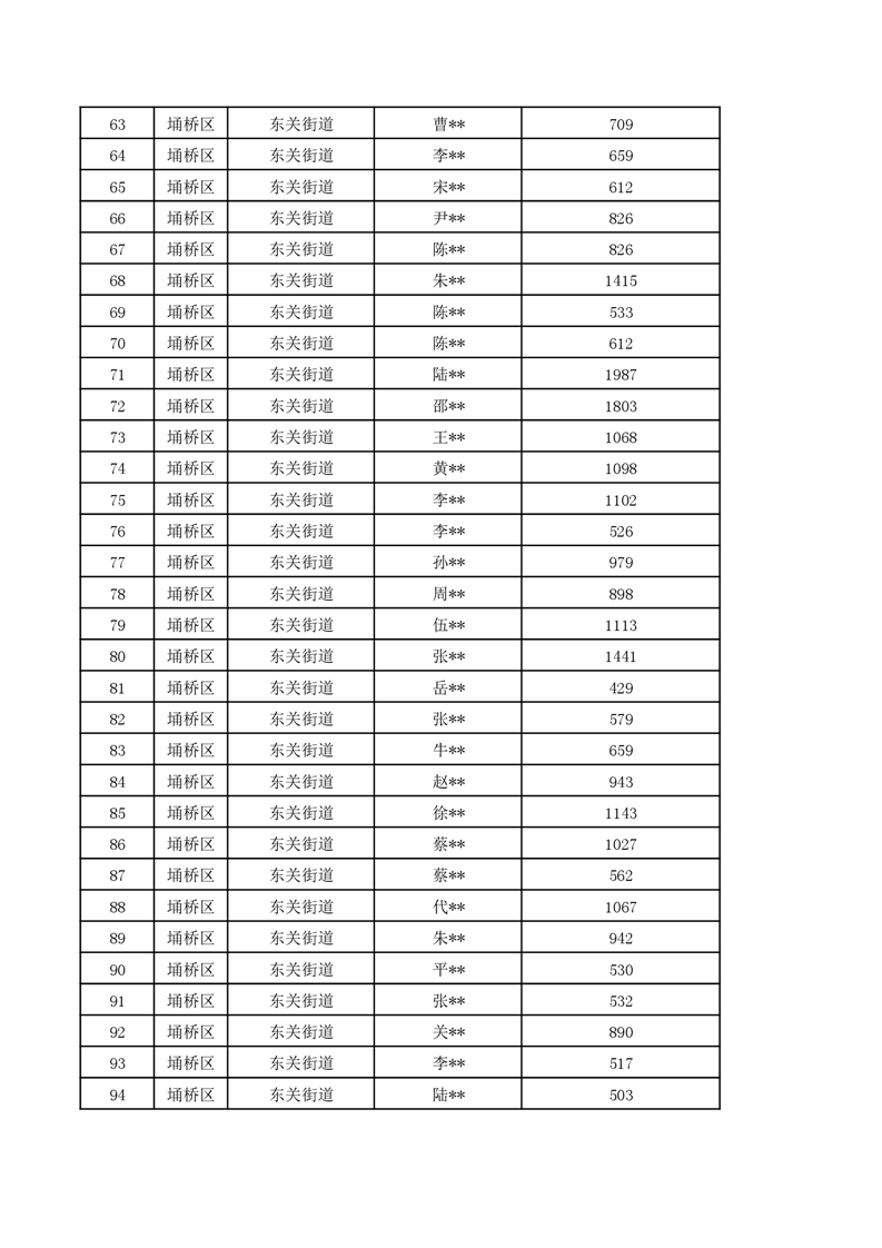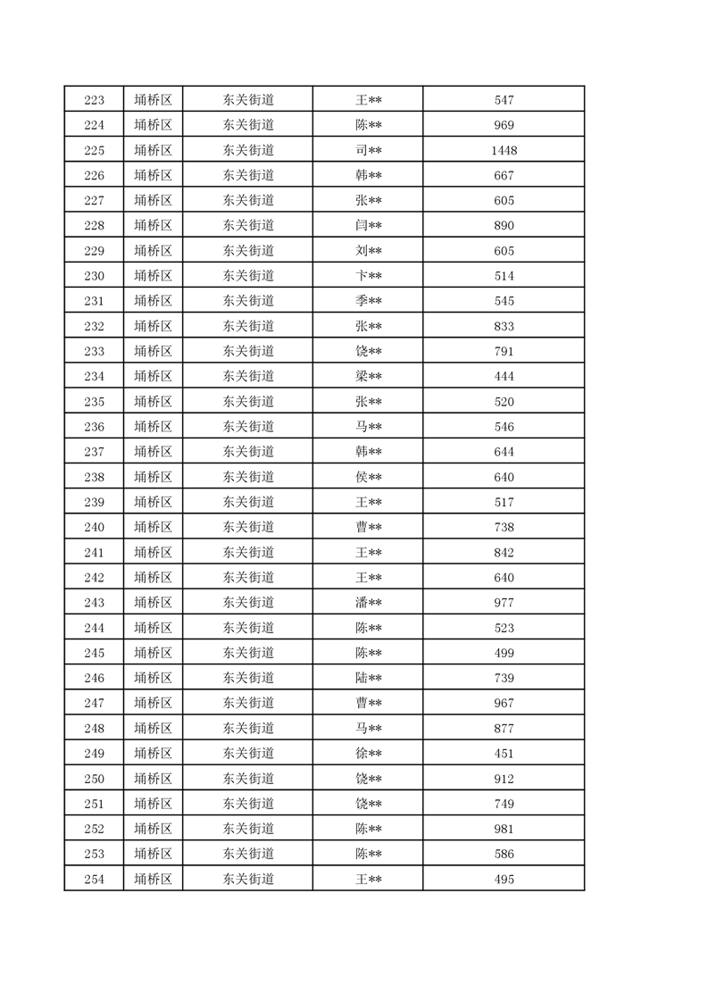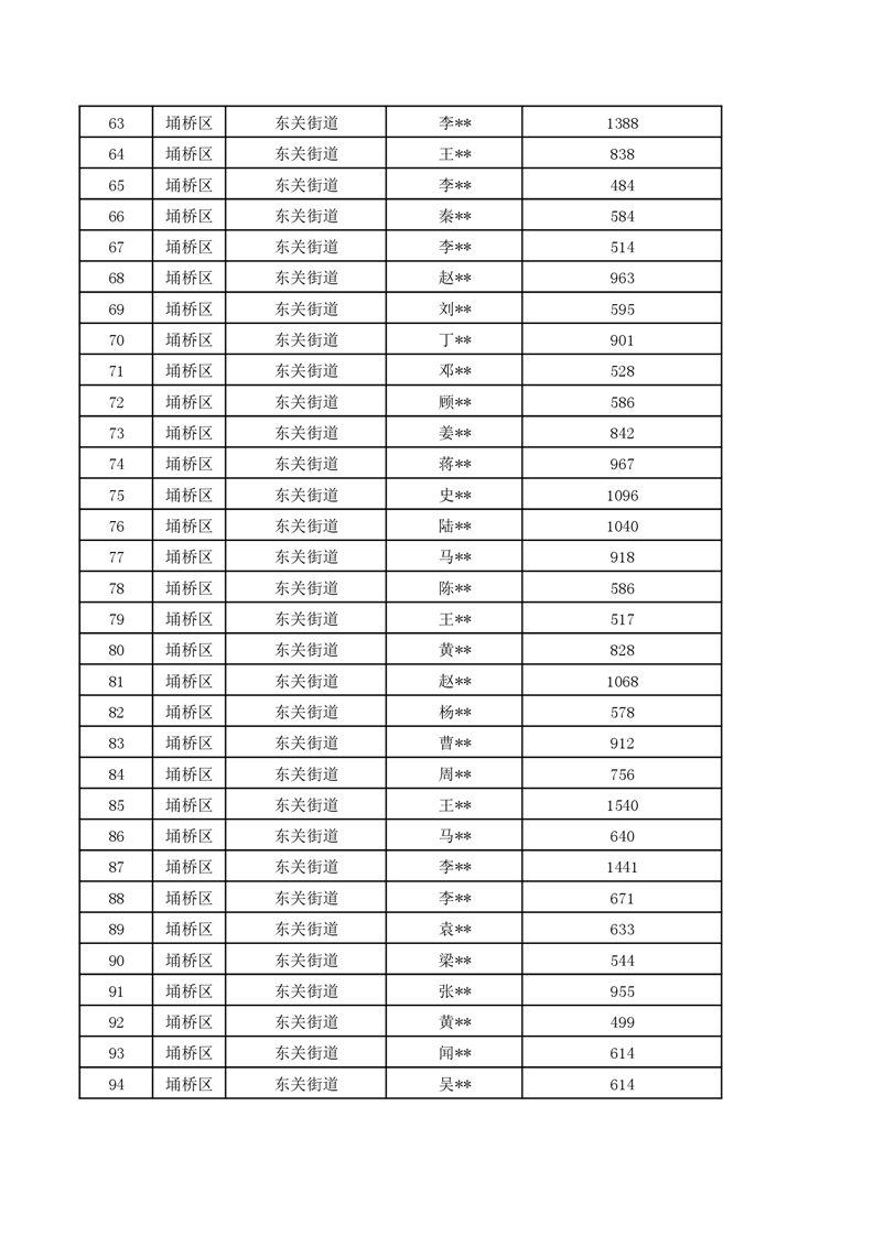 【城乡低保】东关街道2023年第一季度城乡低保发放花名册