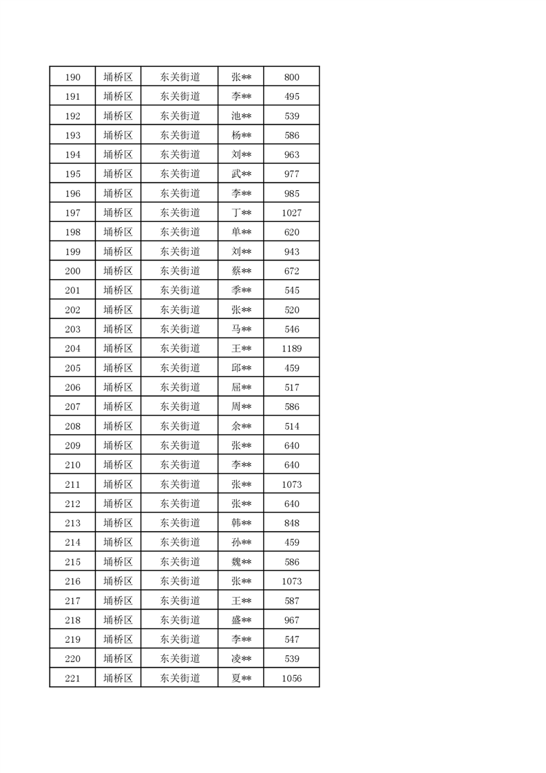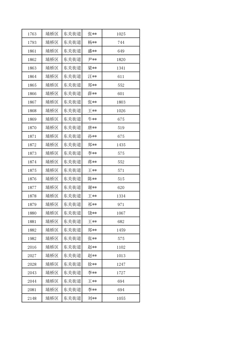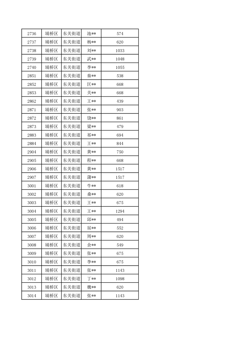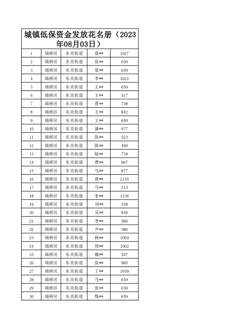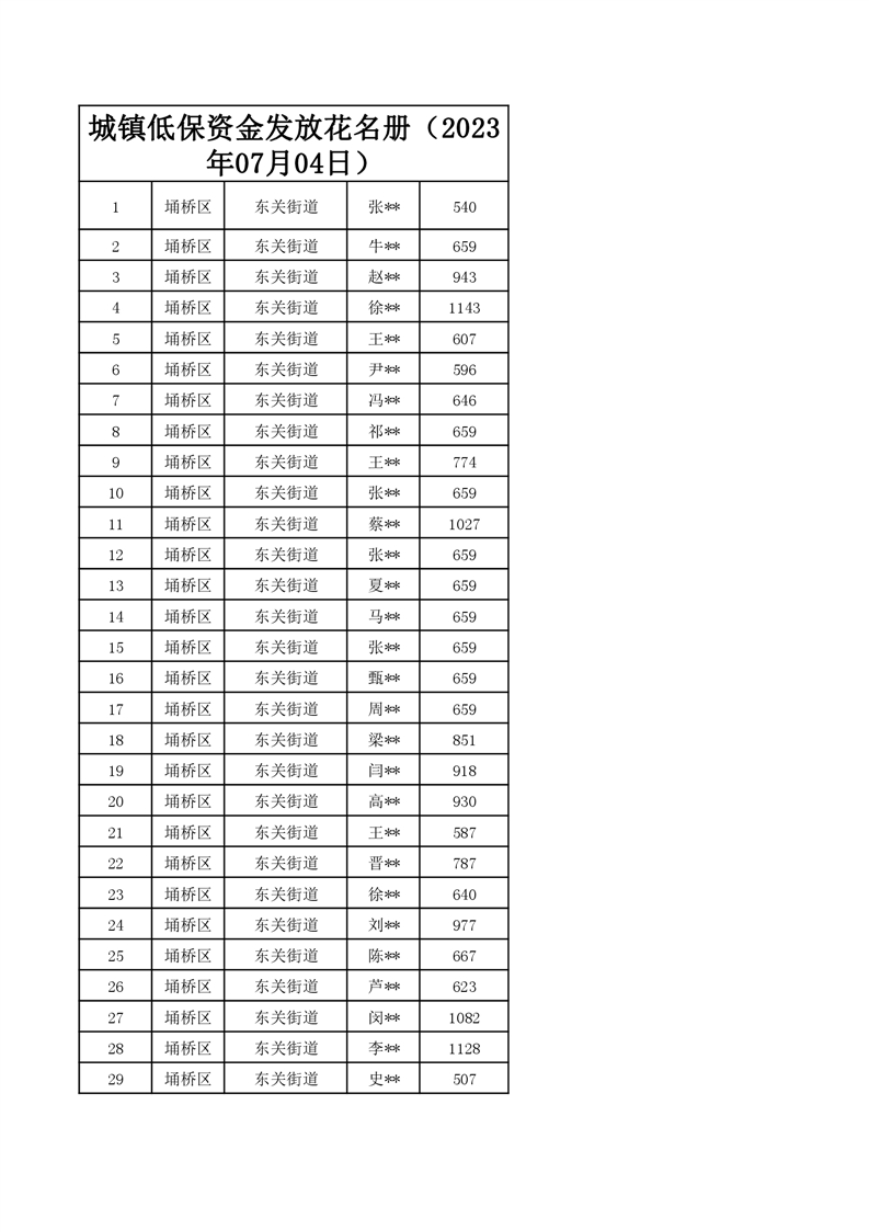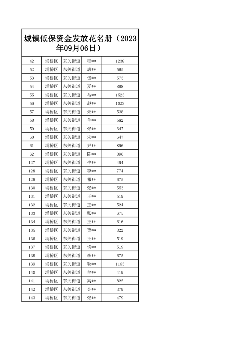 【城乡低保】东关街道2023年第三季度城乡低保发放花名册