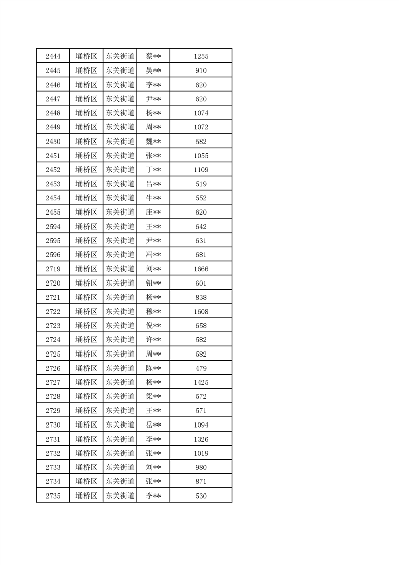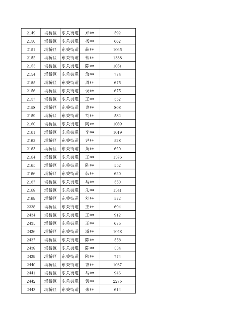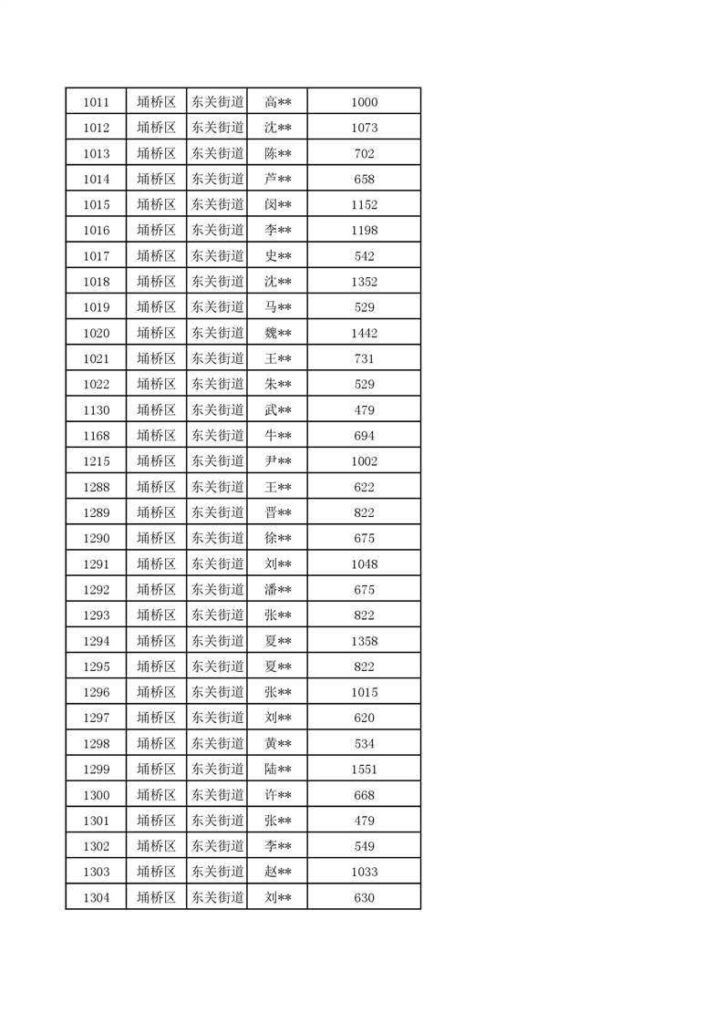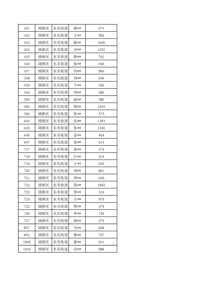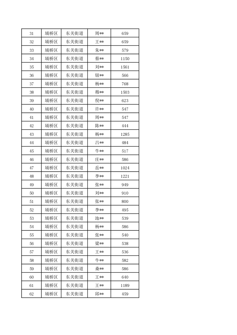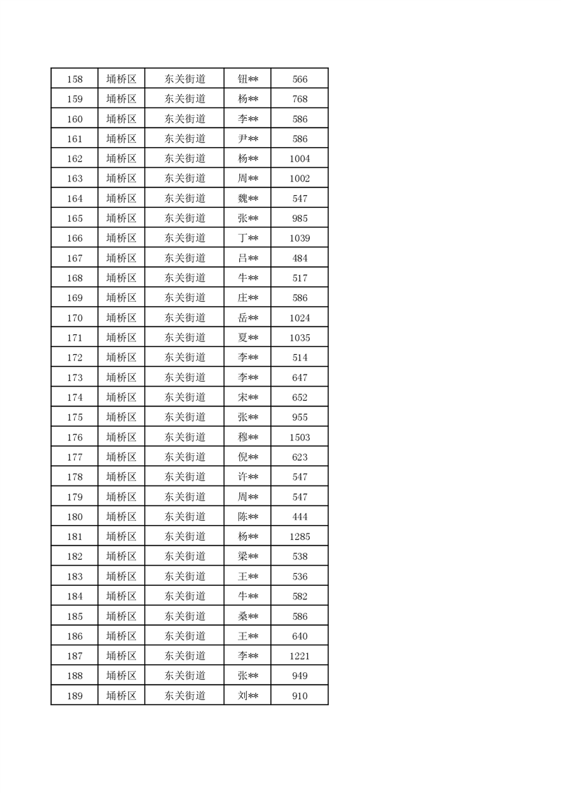 【城乡低保】东关街道2023年第三季度城乡低保发放花名册