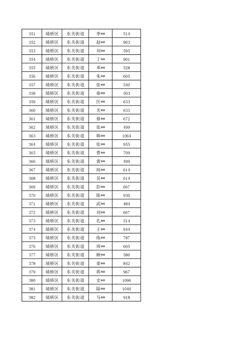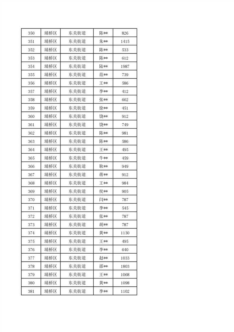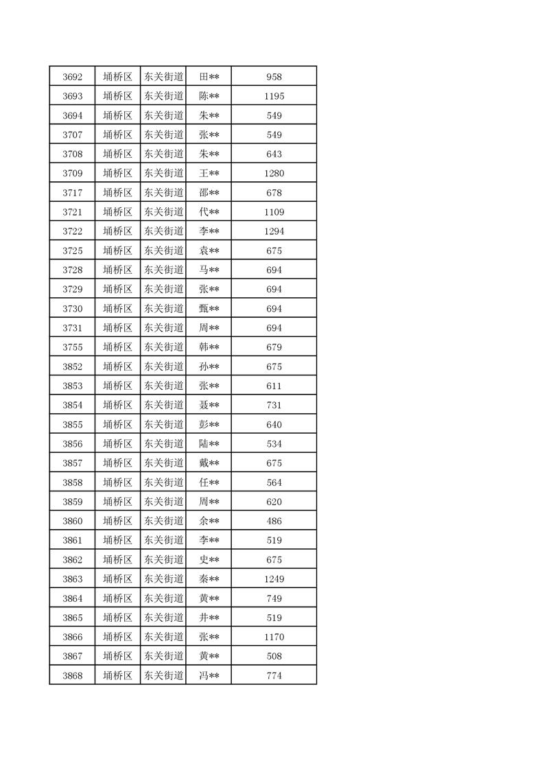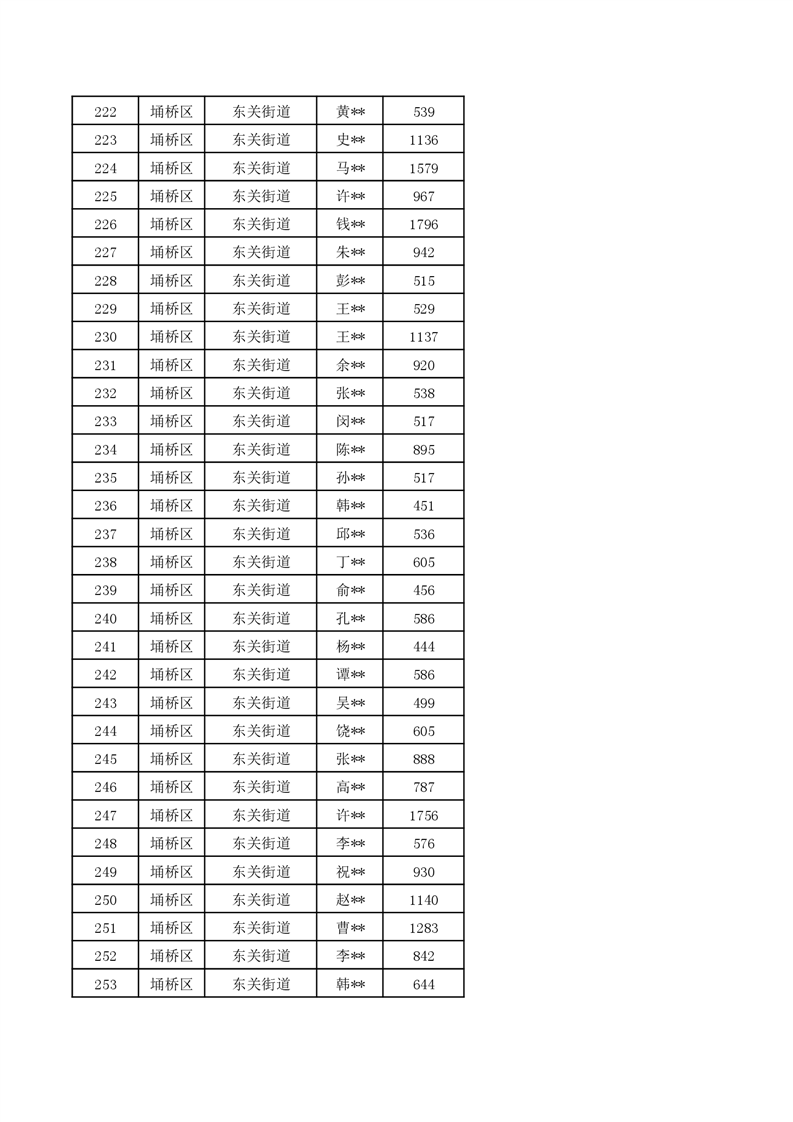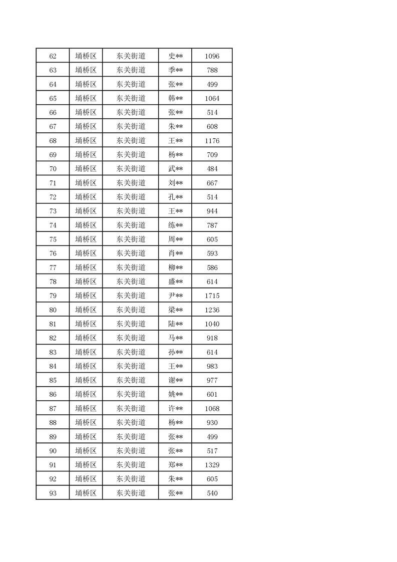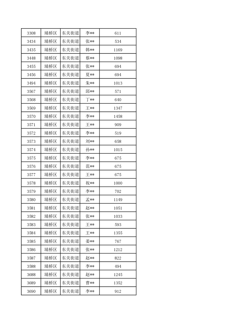 【城乡低保】东关街道2023年第三季度城乡低保发放花名册