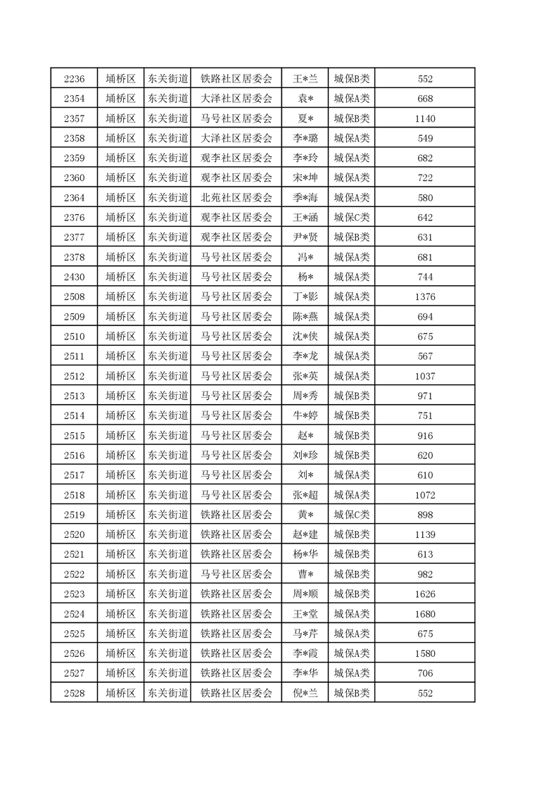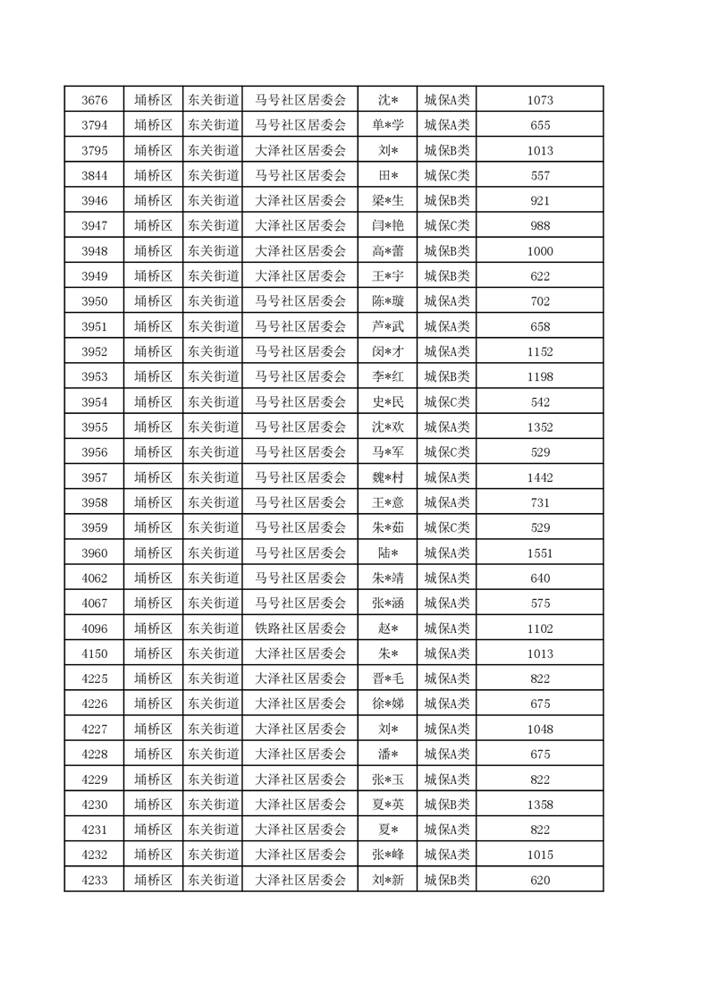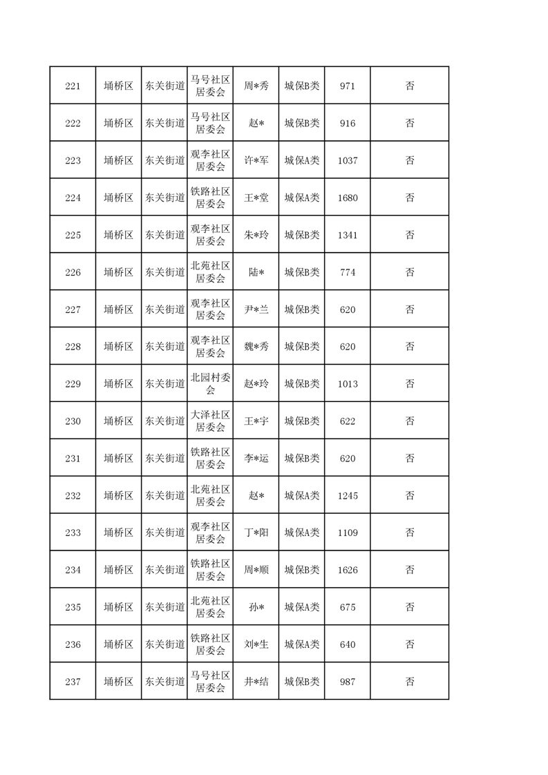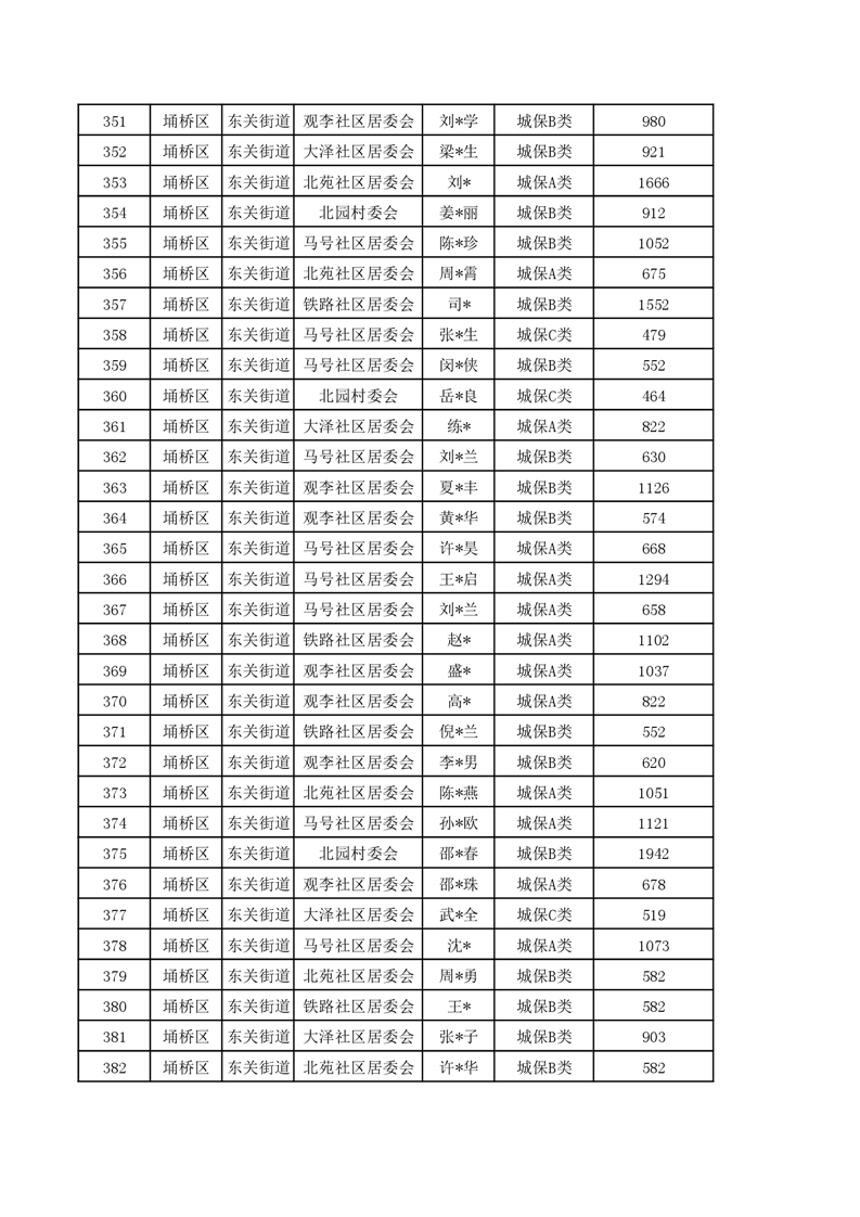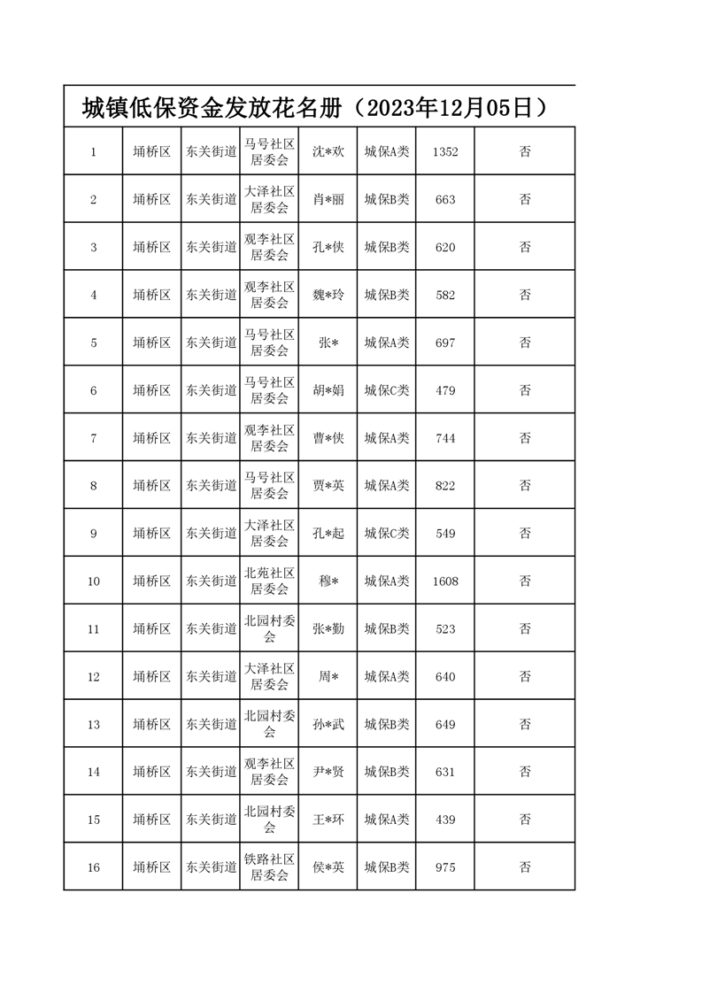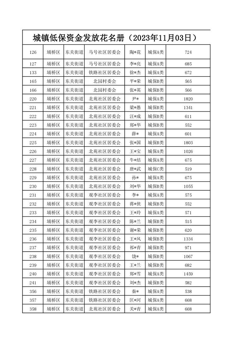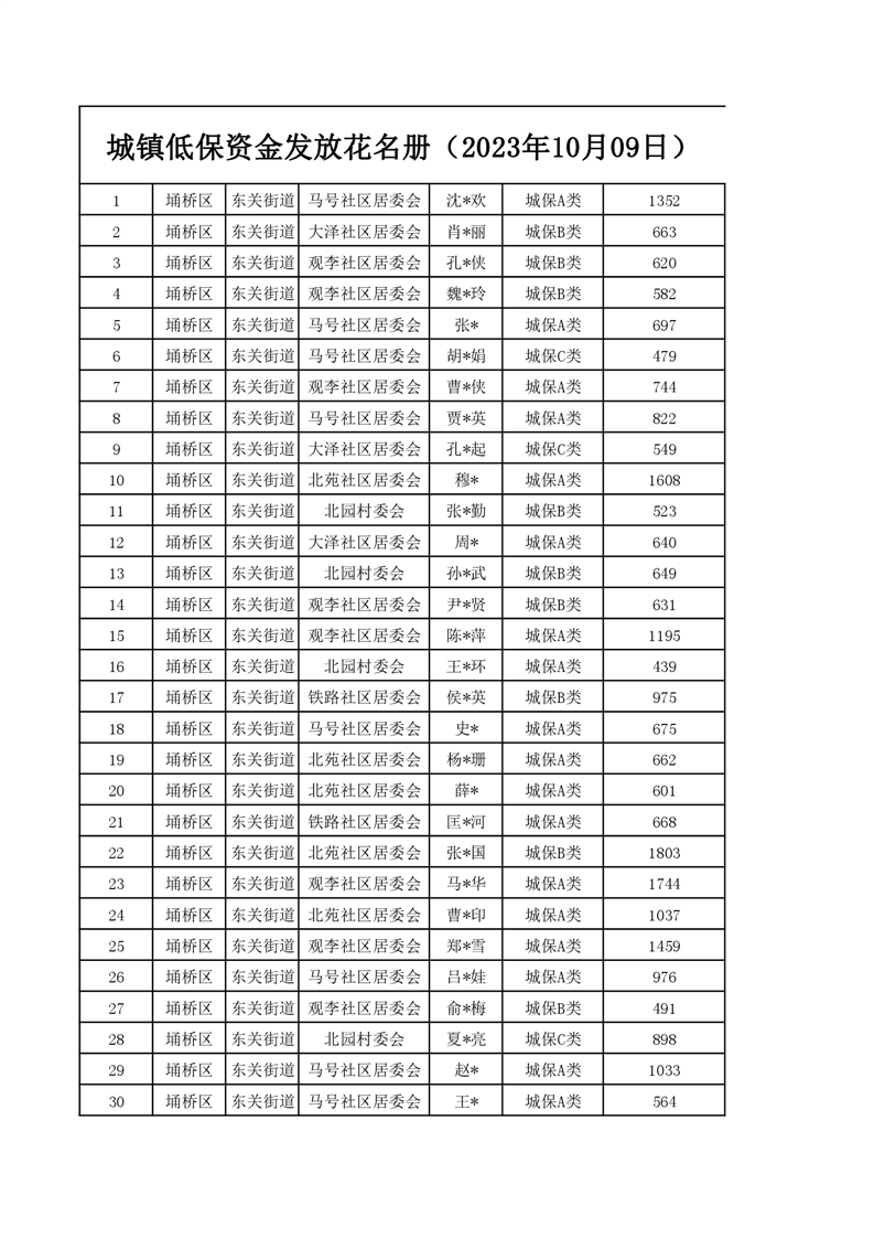 【城乡低保】东关街道2023年第四季度城乡低保发放花名册