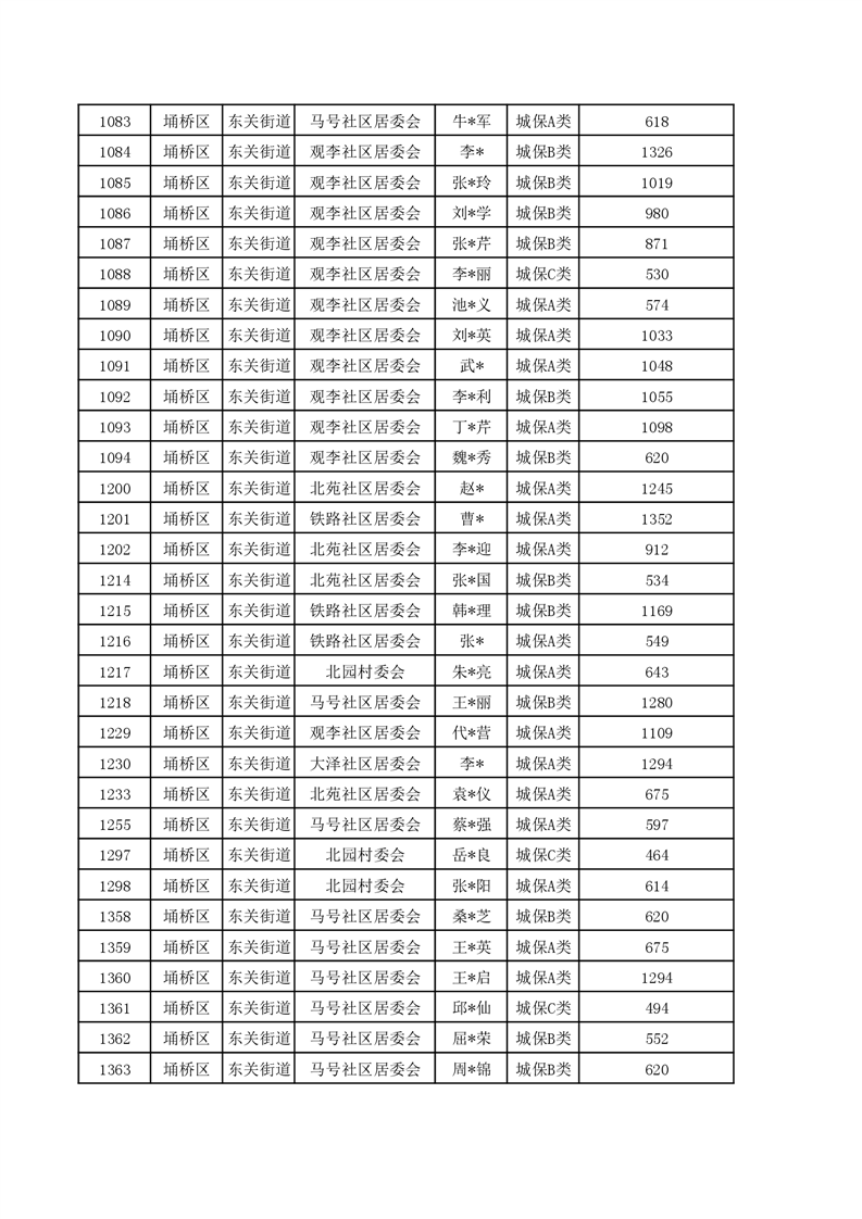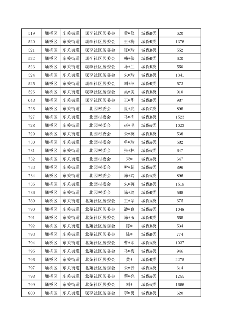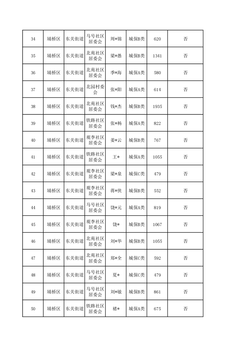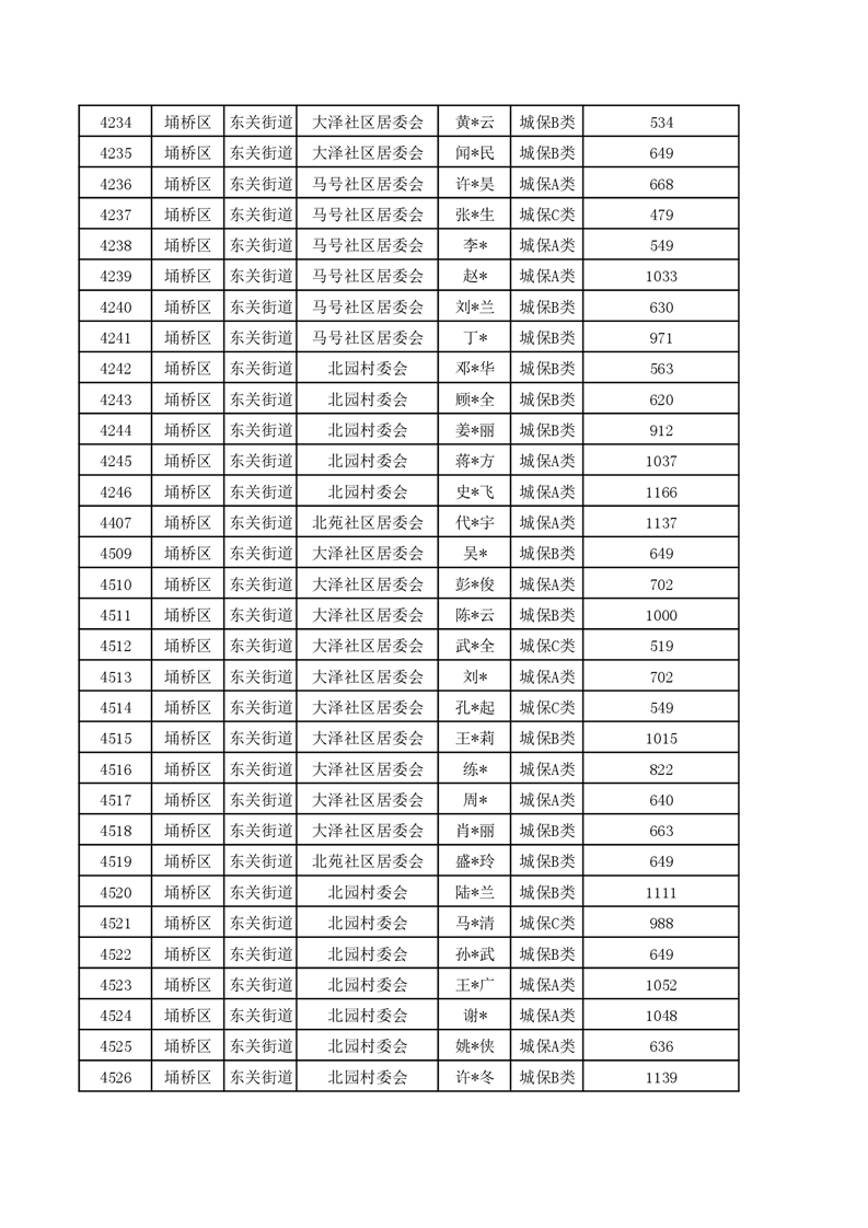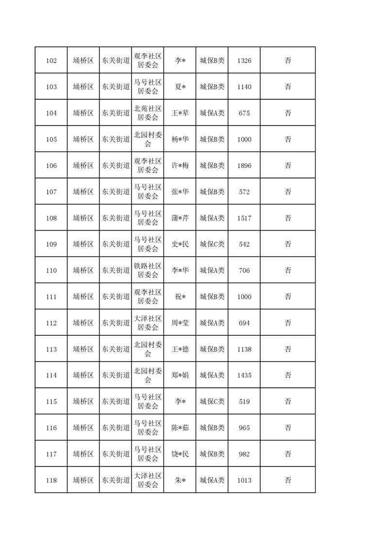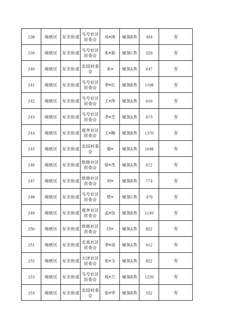 【城乡低保】东关街道2023年第四季度城乡低保发放花名册