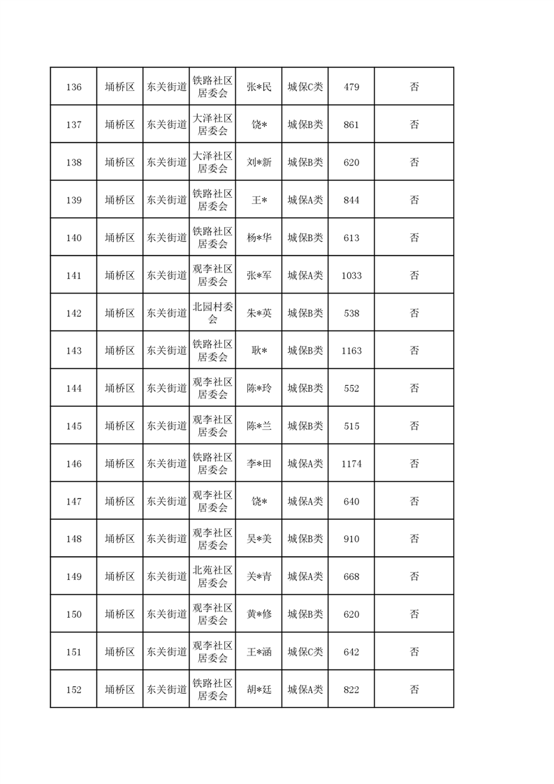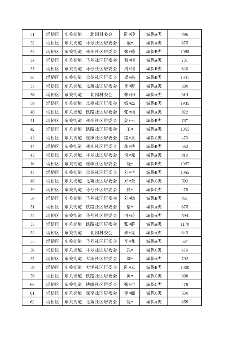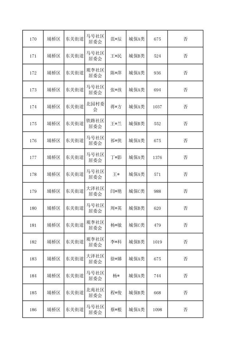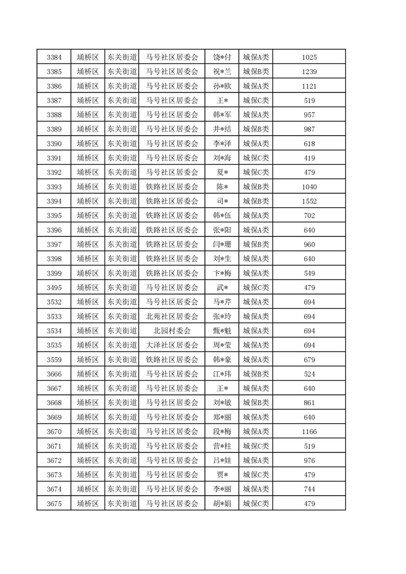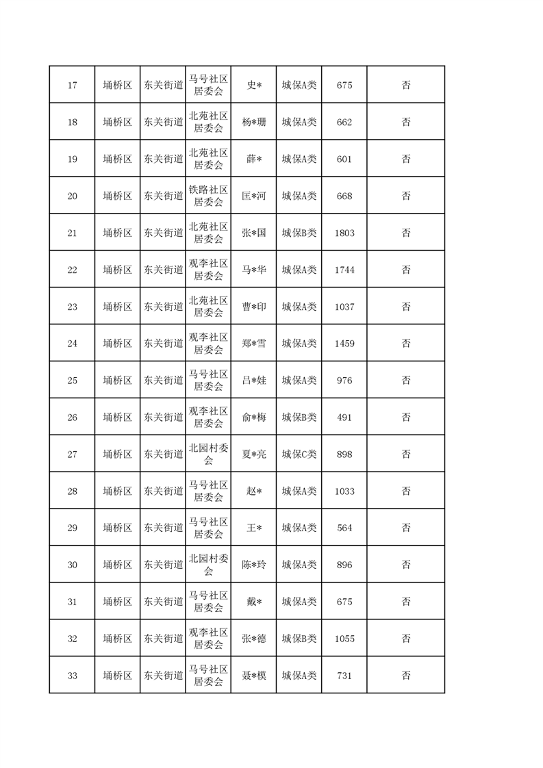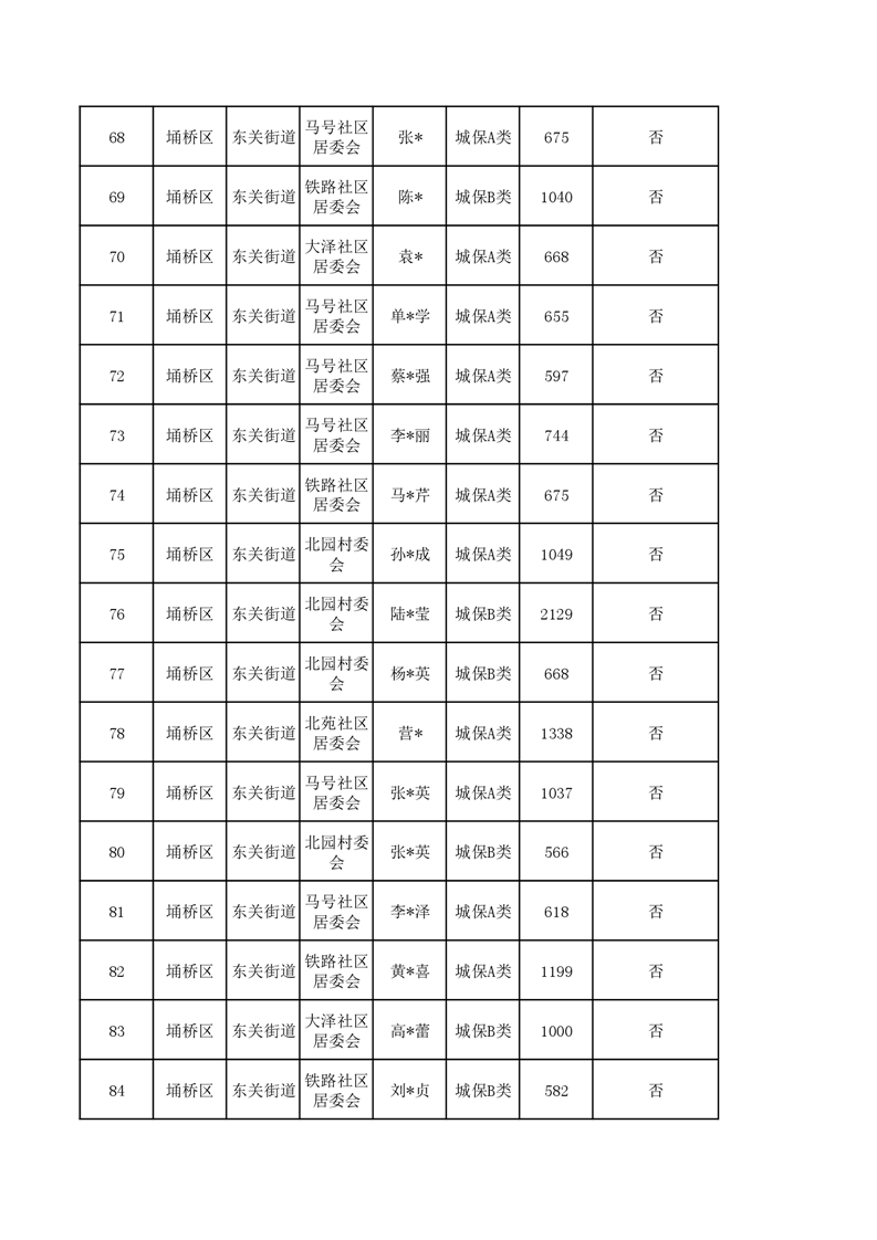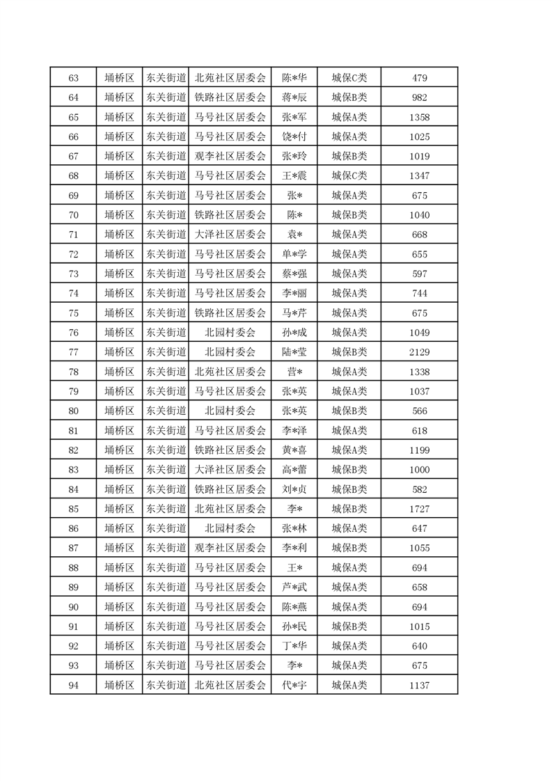 【城乡低保】东关街道2023年第四季度城乡低保发放花名册