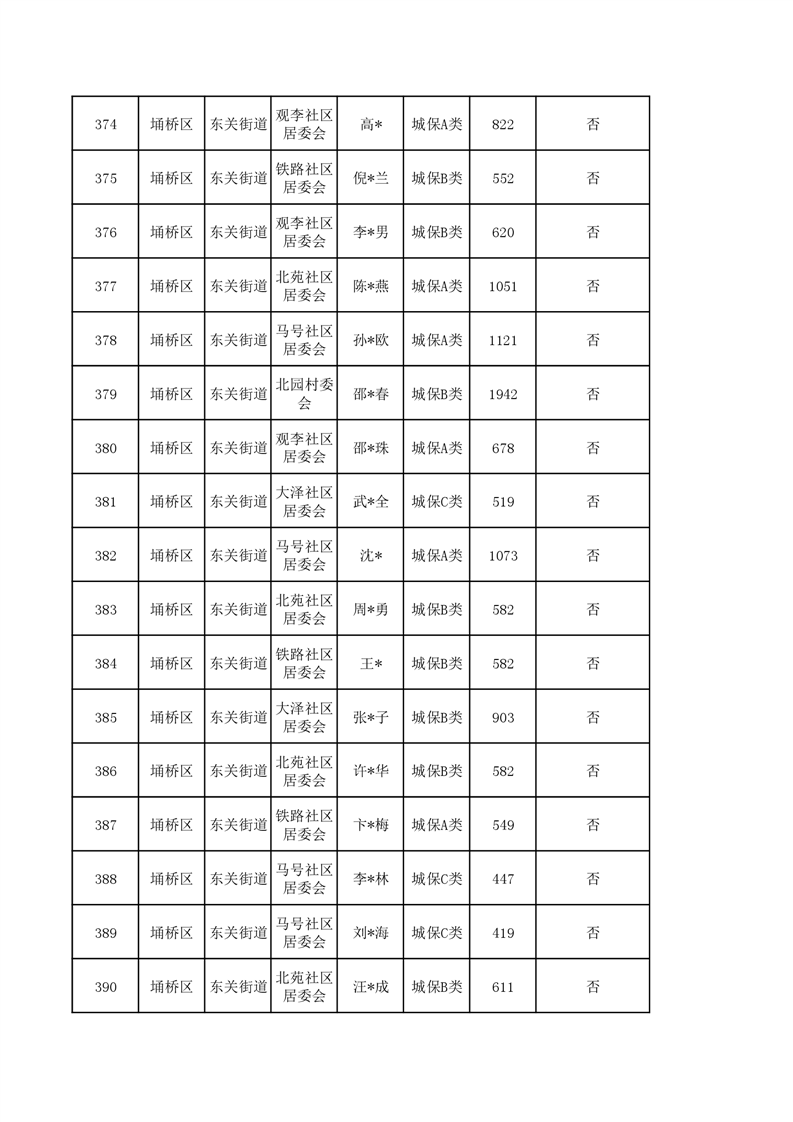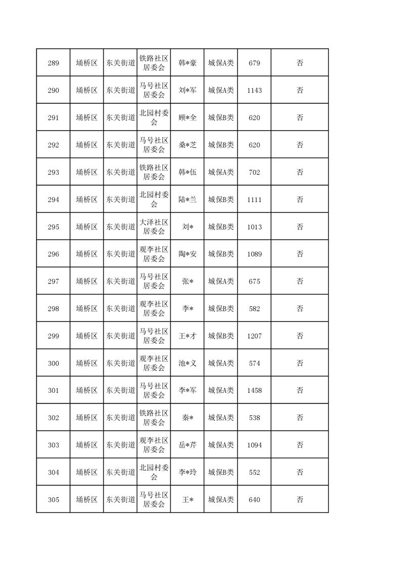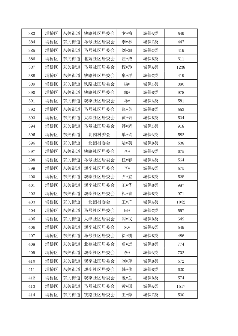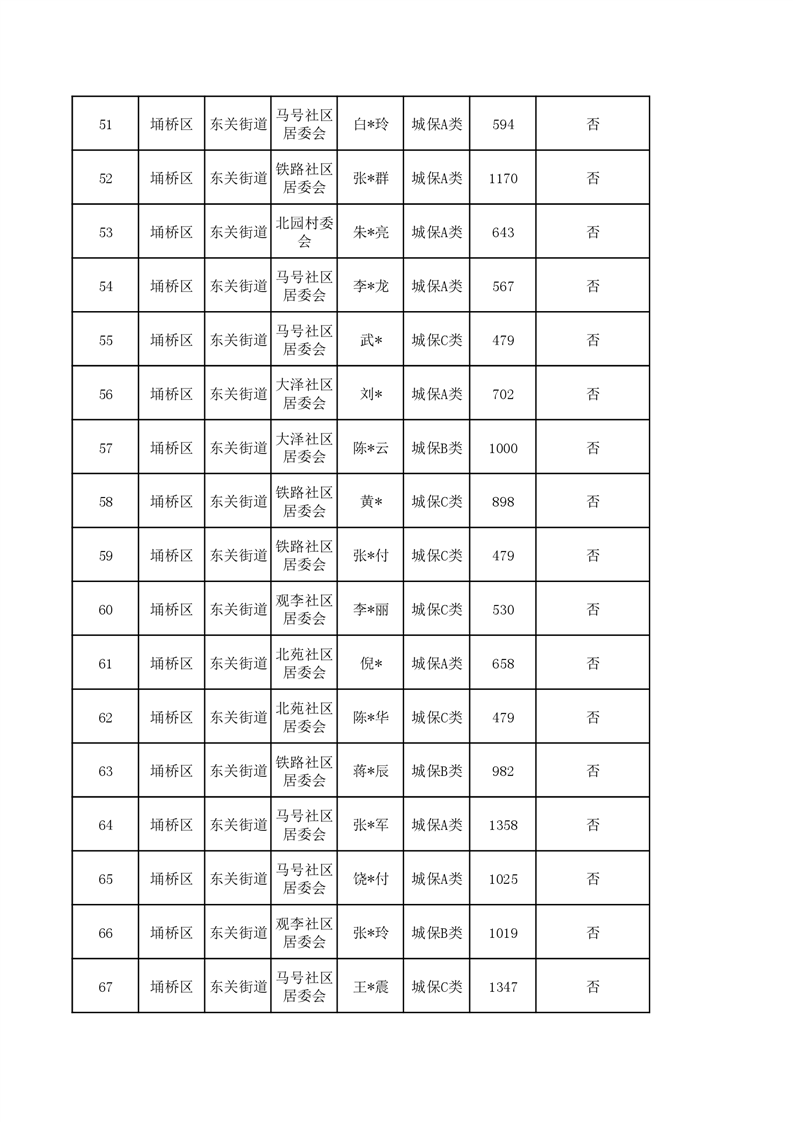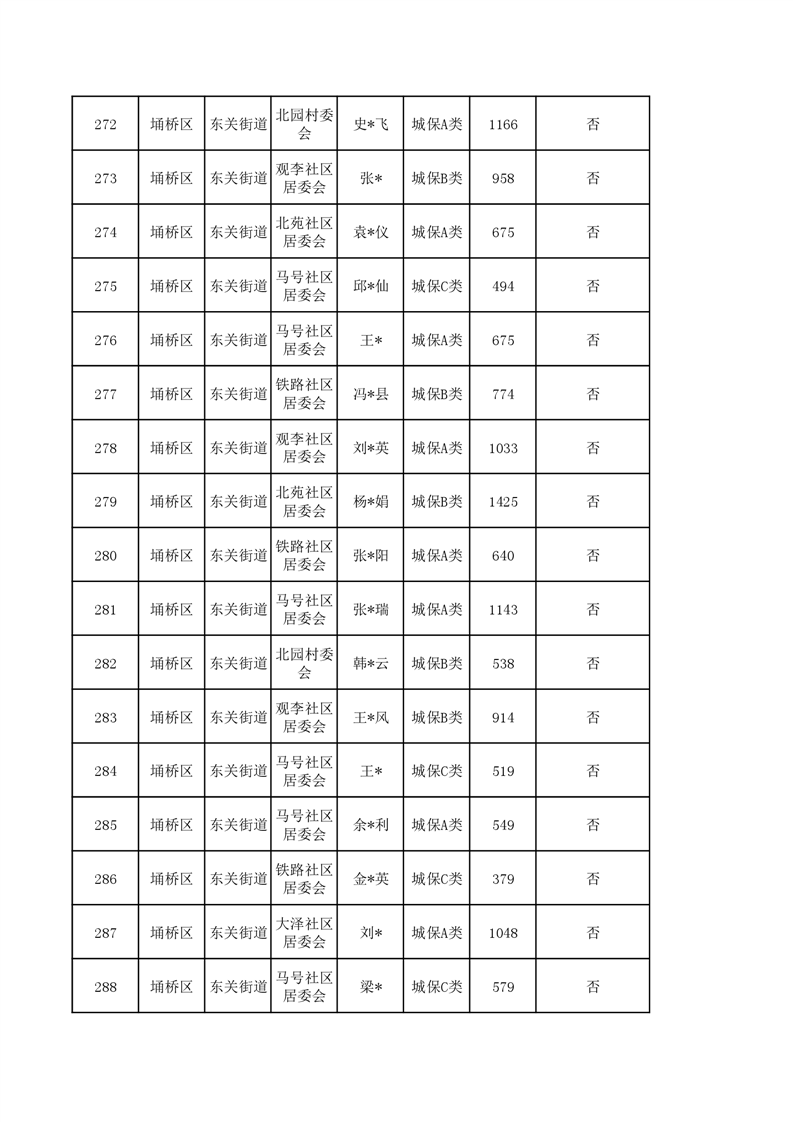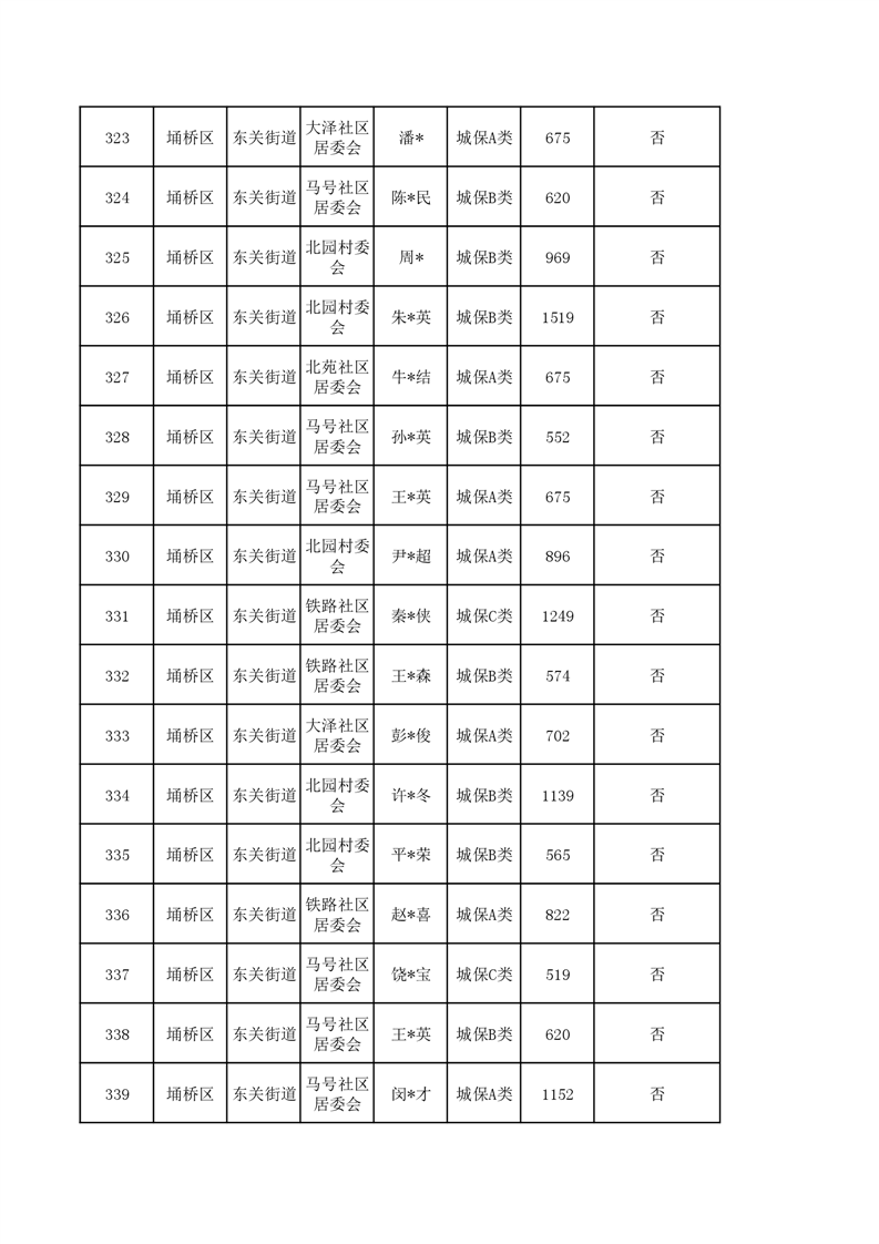 【城乡低保】东关街道2023年第四季度城乡低保发放花名册