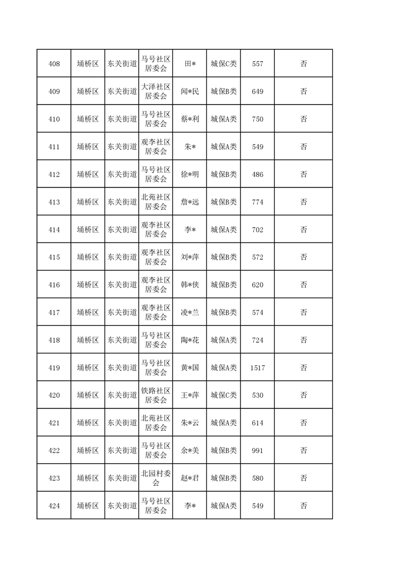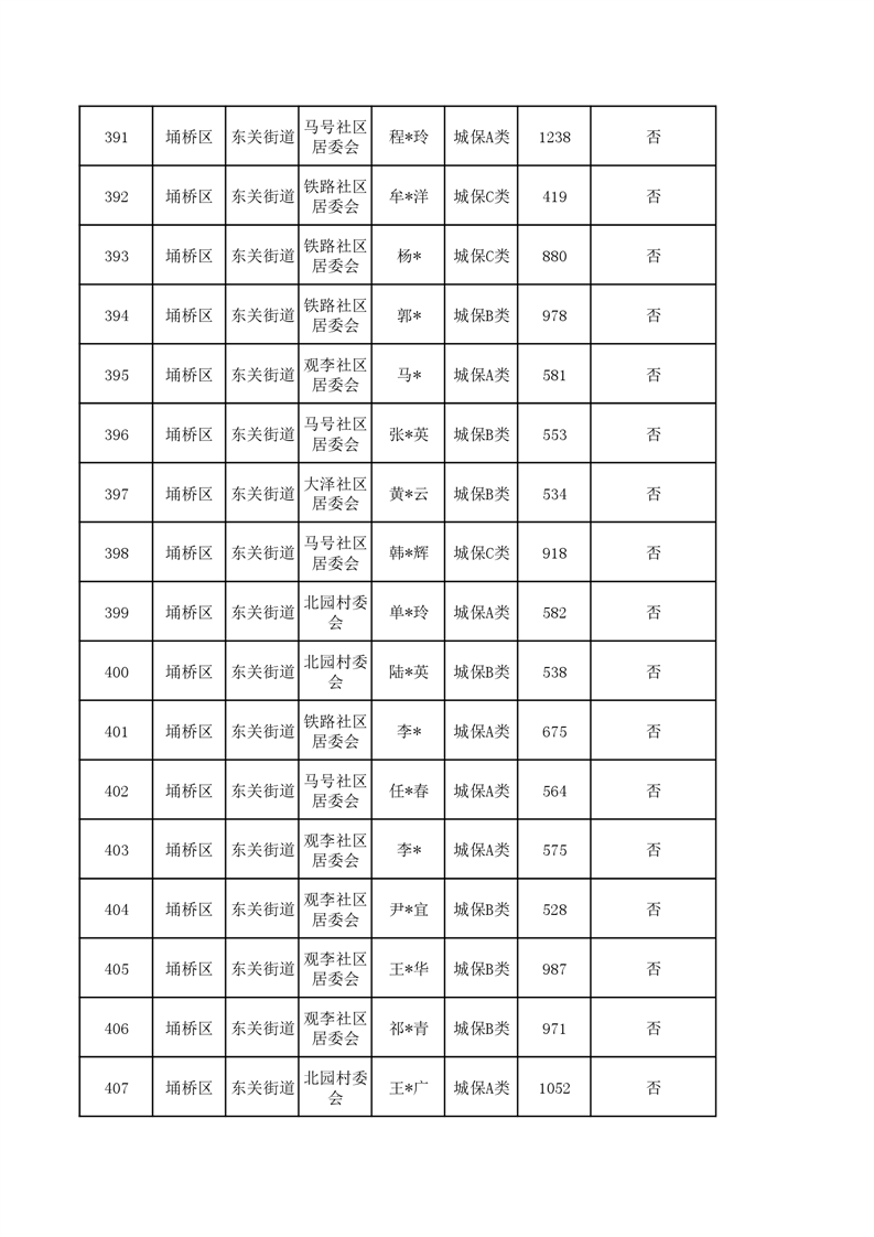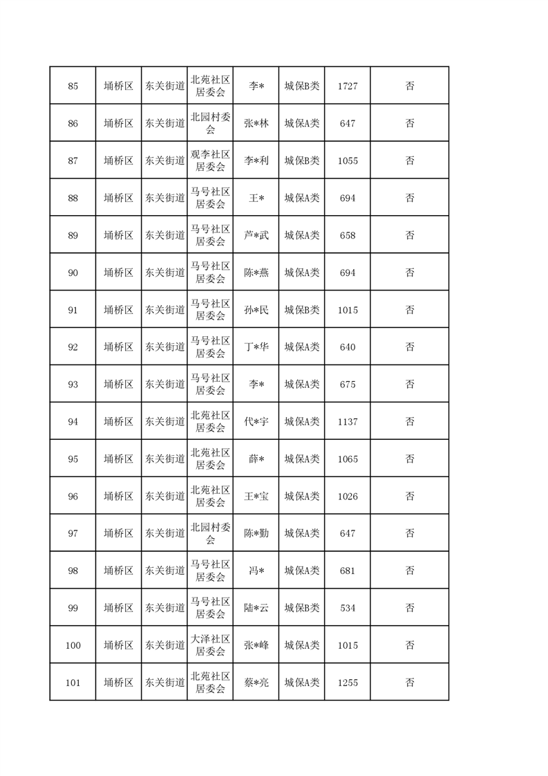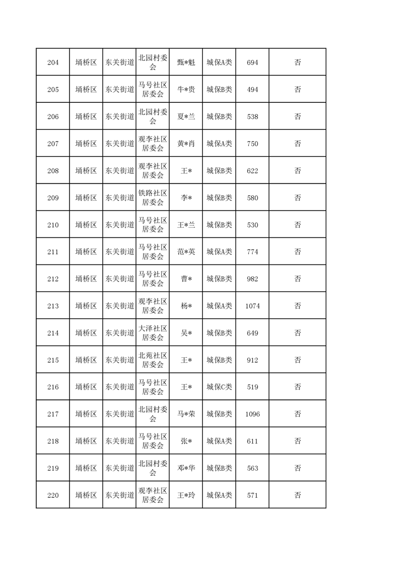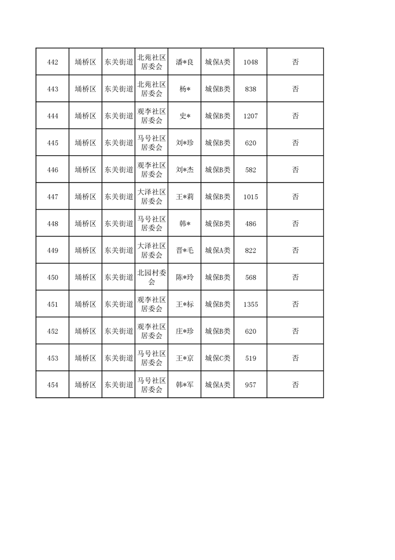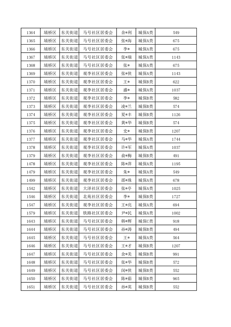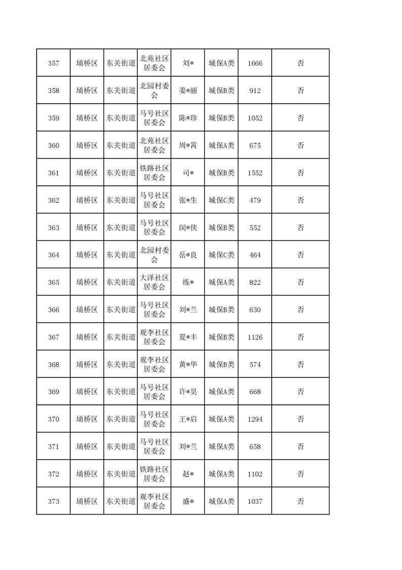 【城乡低保】东关街道2023年第四季度城乡低保发放花名册