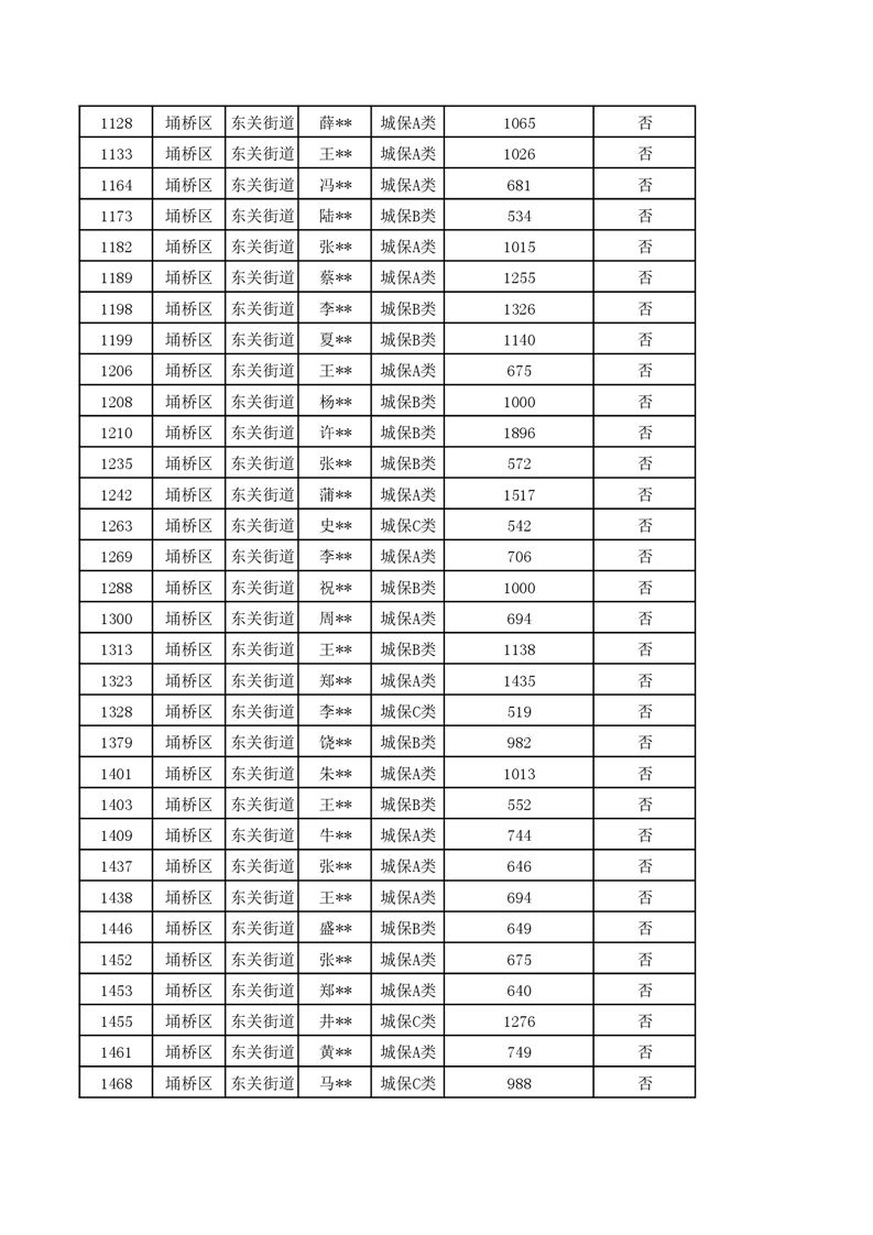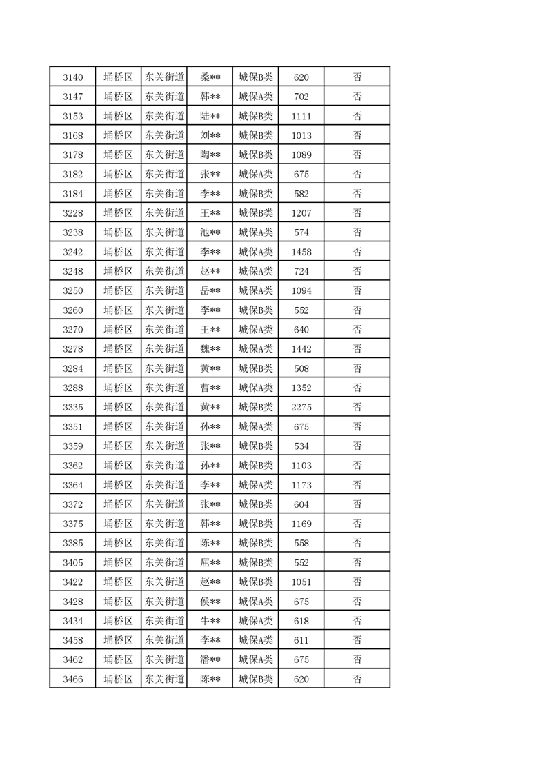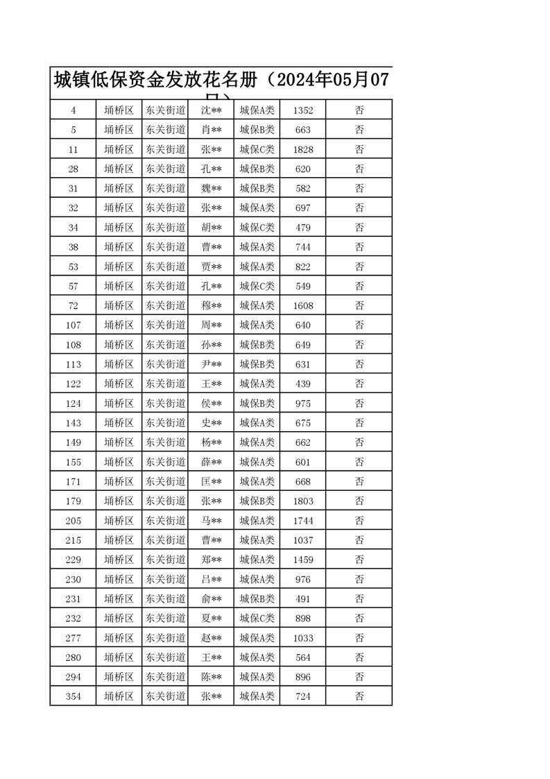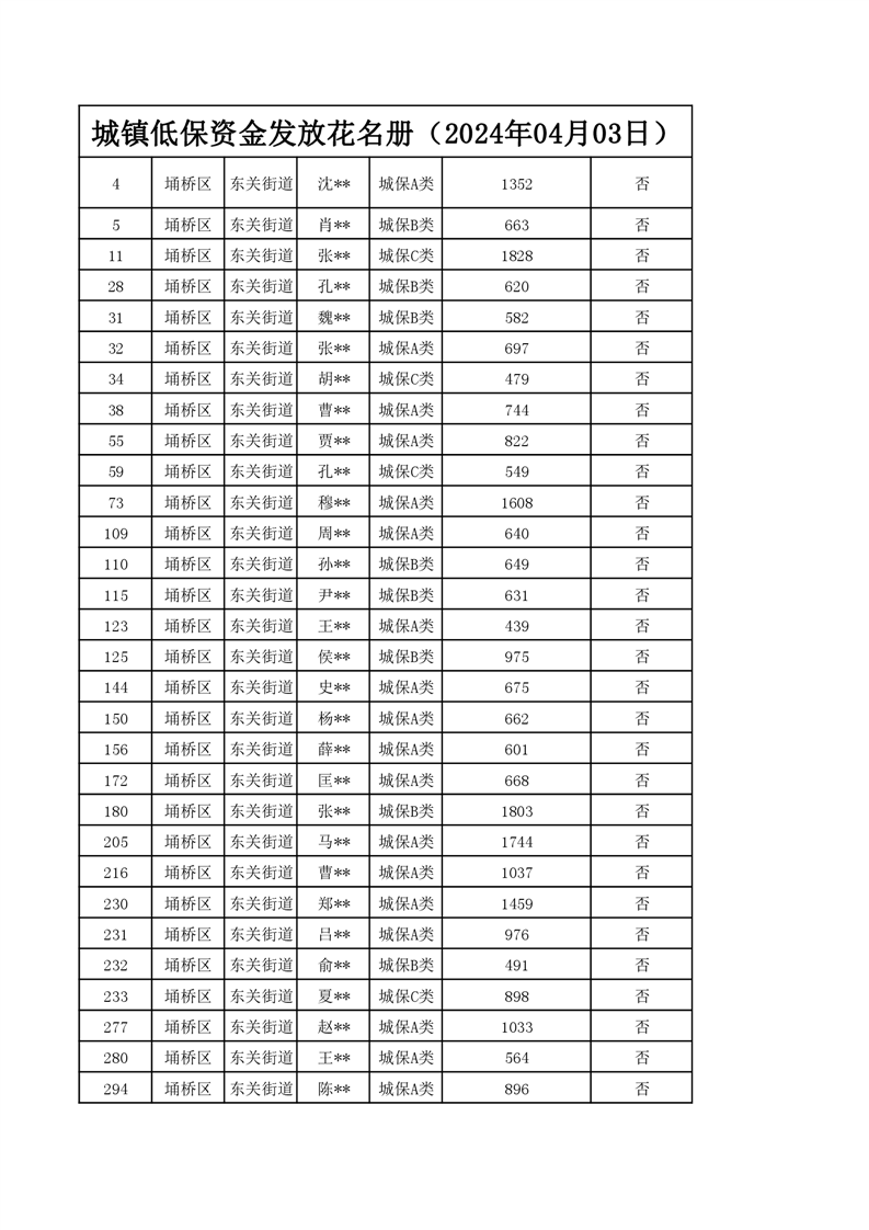 【城乡低保】东关街道2024年第二季度城乡低保发放花名册