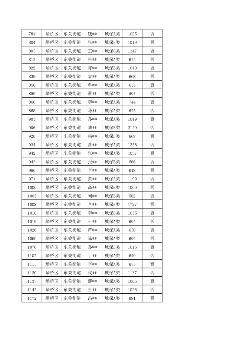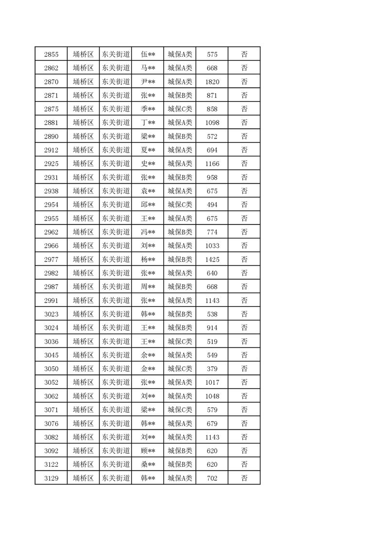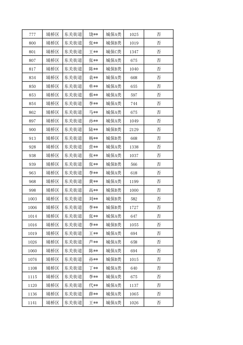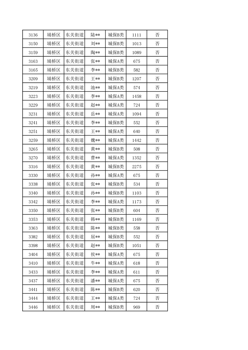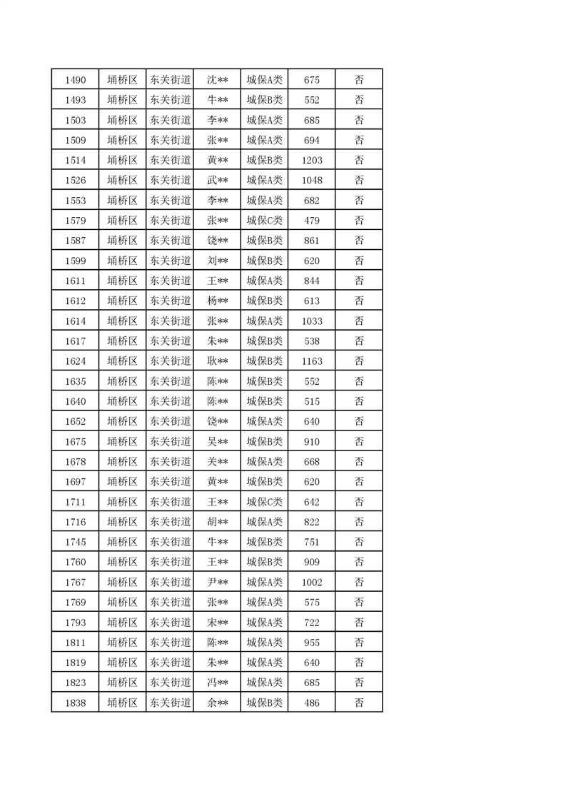 【城乡低保】东关街道2024年第二季度城乡低保发放花名册