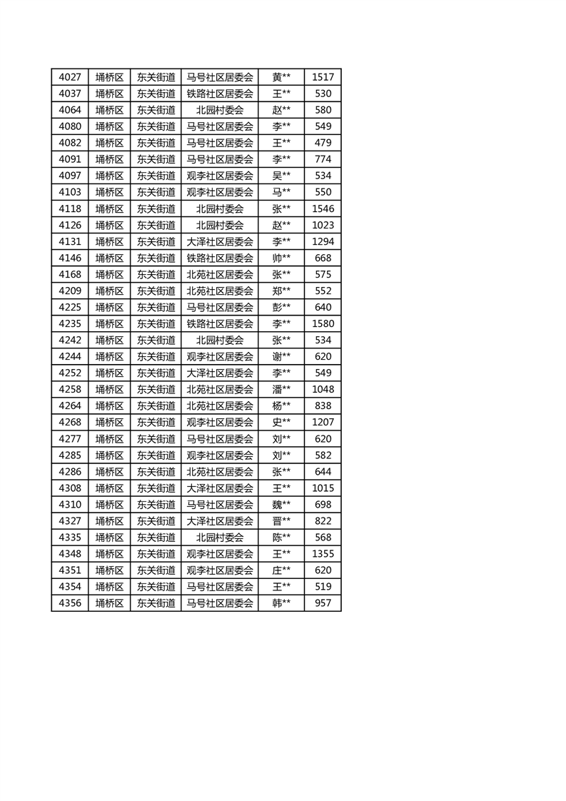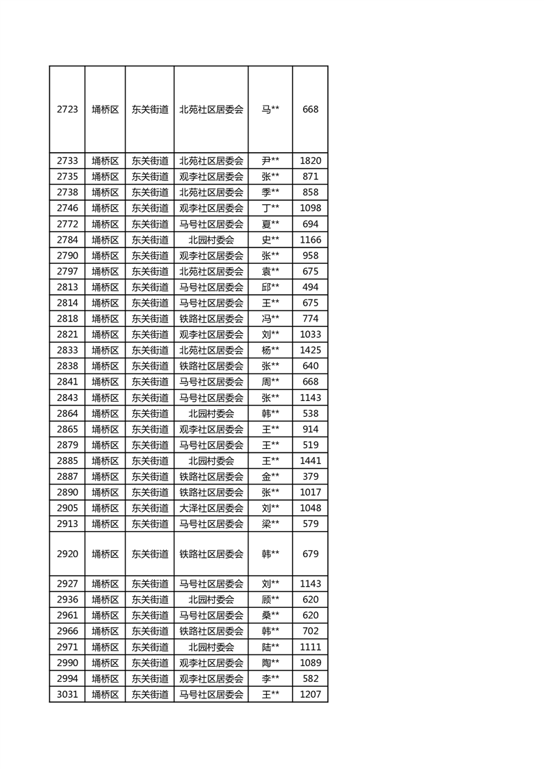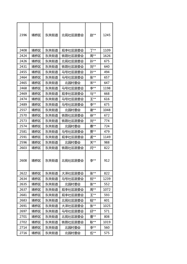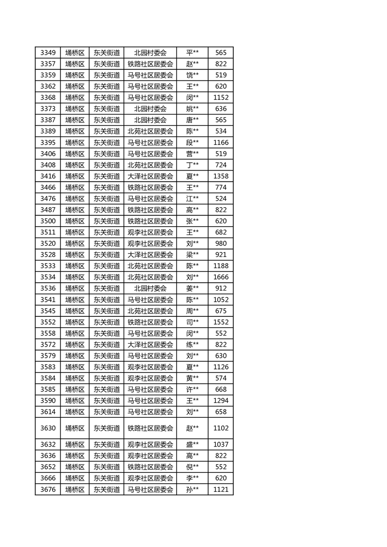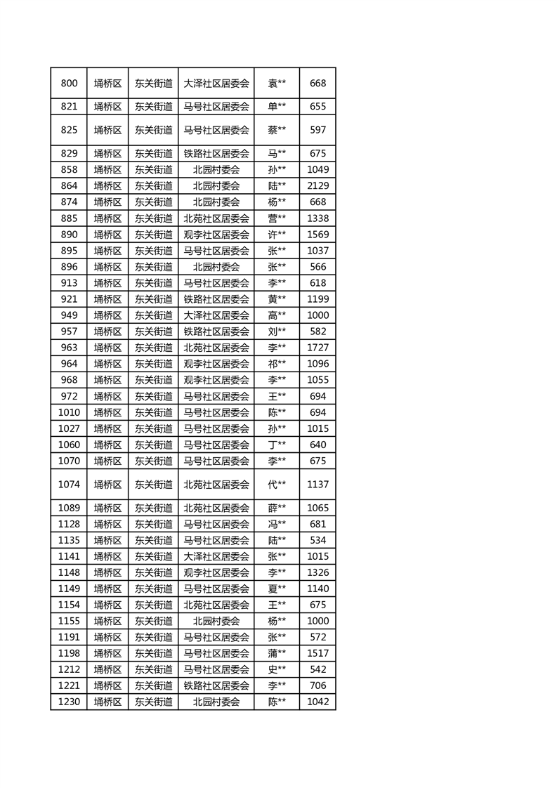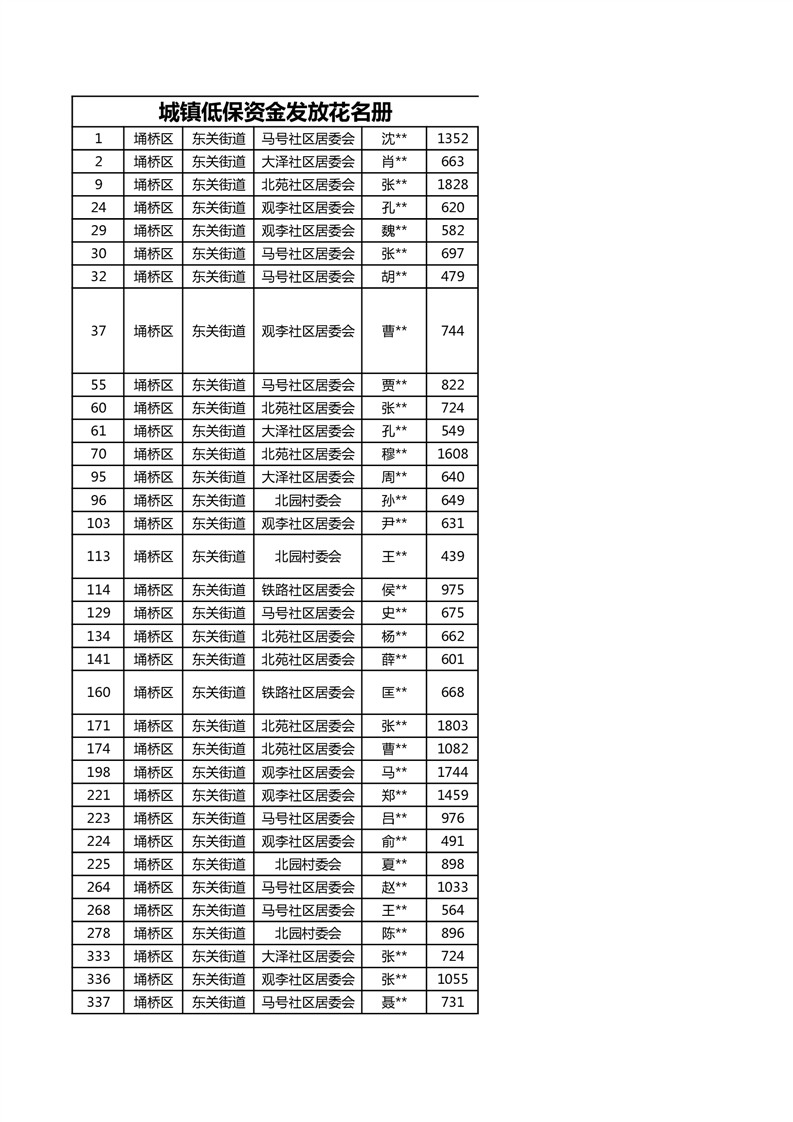 【城乡低保】东关街道2025年第一季度城乡低保发放花名册