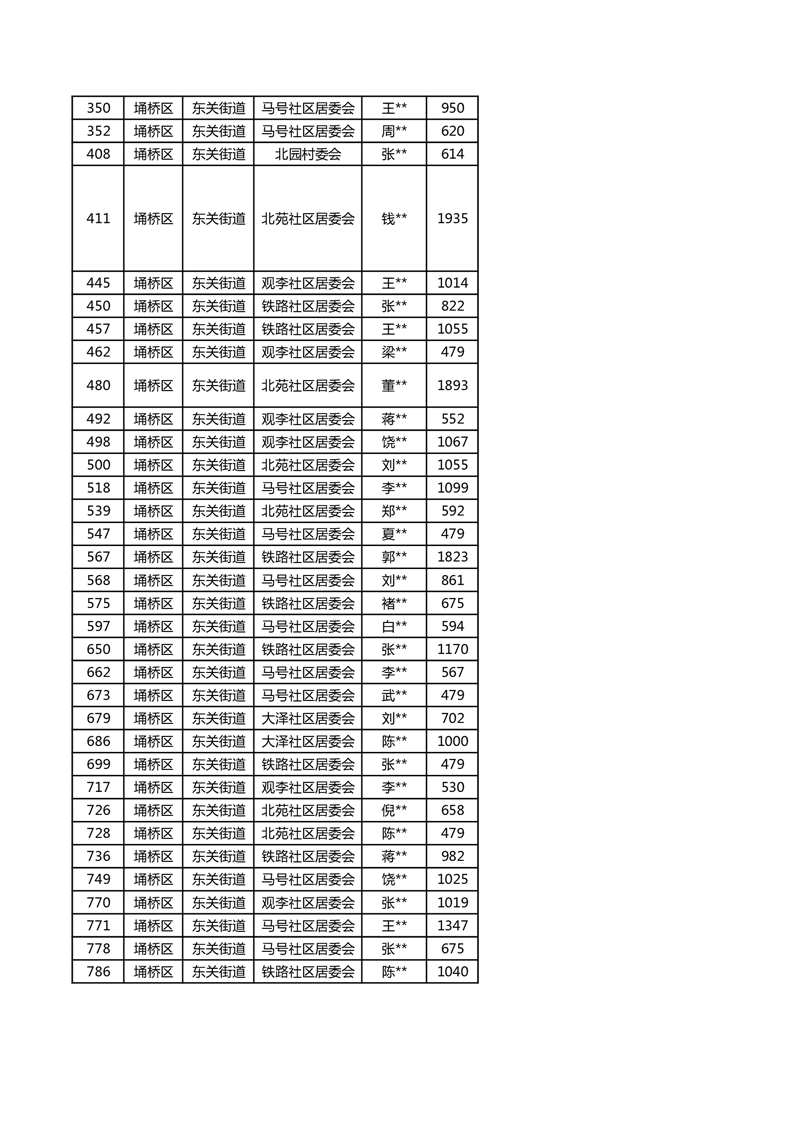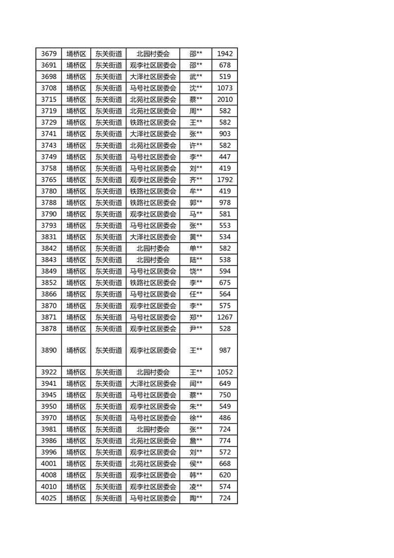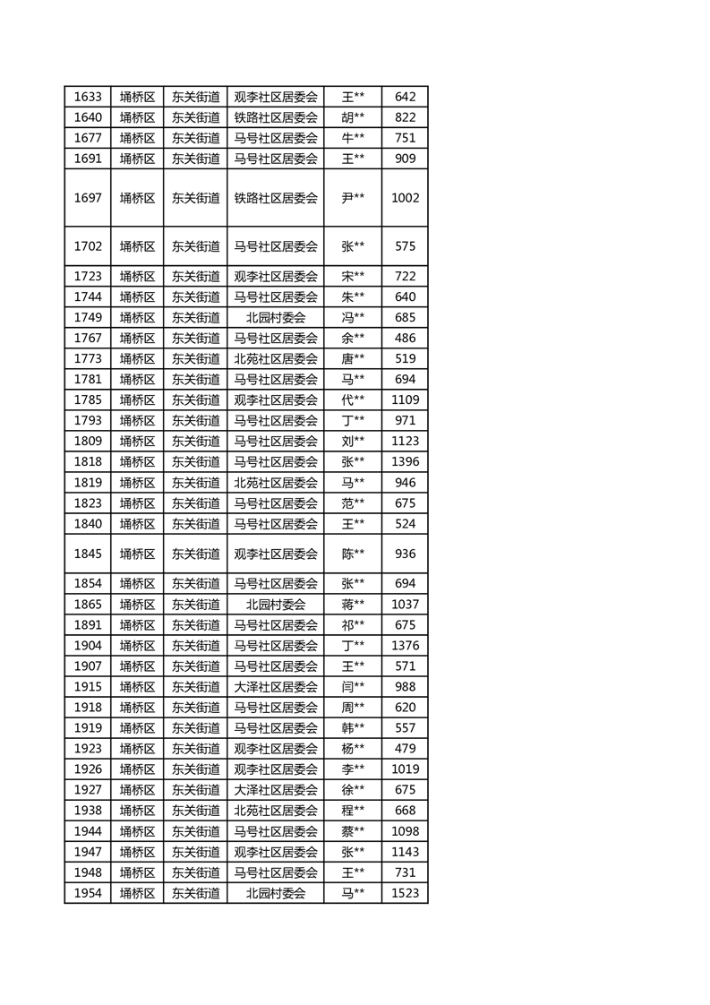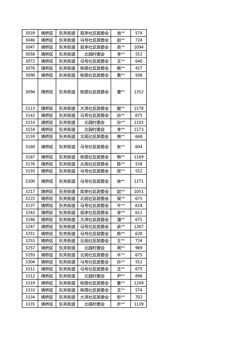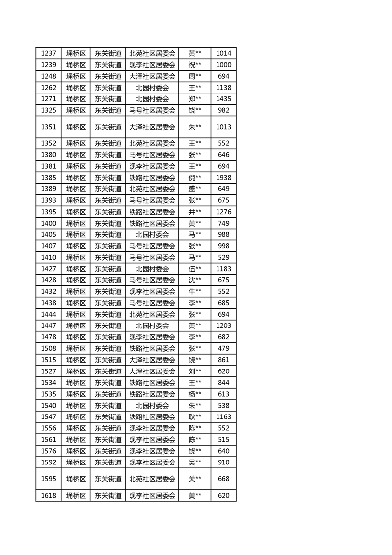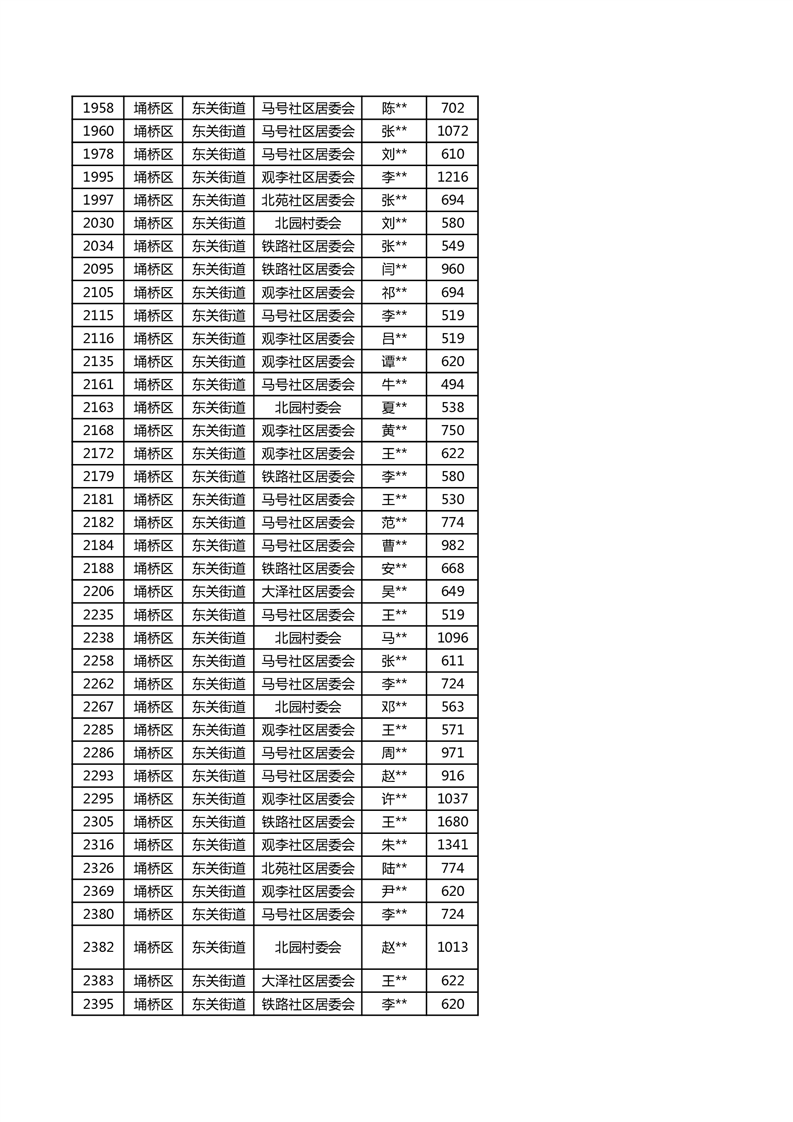 【城乡低保】东关街道2025年第一季度城乡低保发放花名册