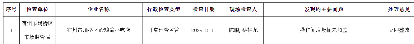 【检查结果】东关街道市场监管所2025年3月日常监管信息通告表