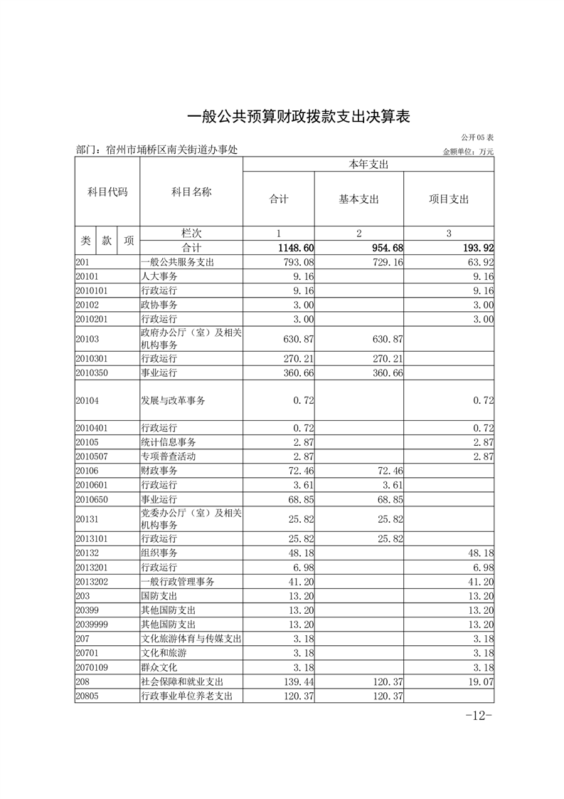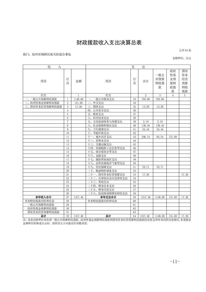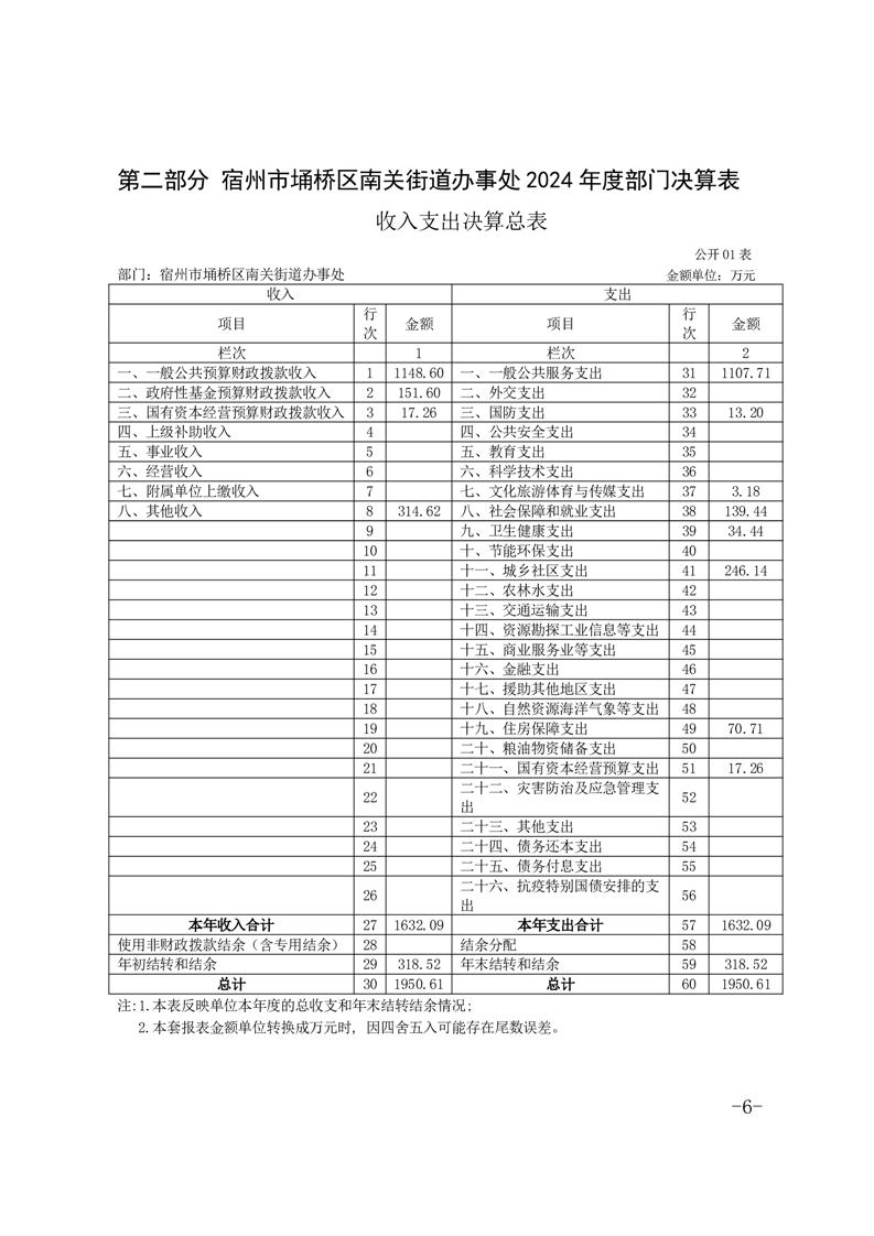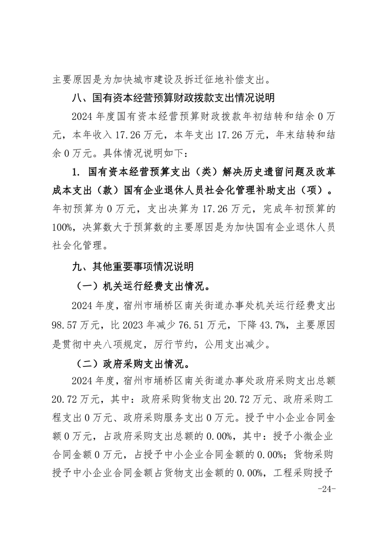 宿州市埇桥区南关街道办事处2024年度部门决算