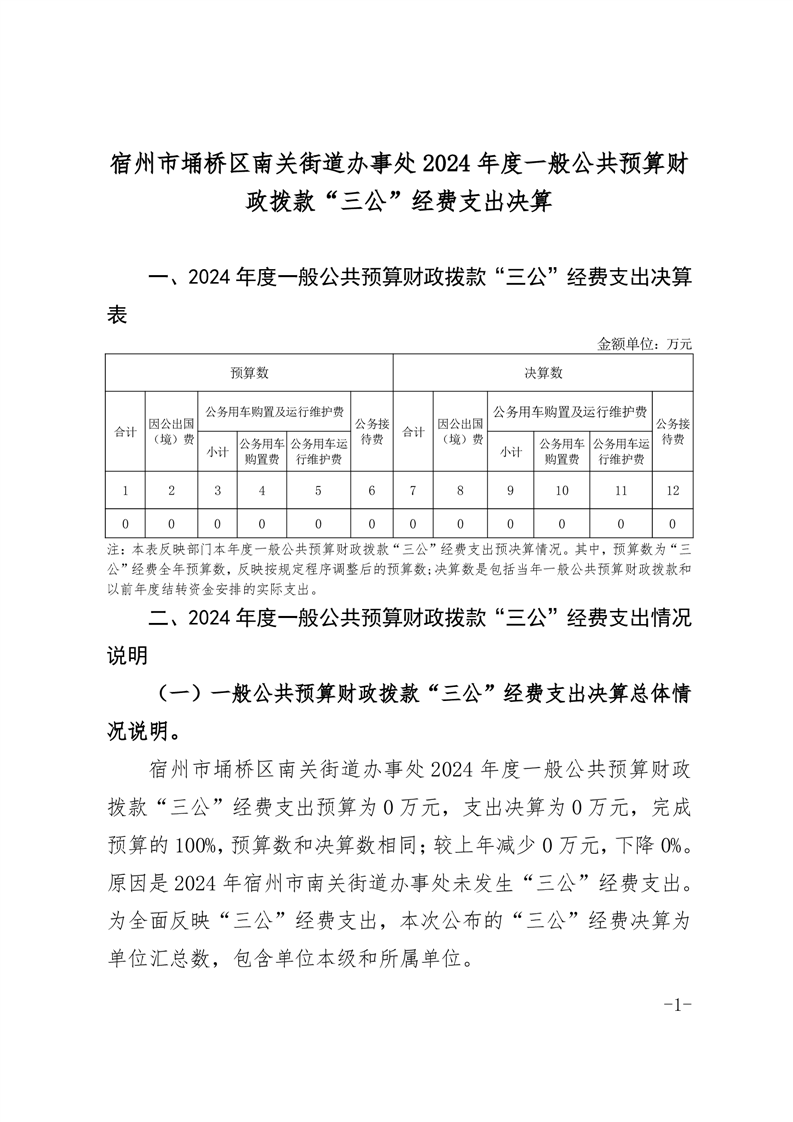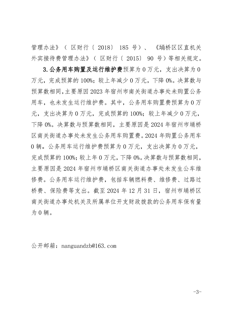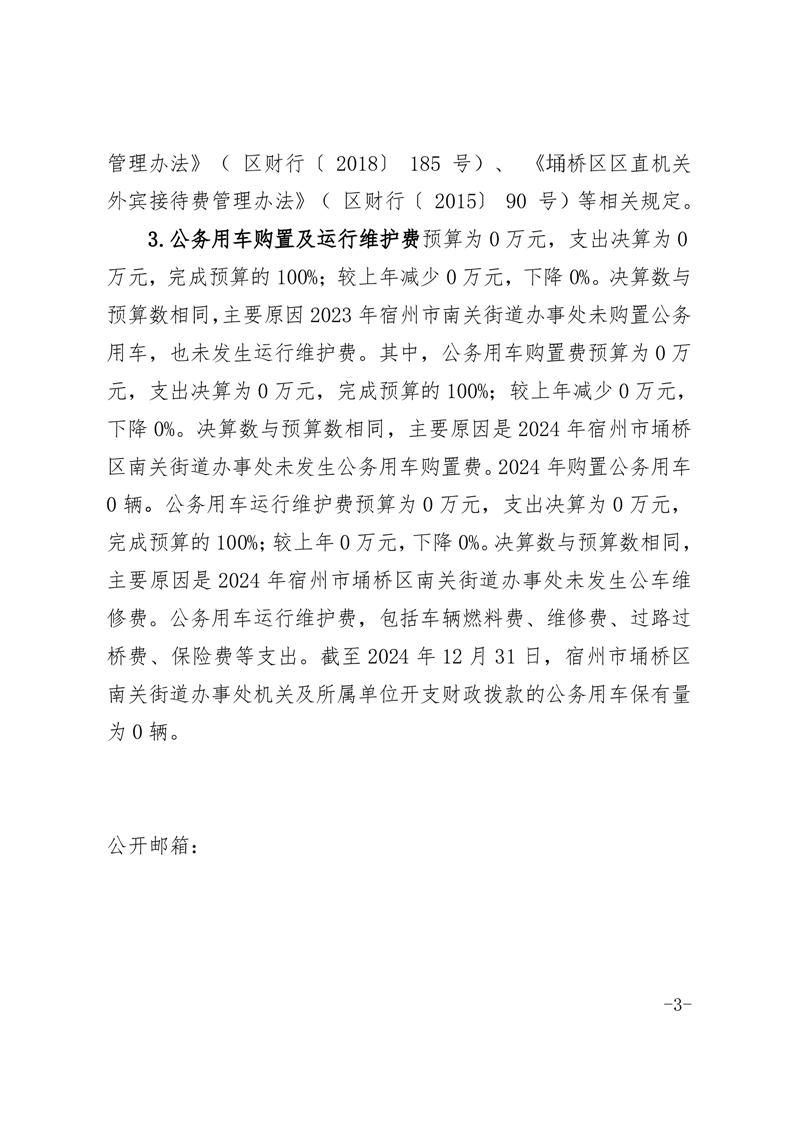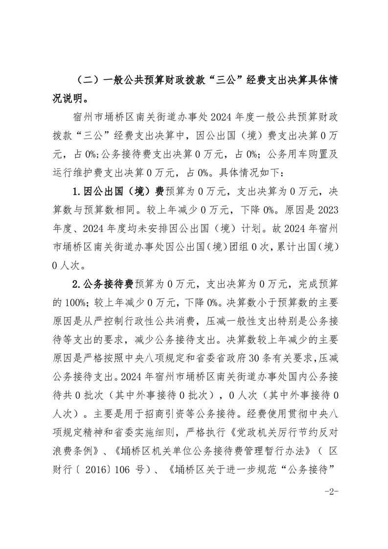 宿州市埇桥区南关街道办事处2024年度一般公共预算财政拨款“三公”经费支出决算