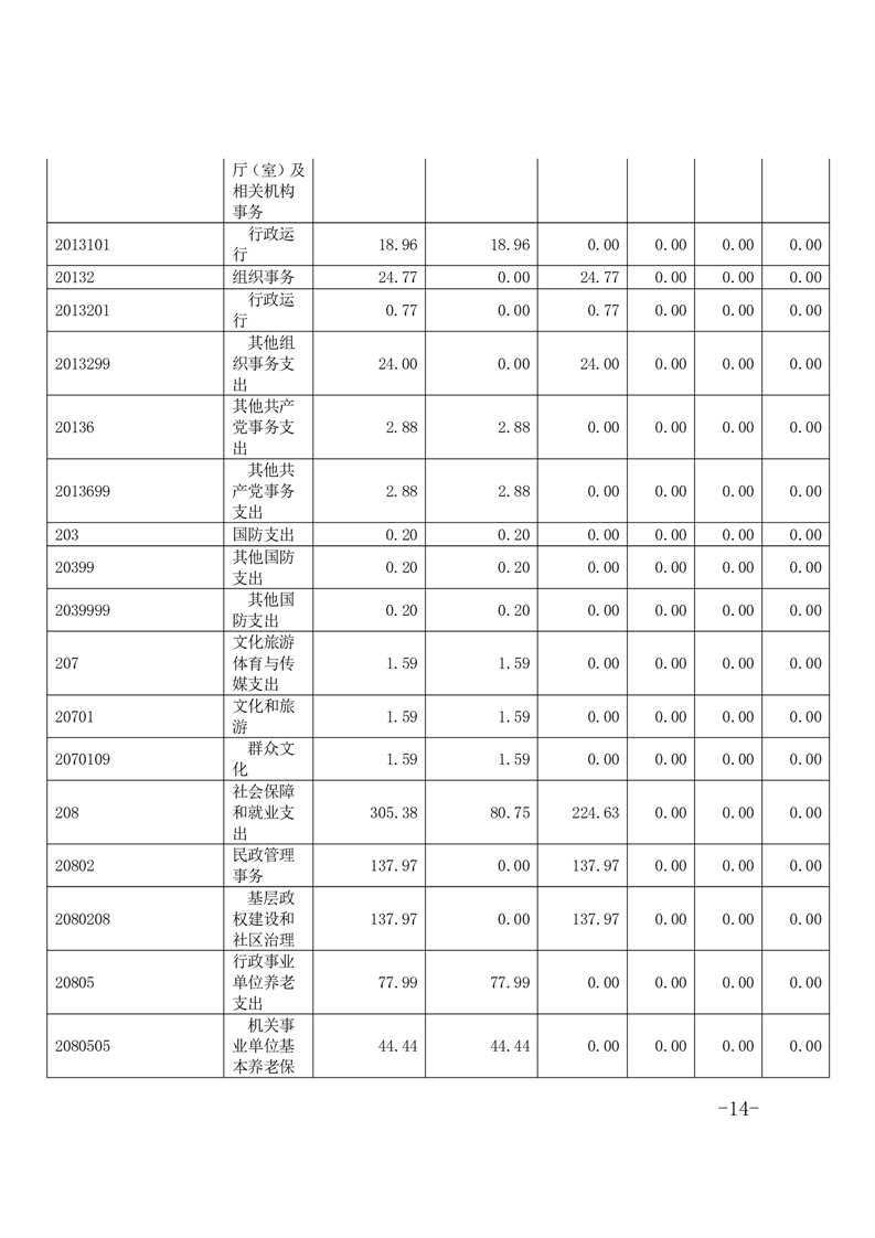 14.社会保障和就业支出(类)民政管理事务(款)基层政权建设和社区治理(项)。