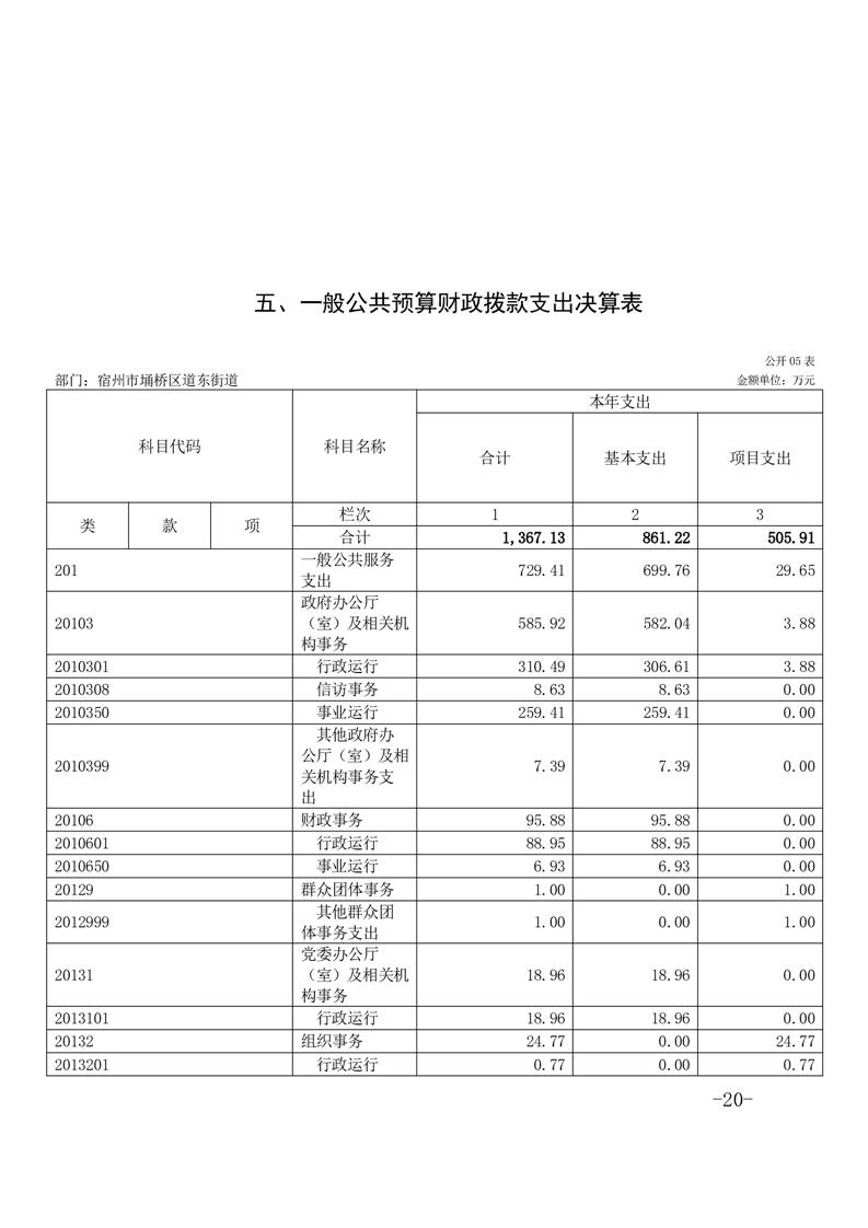 宿州市埇桥区道东街道办事处2022年度部门决算
