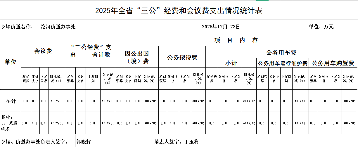 沱河街道办事处2025年12月“三公”经费统计表