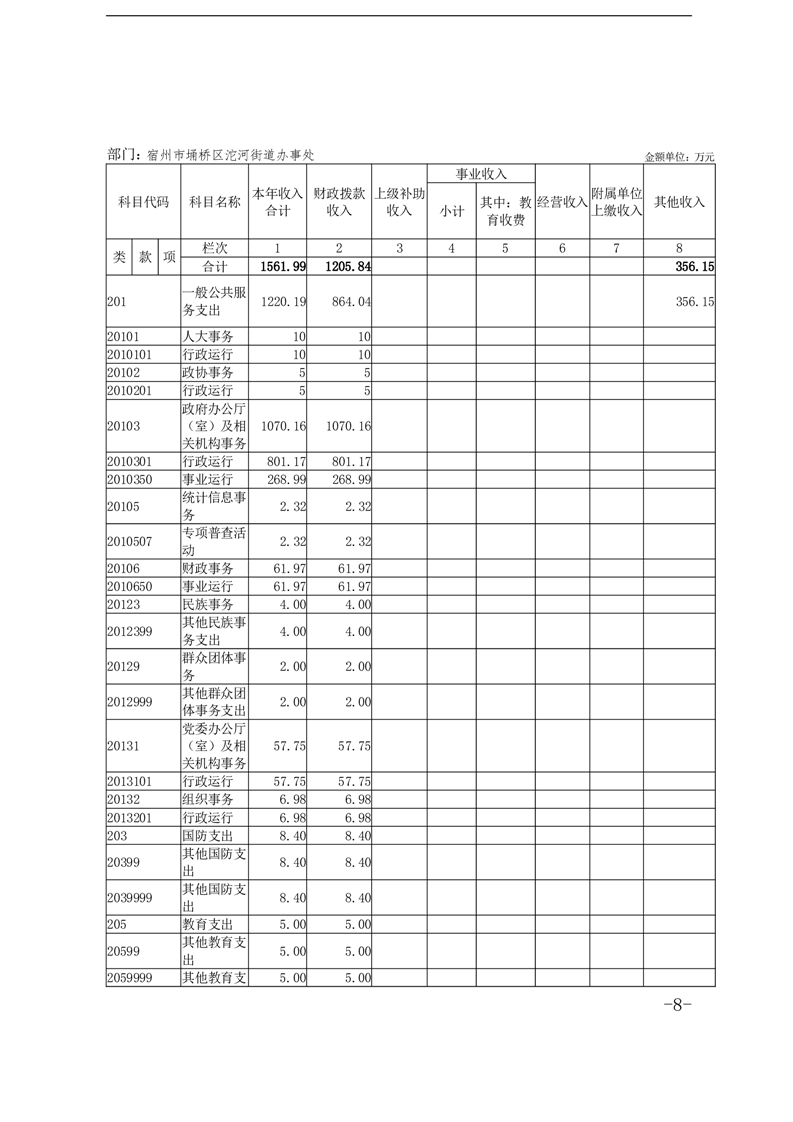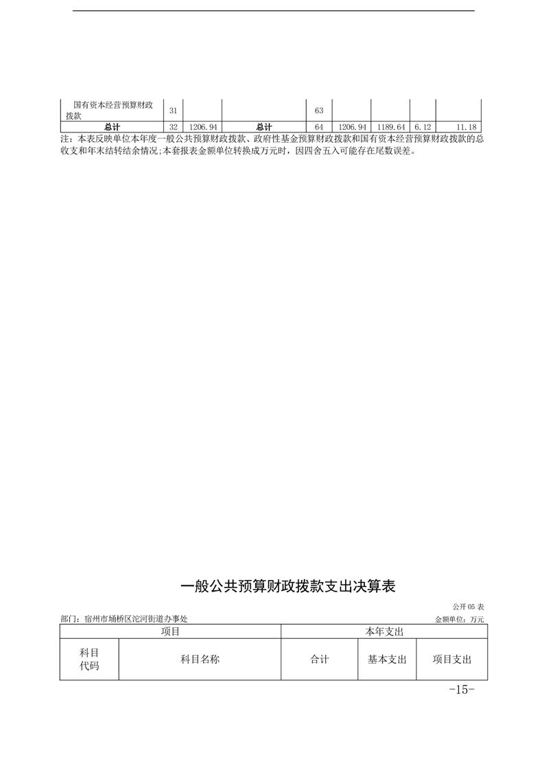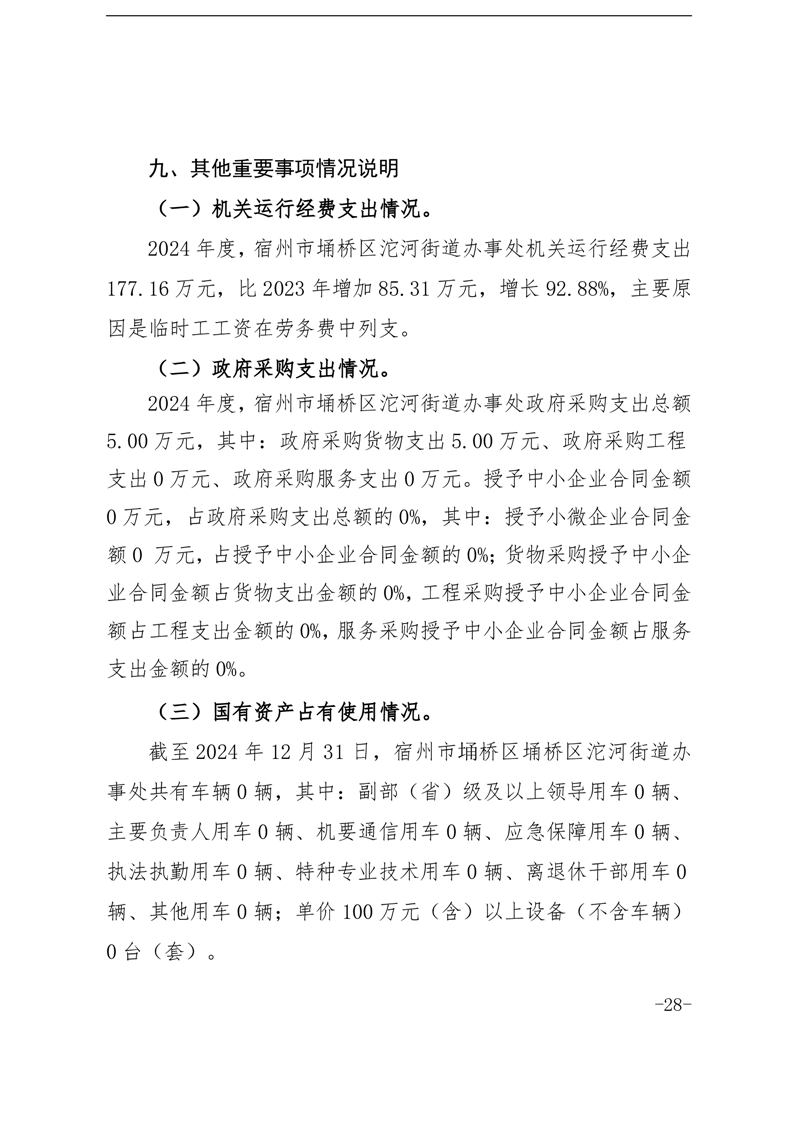 宿州市埇桥区沱河街道办事处2024年度部门决算