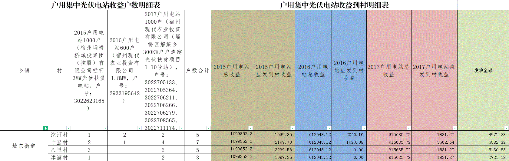 城东街道2022年3-5月三个大电站计算明细表