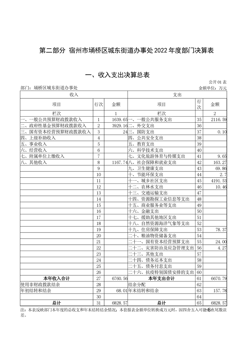 宿州市埇桥区城东街道办事处2022年度部门决算