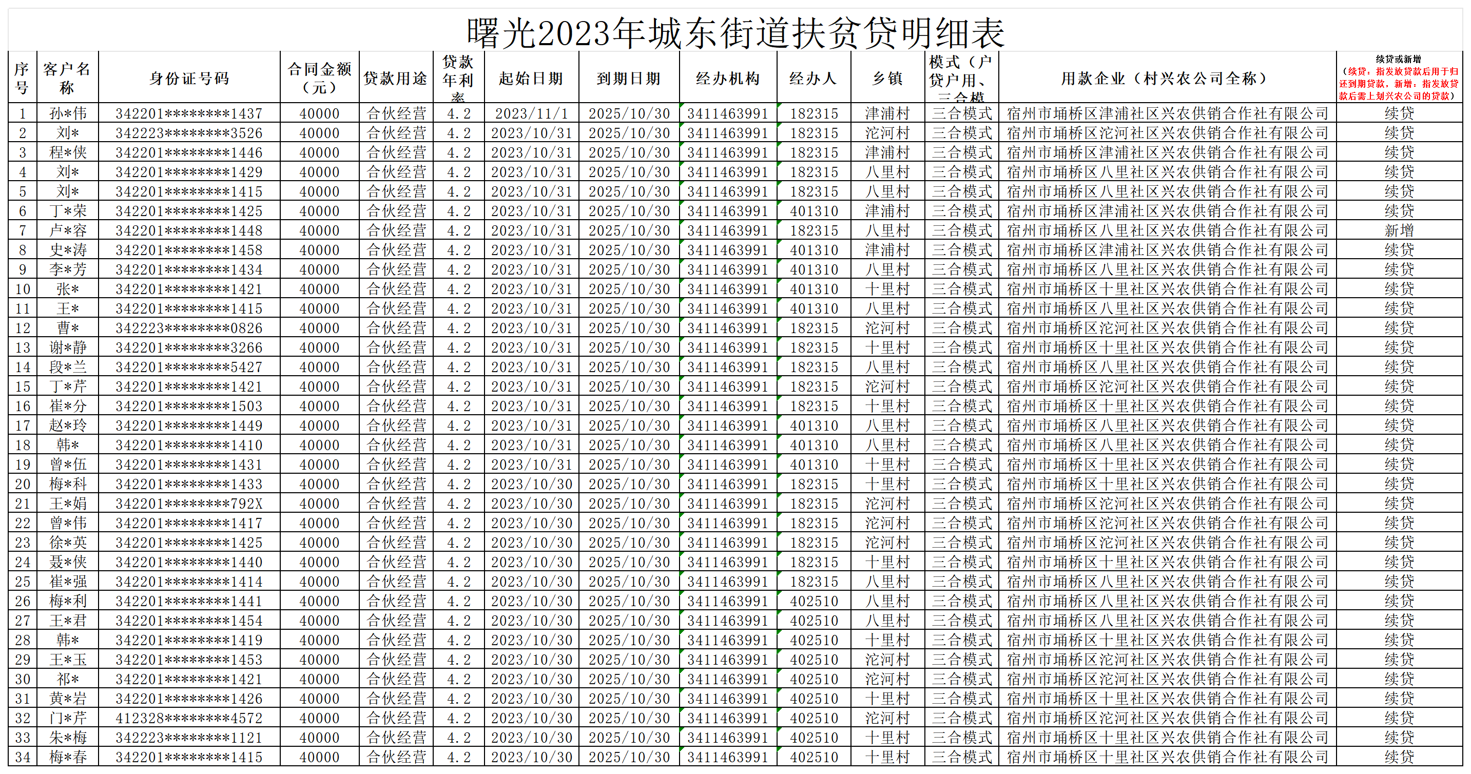 城东街道2023年扶贫贷款分红明细(曙光支行)