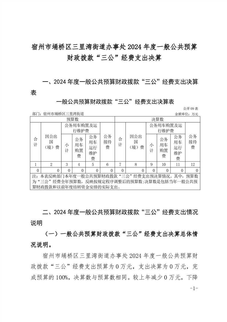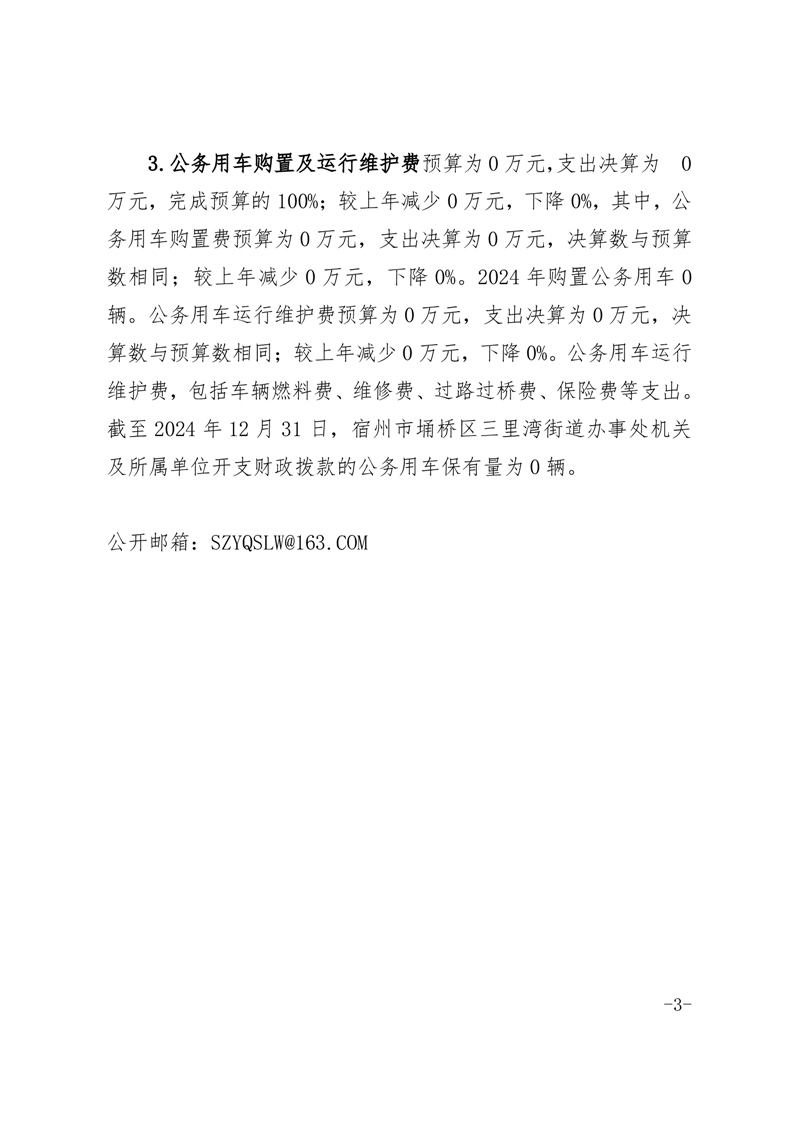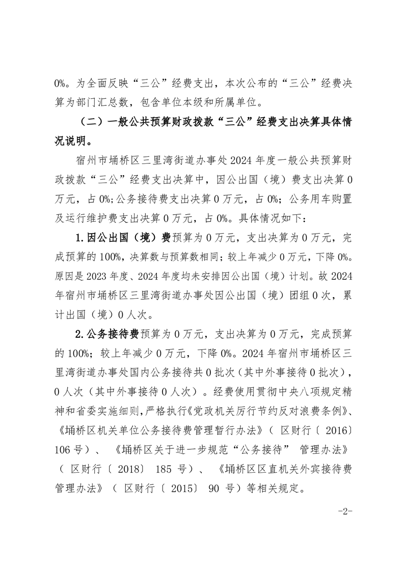 宿州市埇桥区三里湾街道办事处2024年度一般公共预算财政拨款“三公”经费支出决算