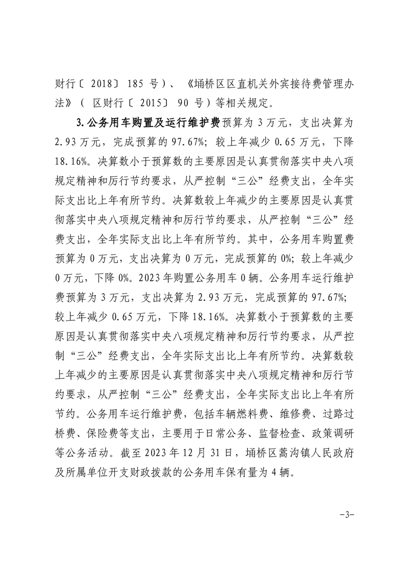 宿州市埇桥区蒿沟镇人民政府2023年度一般公共预算财政拨款“三公”经费支出决算
