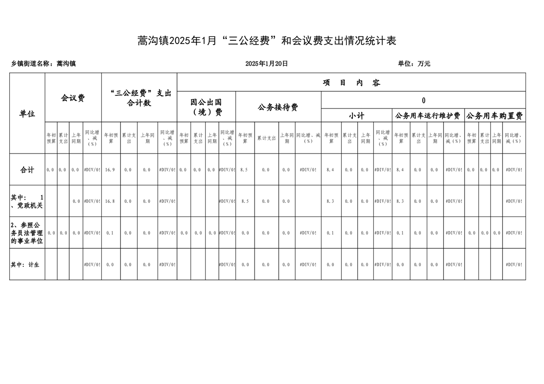 蒿沟镇2025年1月“三公”经费和会议费支出情况统计表