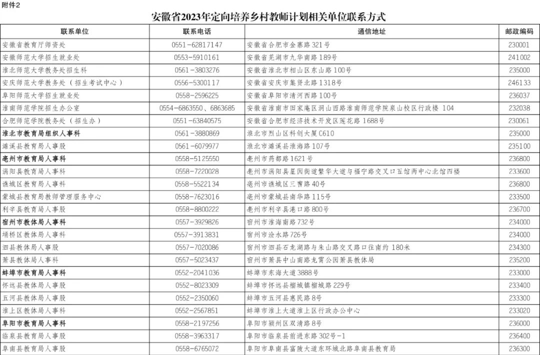2.安徽省2023年定向培养乡村教师计划相关单位联系方式