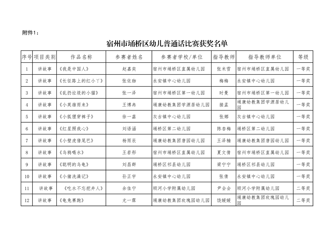 附件:宿州市埇桥区幼儿普通话比赛获奖名单