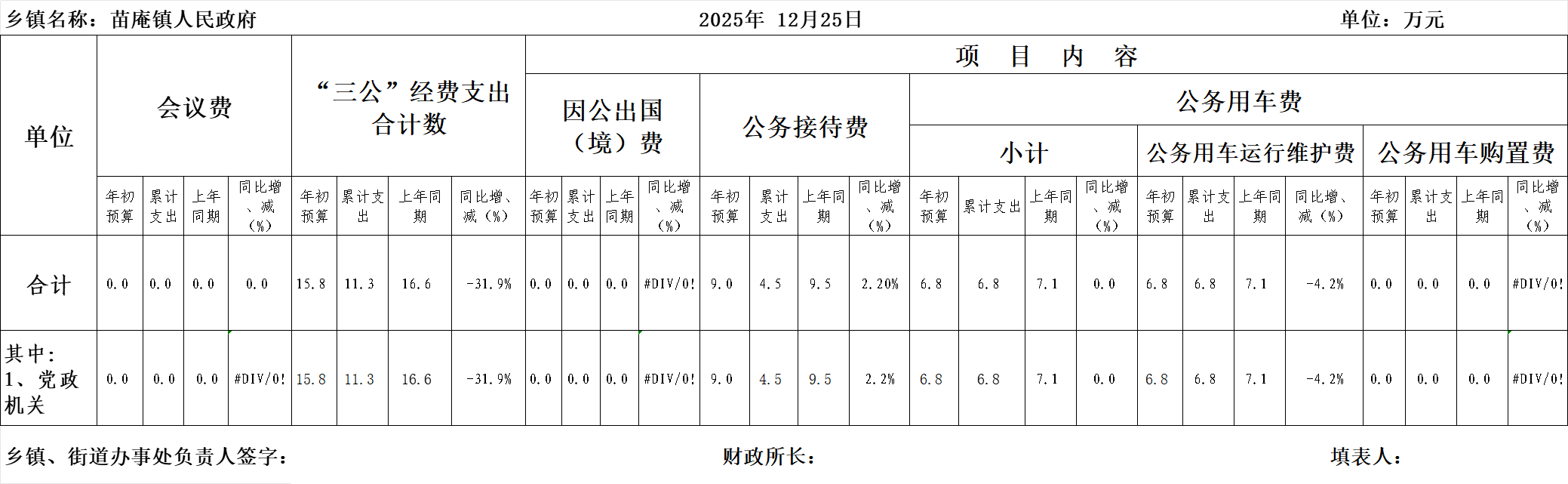 苗庵镇2025年12月“三公”经费支出情况统计表