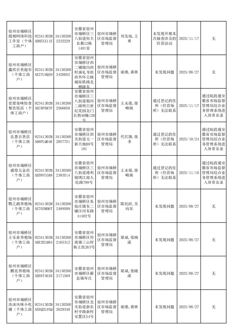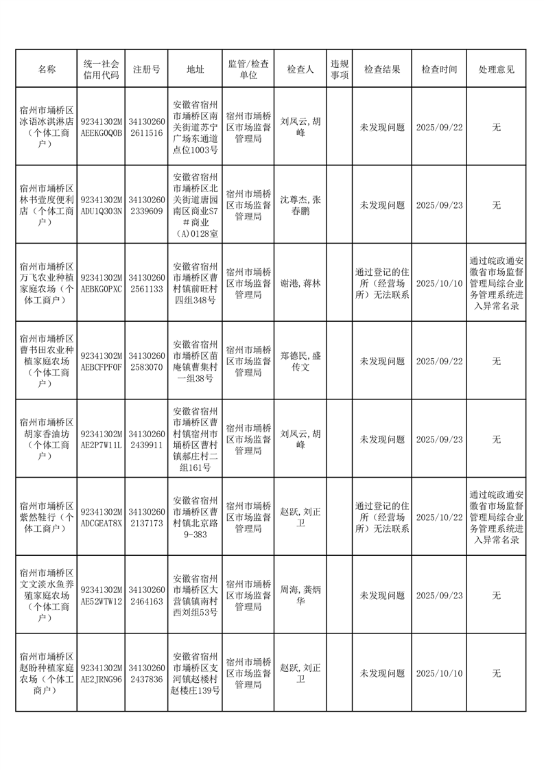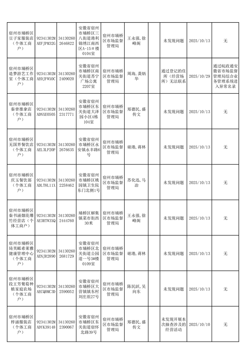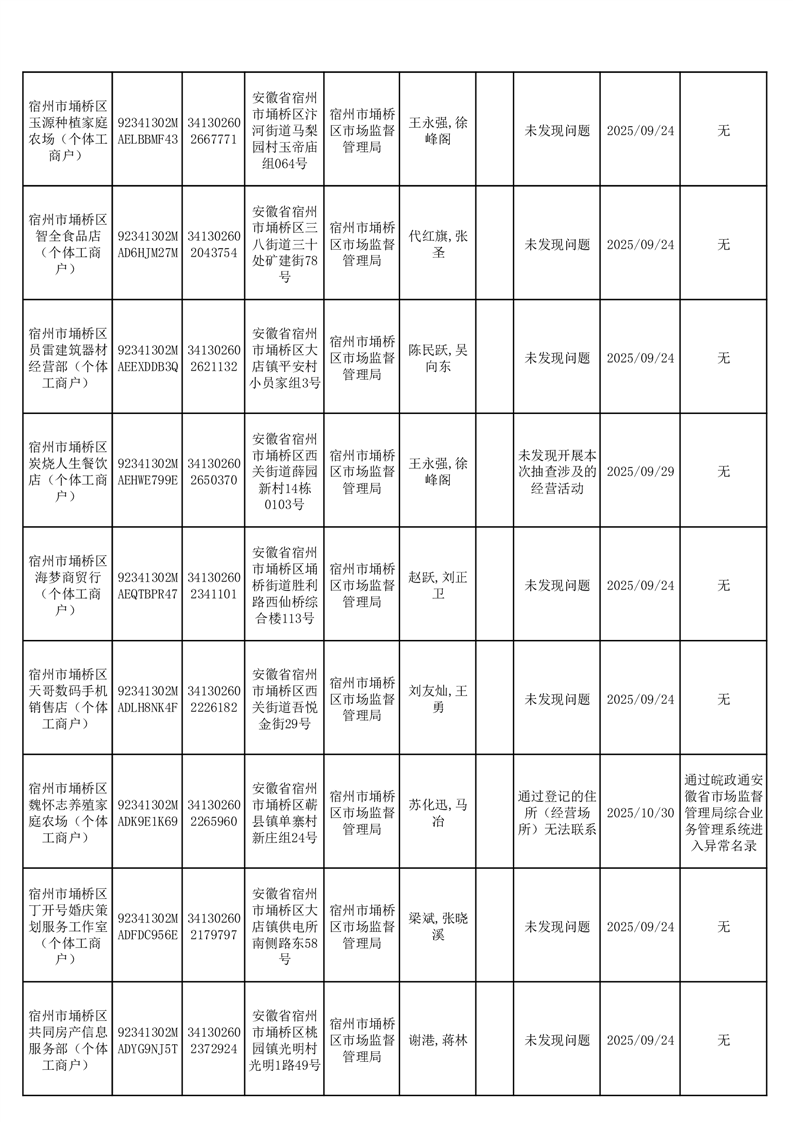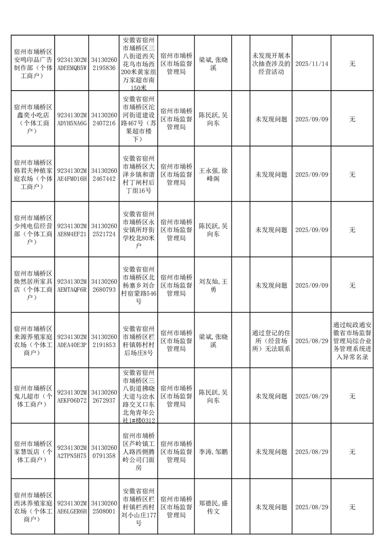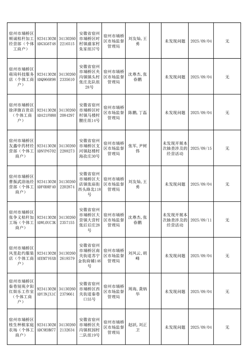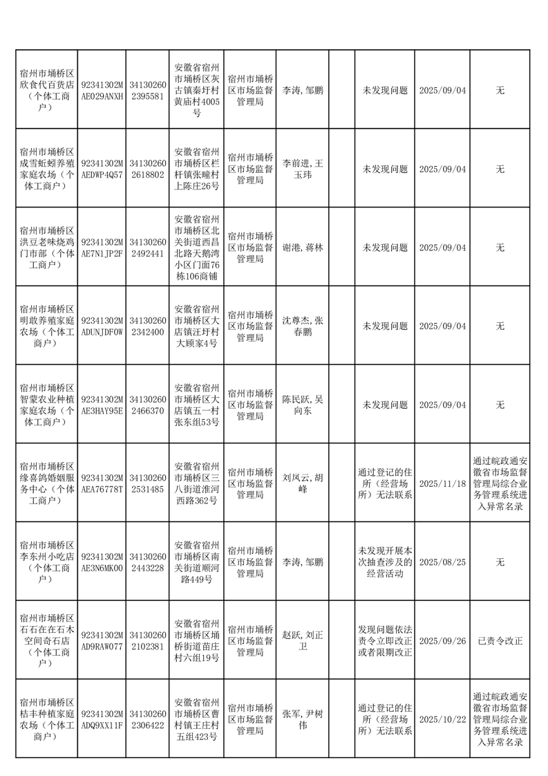 | 名称: | 宿州市埇桥区市场监督管理局2025年全区市场监督管理部门不定向(个体户)抽取计划(检查结果) | ||