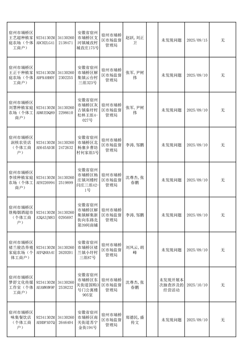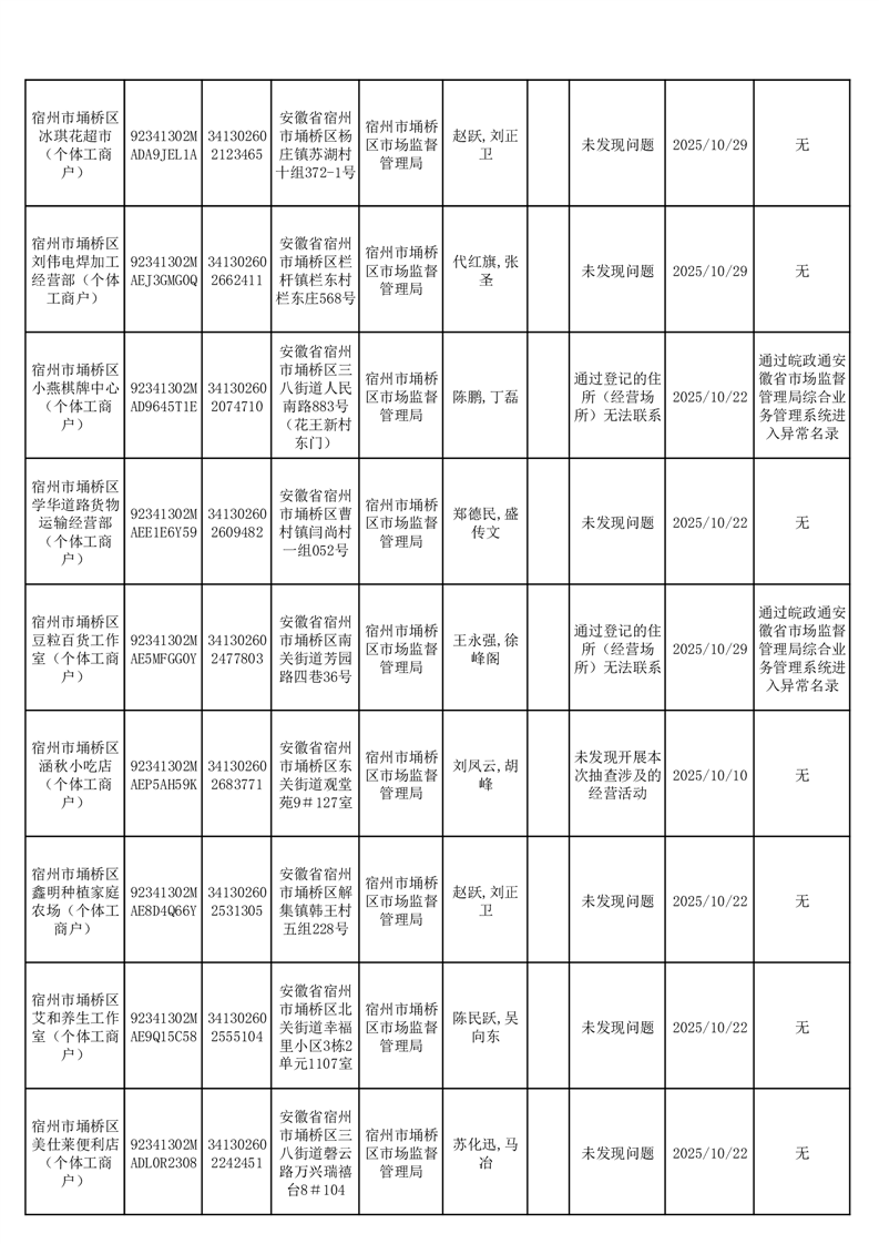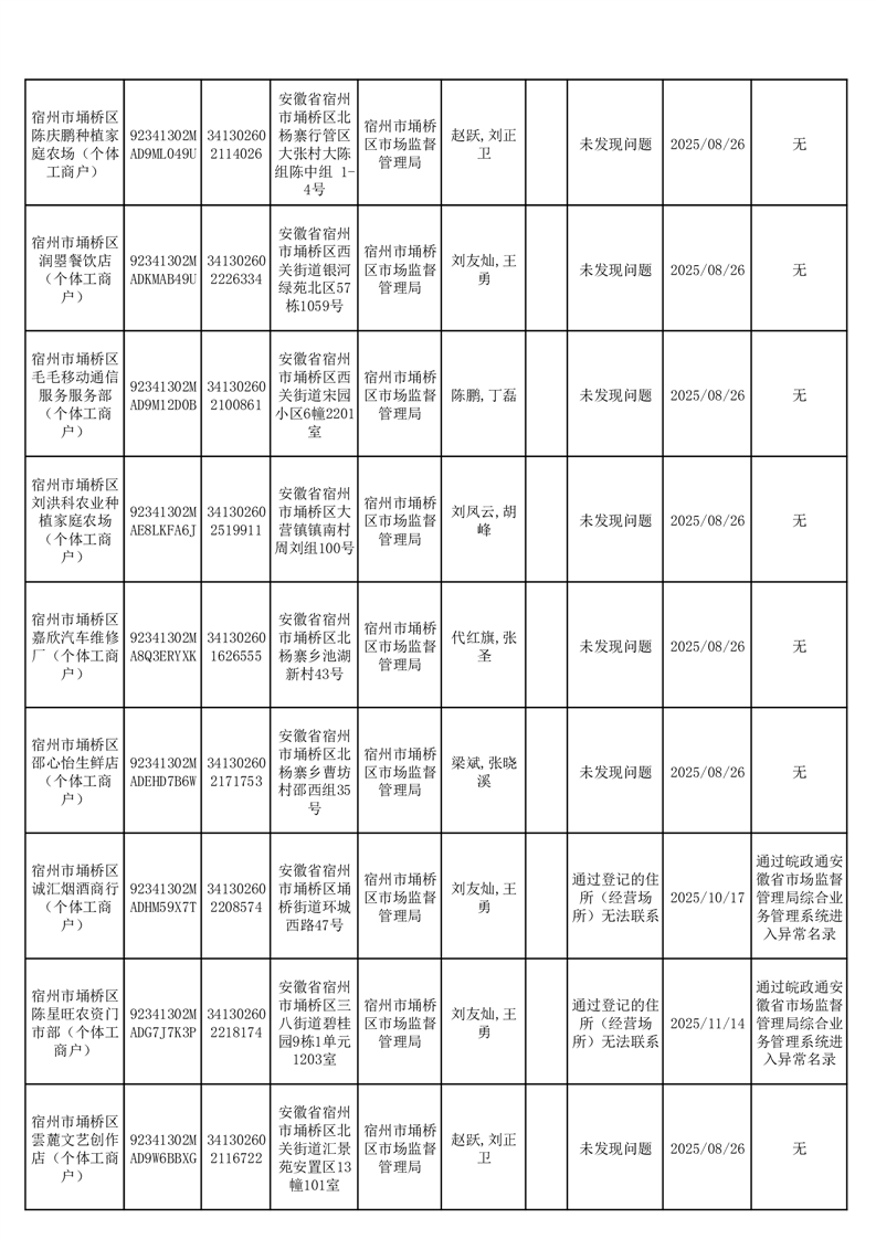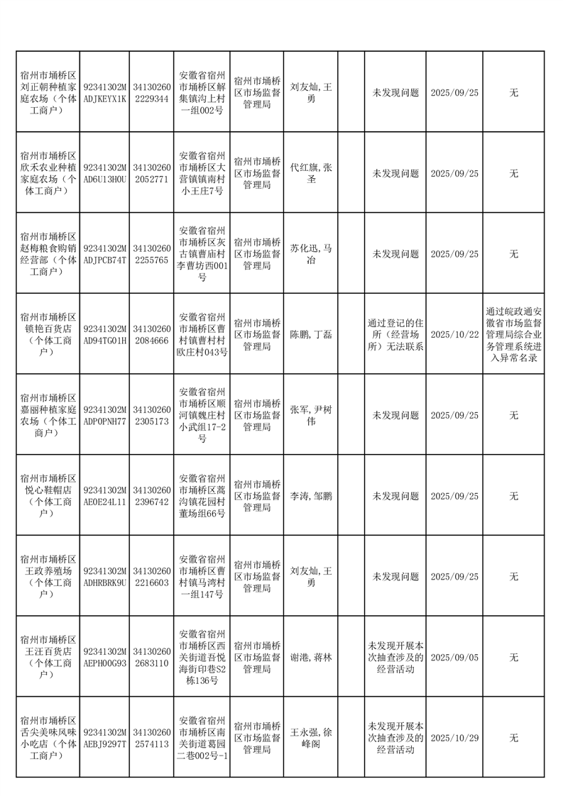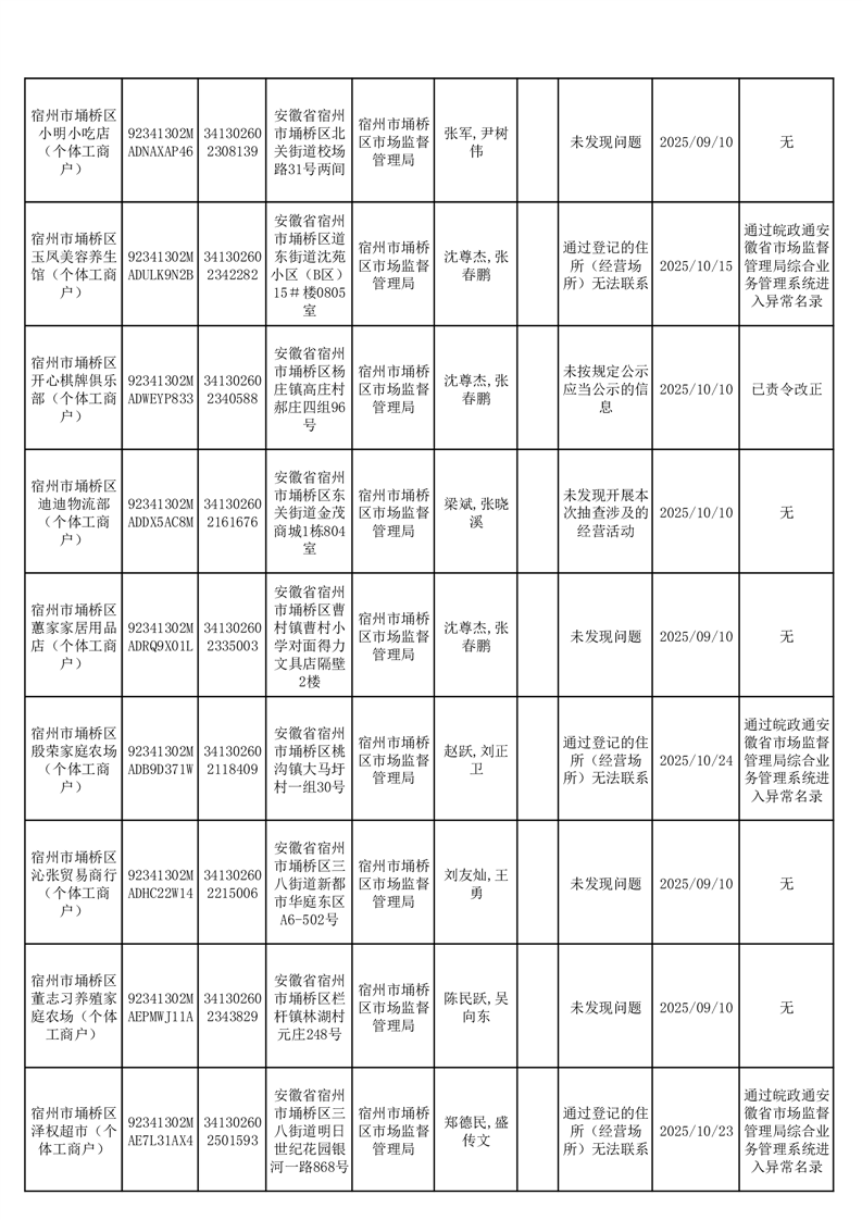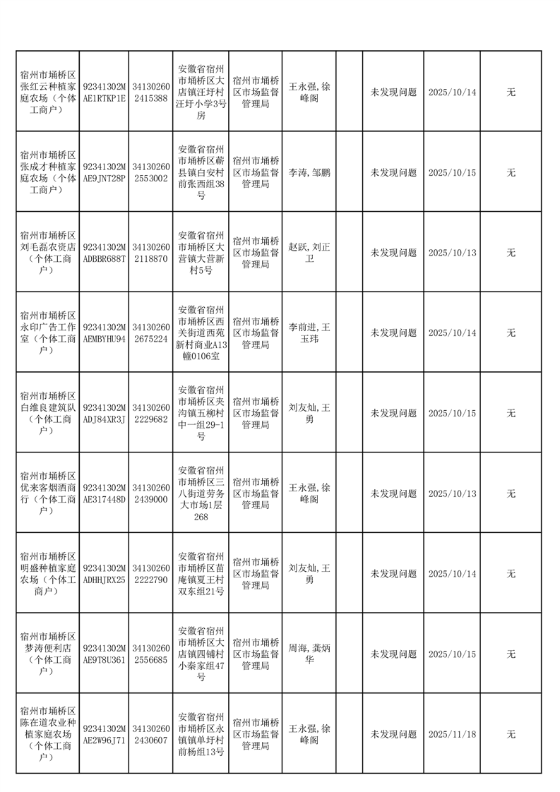 | 名称: | 宿州市埇桥区市场监督管理局2025年全区市场监督管理部门不定向(个体户)抽取计划(检查结果) | ||