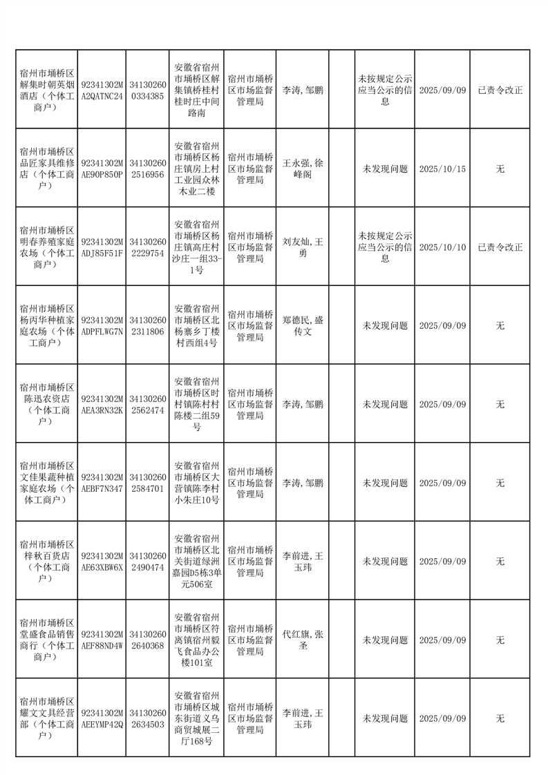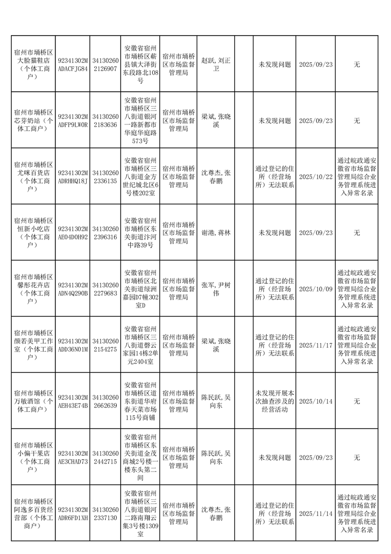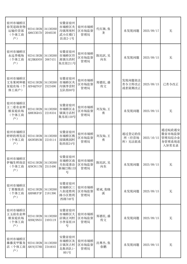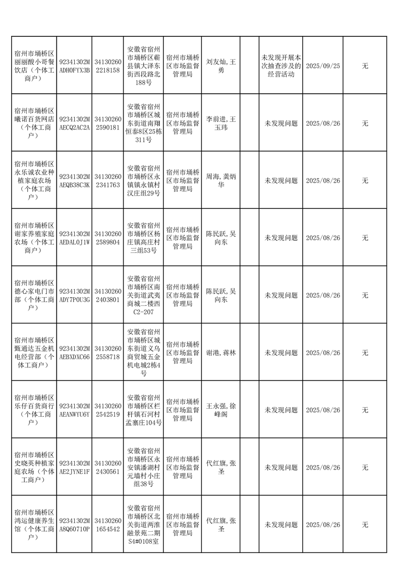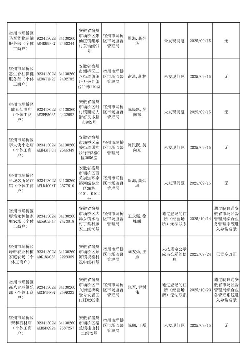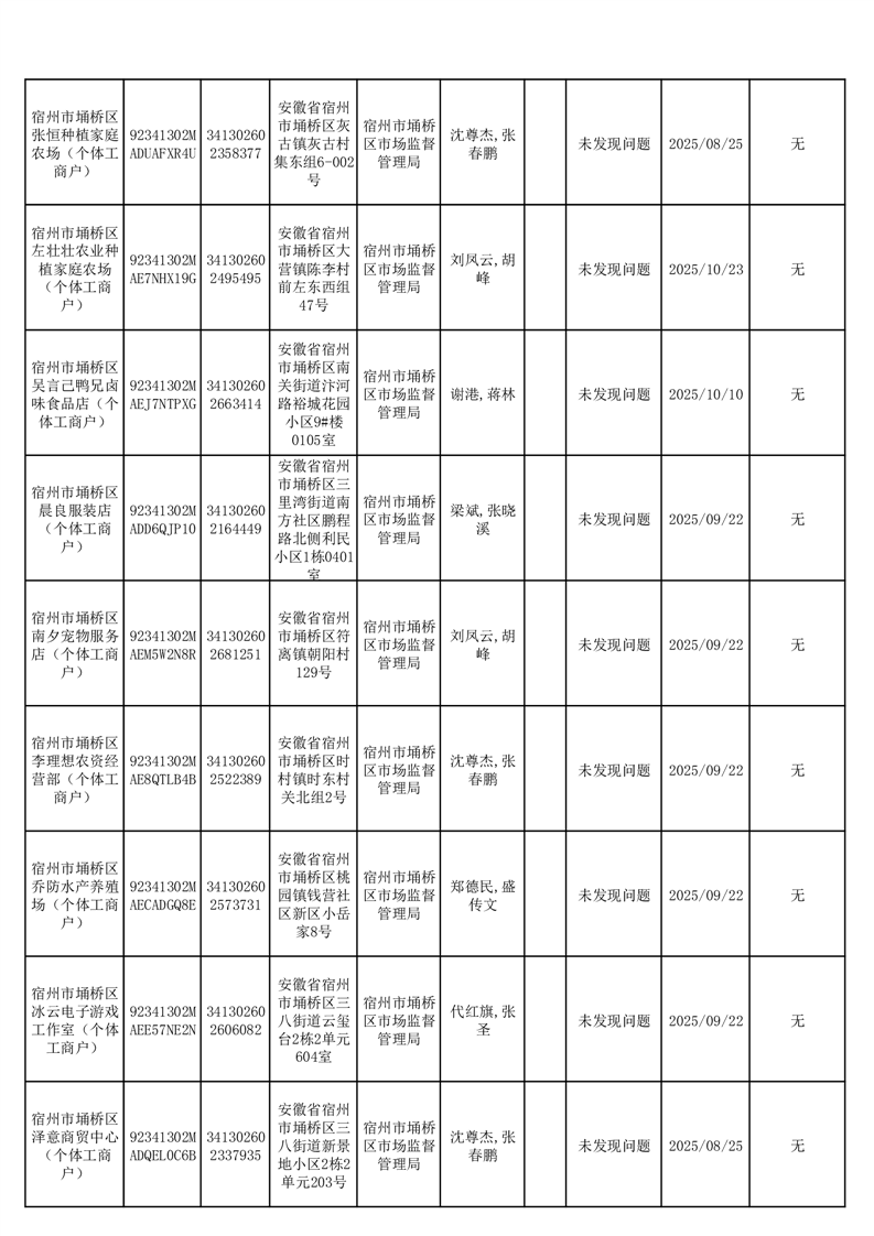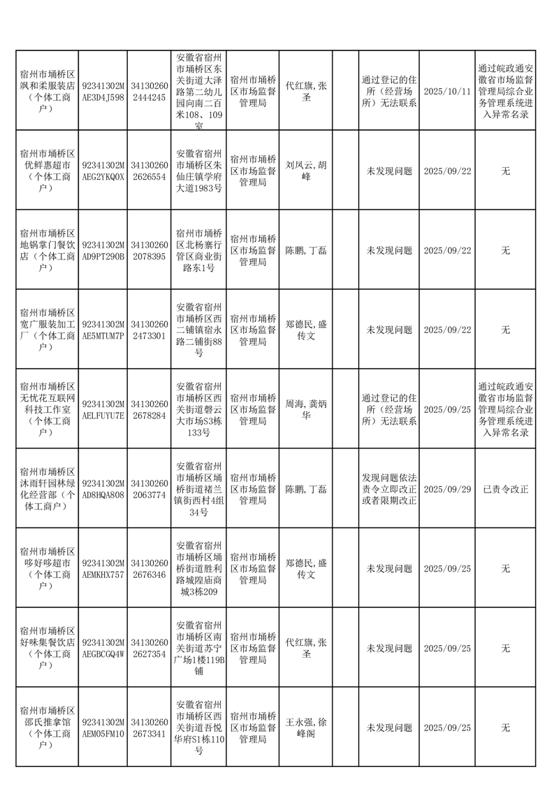 | 名称: | 宿州市埇桥区市场监督管理局2025年全区市场监督管理部门不定向(个体户)抽取计划(检查结果) | ||