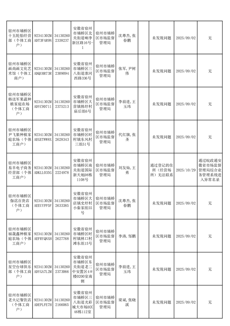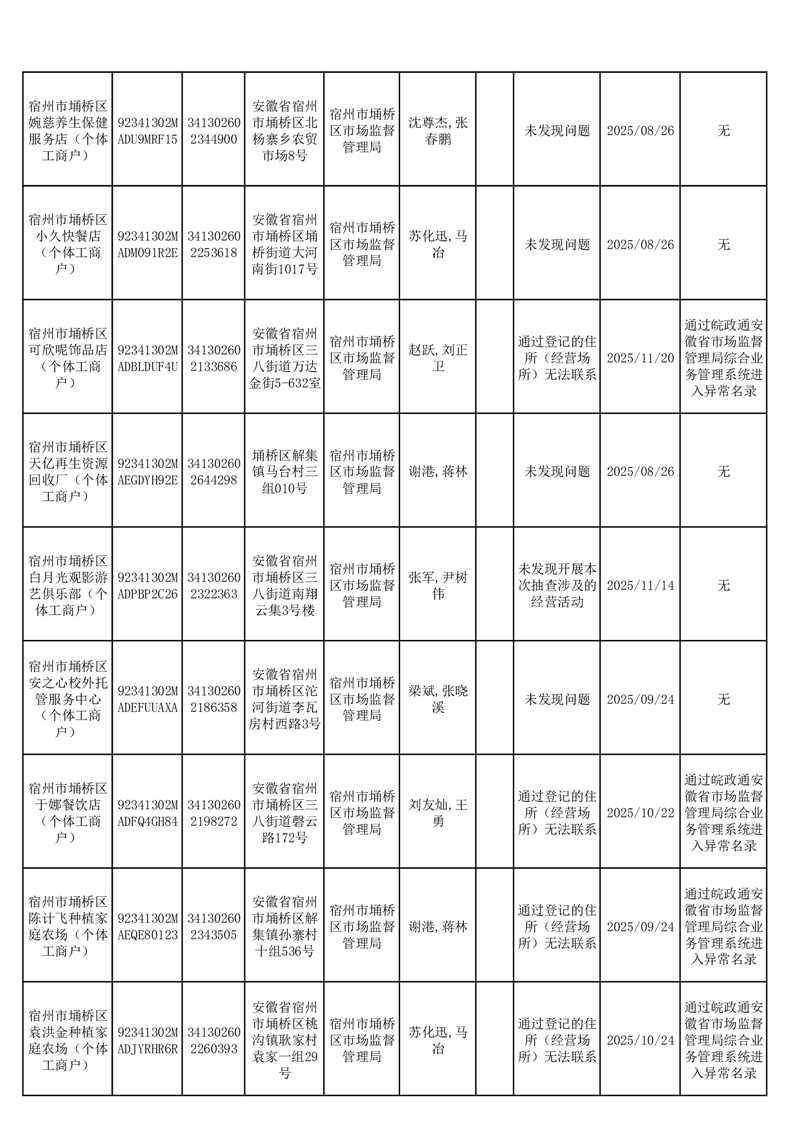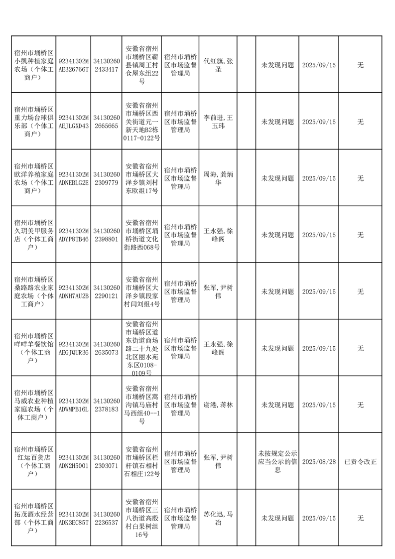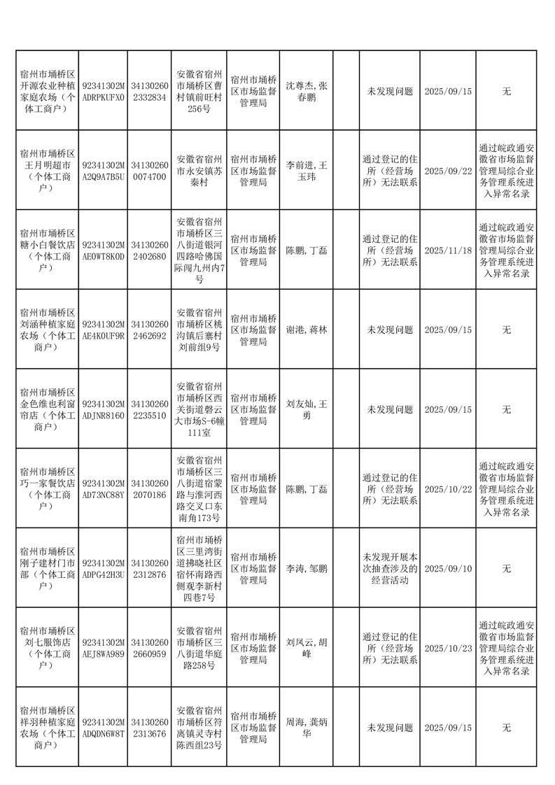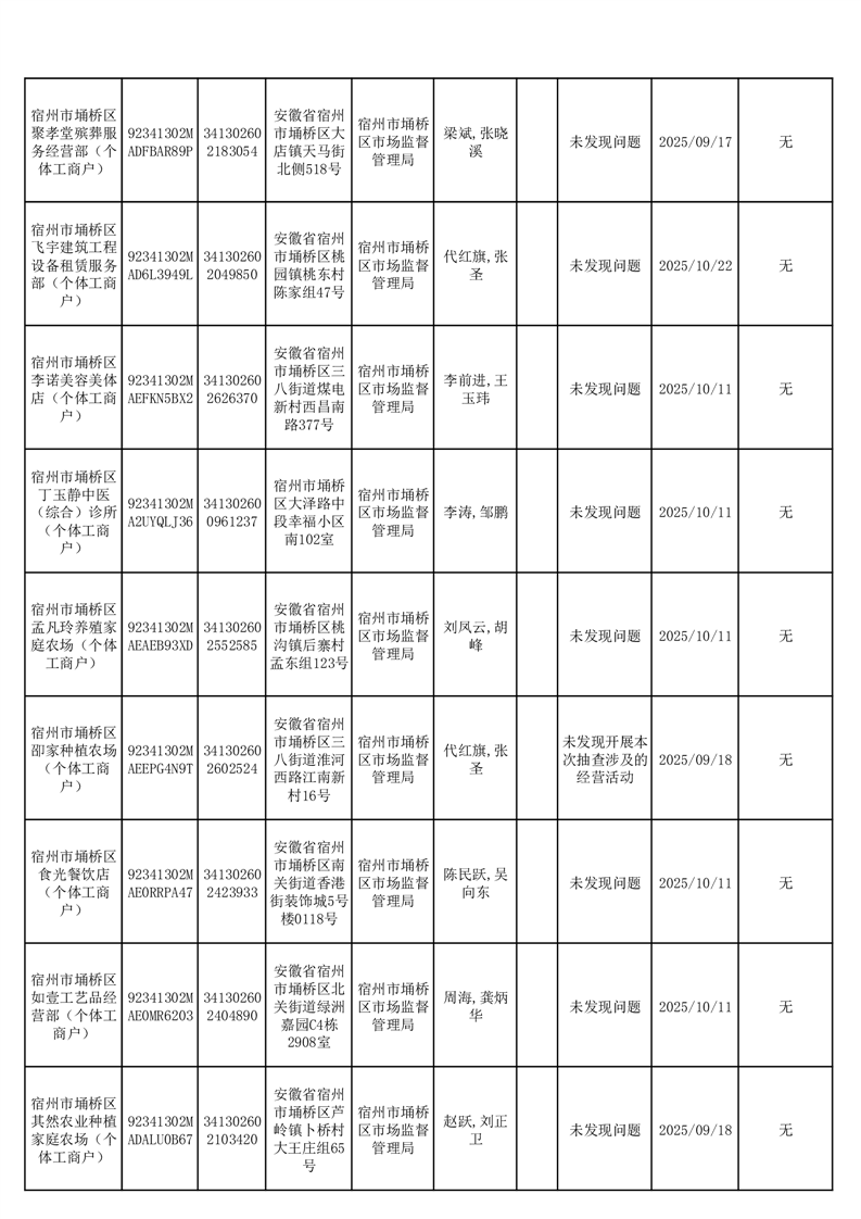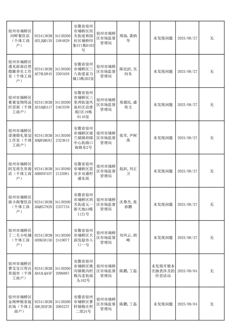 | 名称: | 宿州市埇桥区市场监督管理局2025年全区市场监督管理部门不定向(个体户)抽取计划(检查结果) | ||