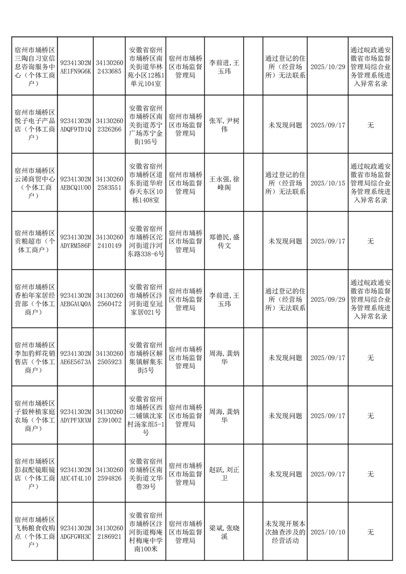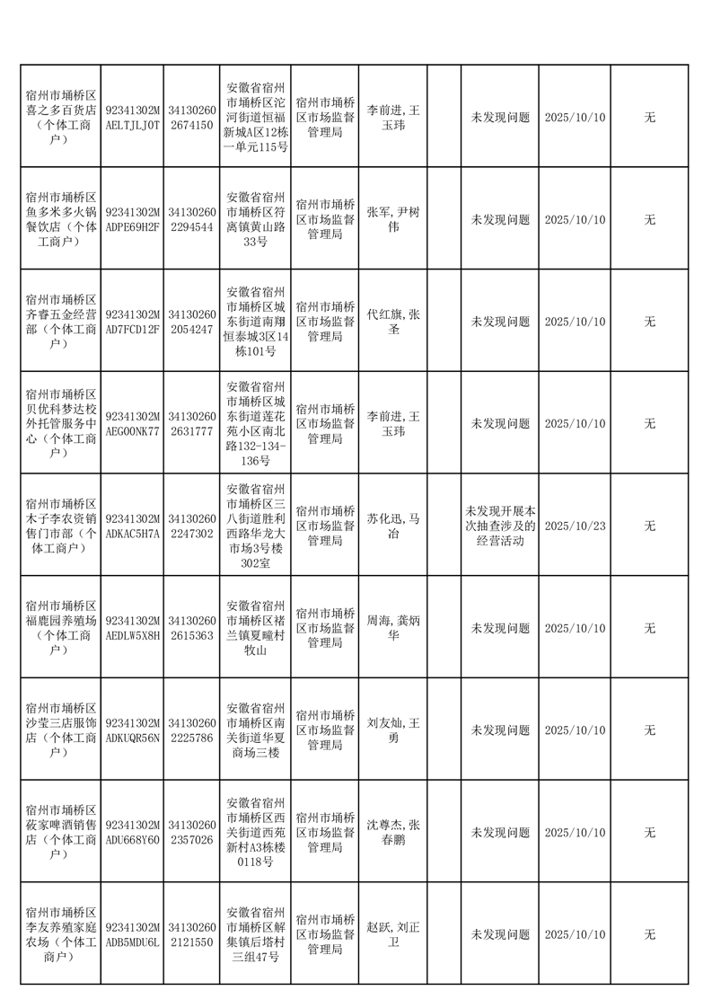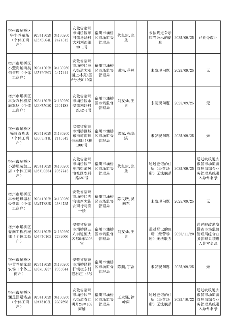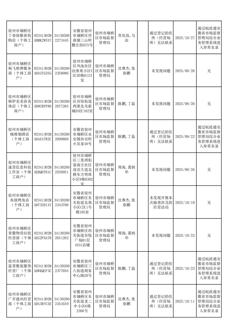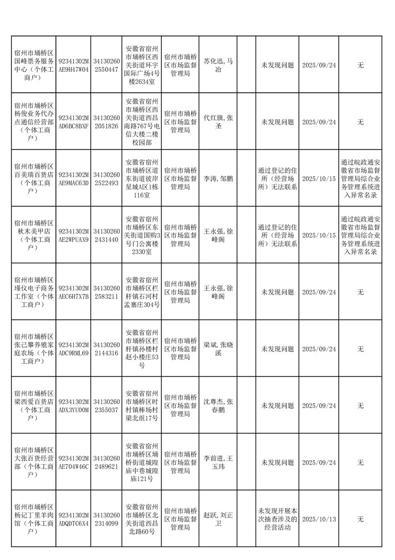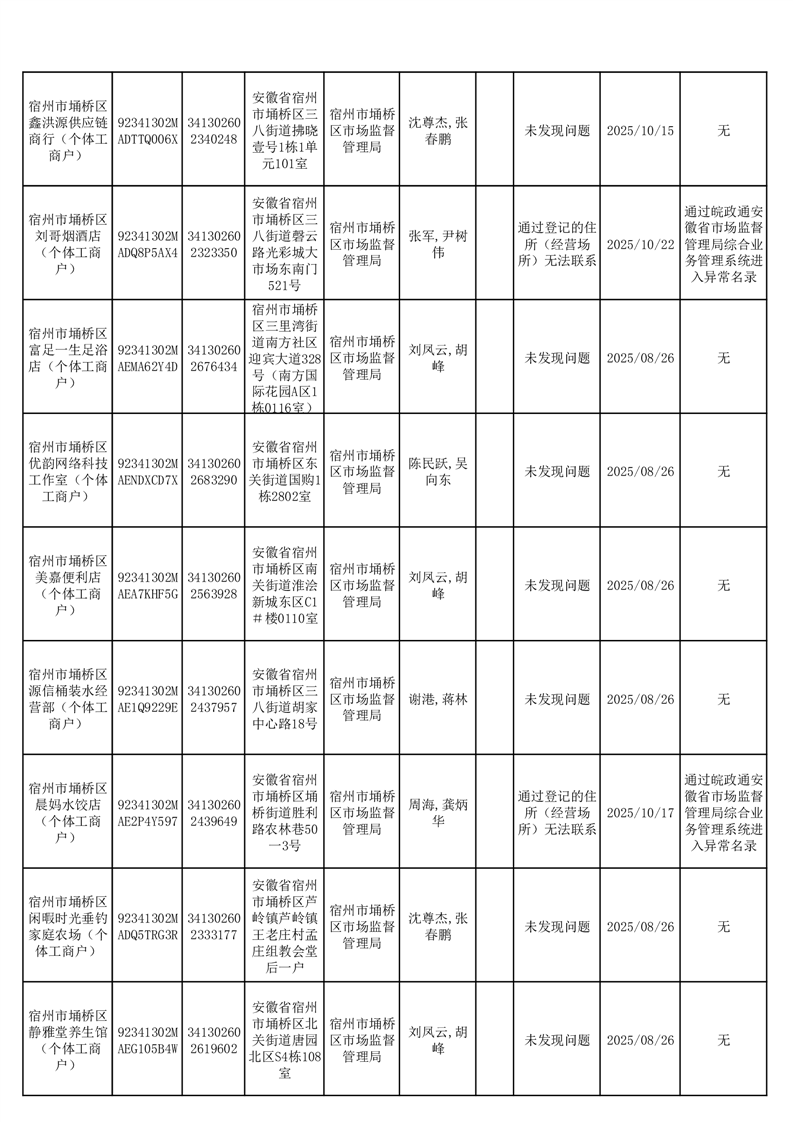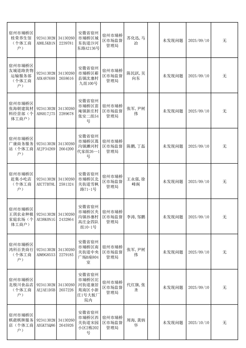 | 名称: | 宿州市埇桥区市场监督管理局2025年全区市场监督管理部门不定向(个体户)抽取计划(检查结果) | ||