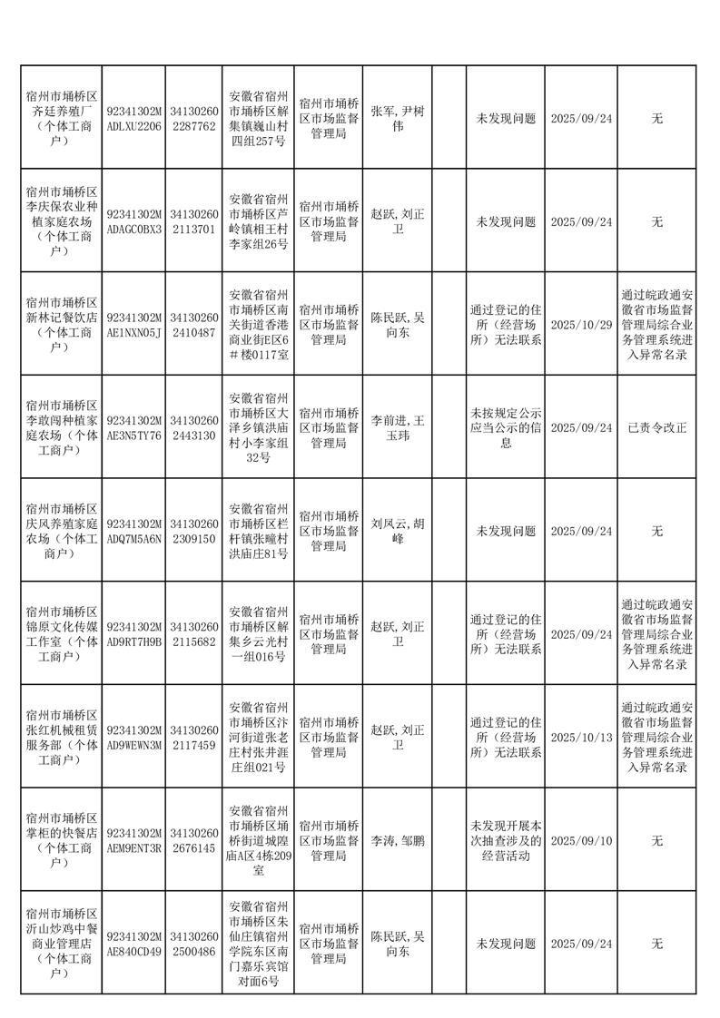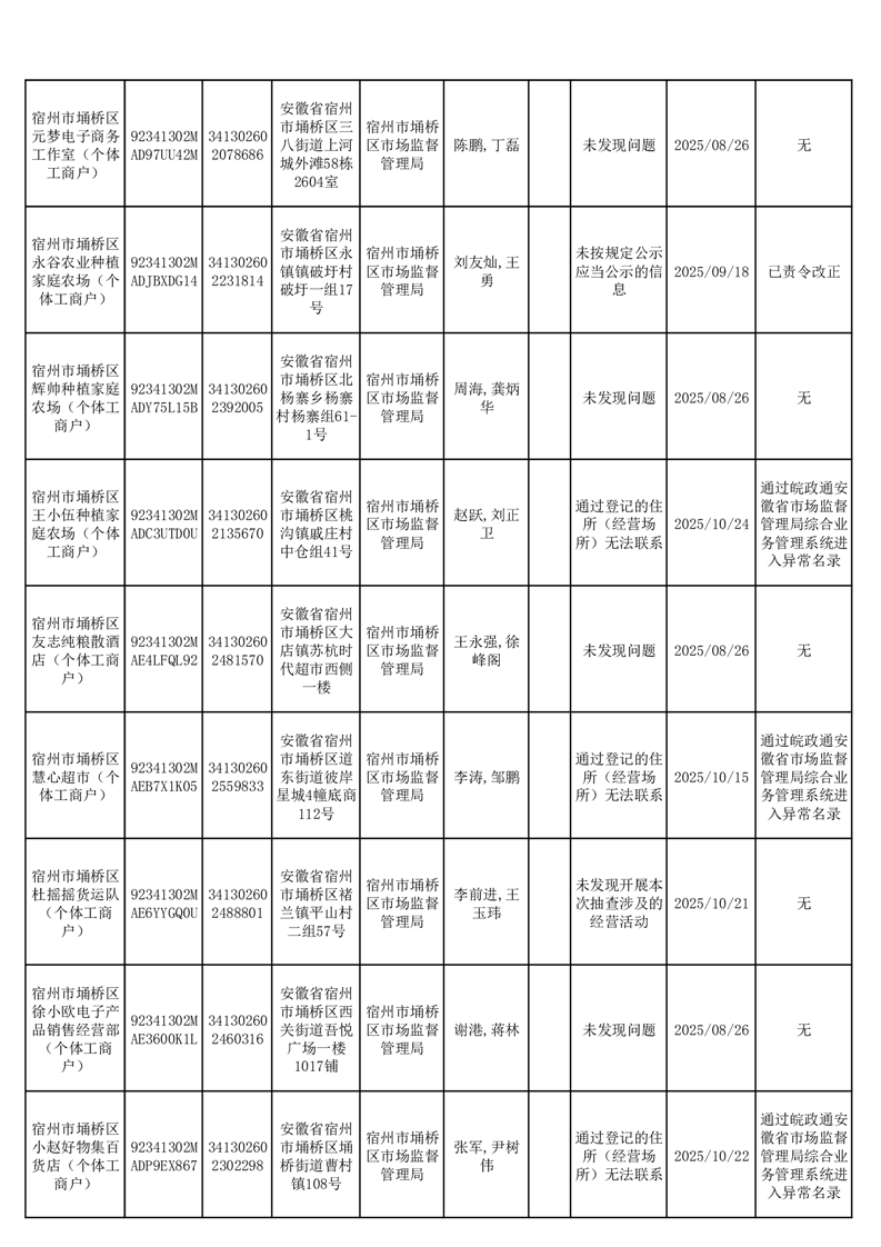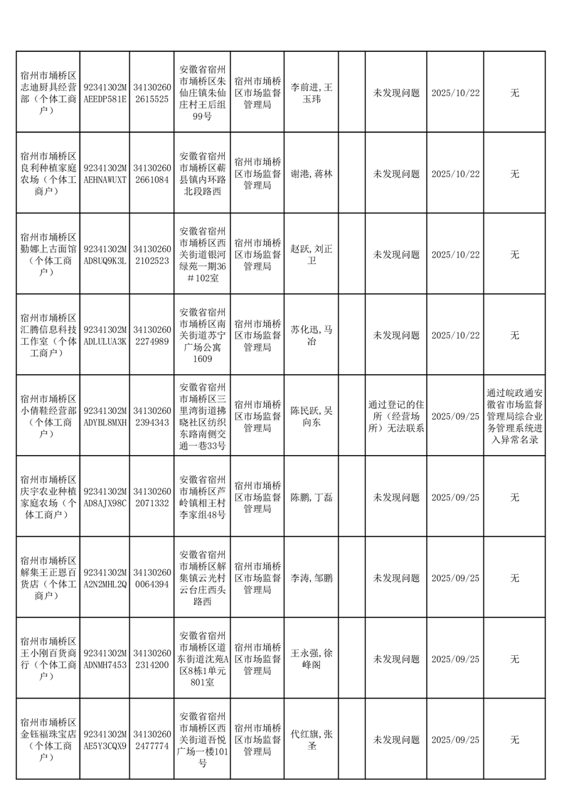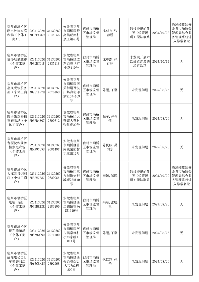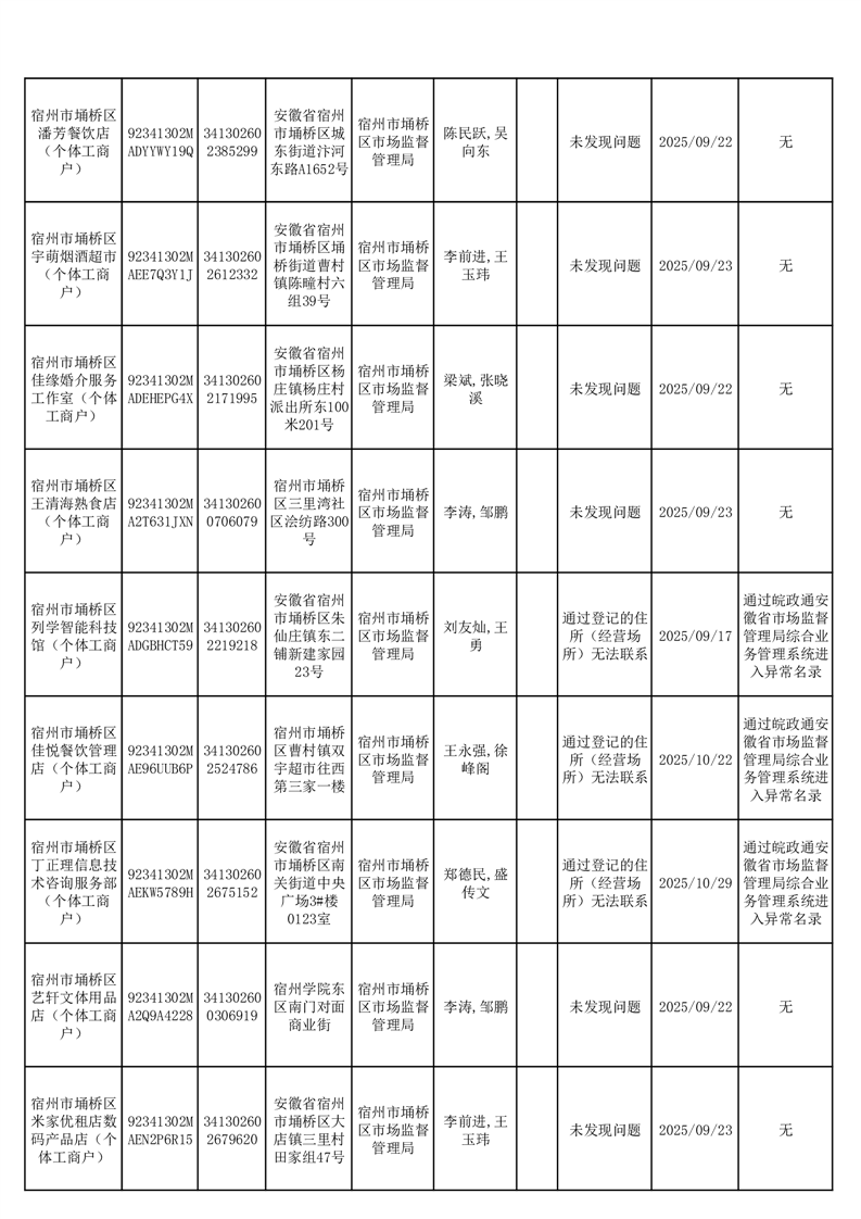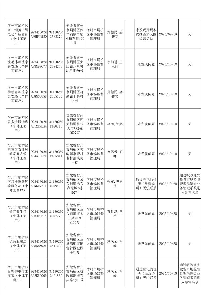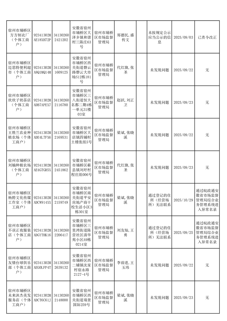 | 名称: | 宿州市埇桥区市场监督管理局2025年全区市场监督管理部门不定向(个体户)抽取计划(检查结果) | ||