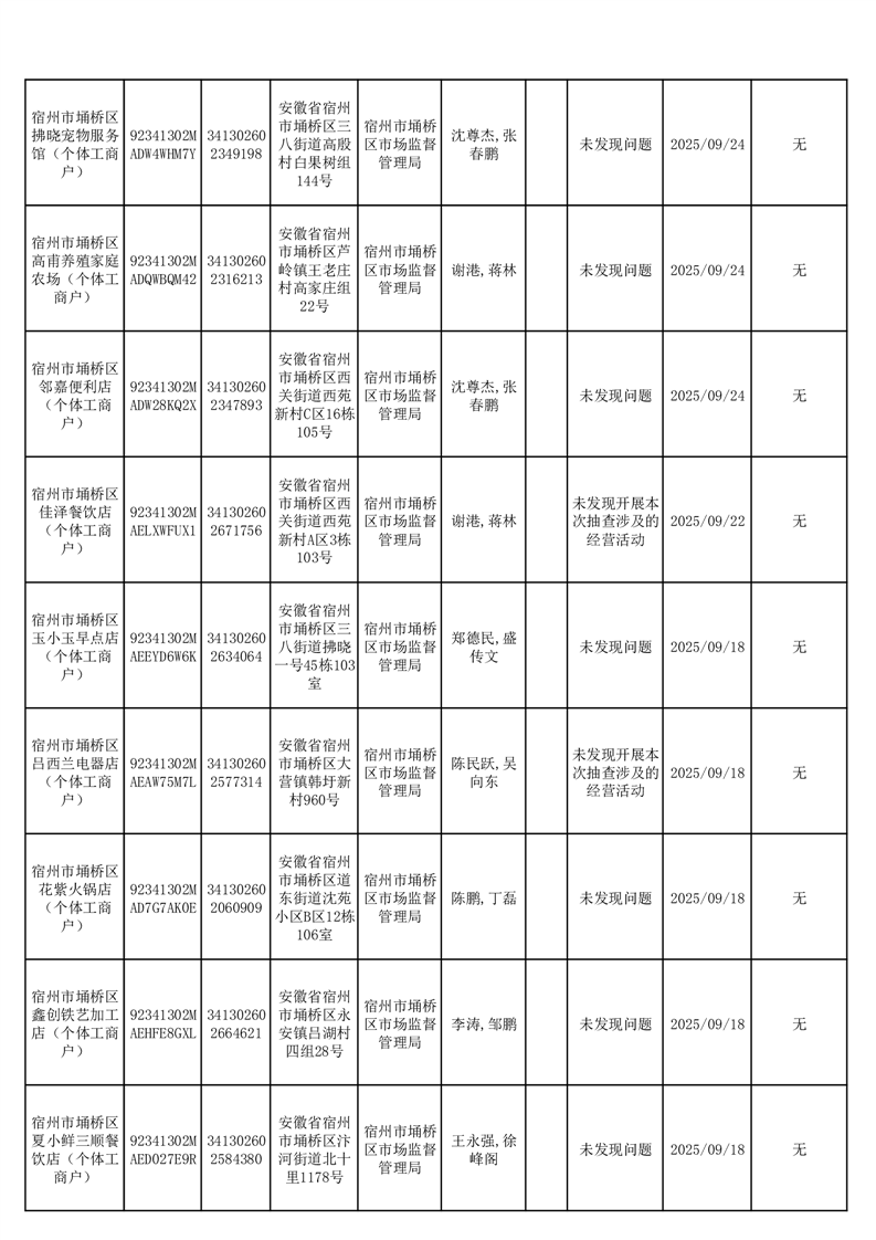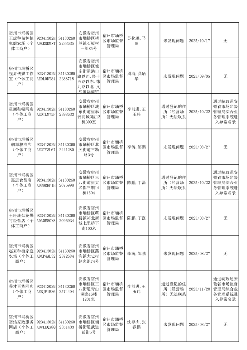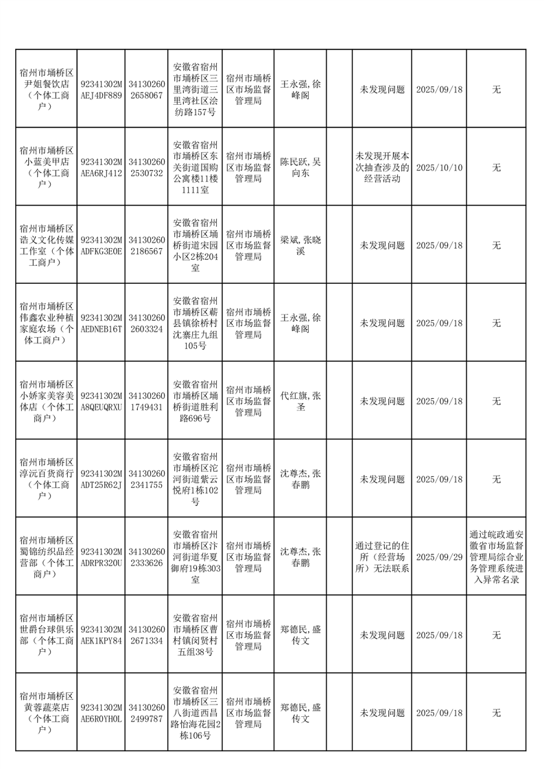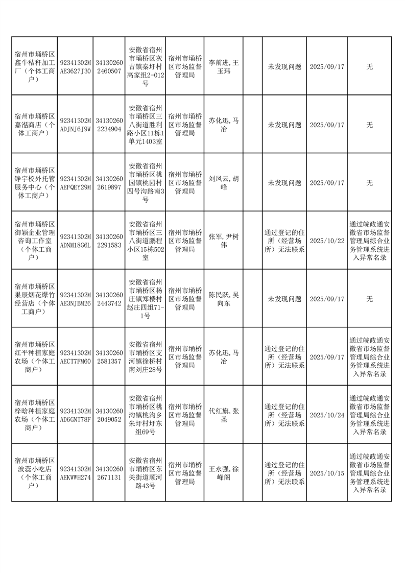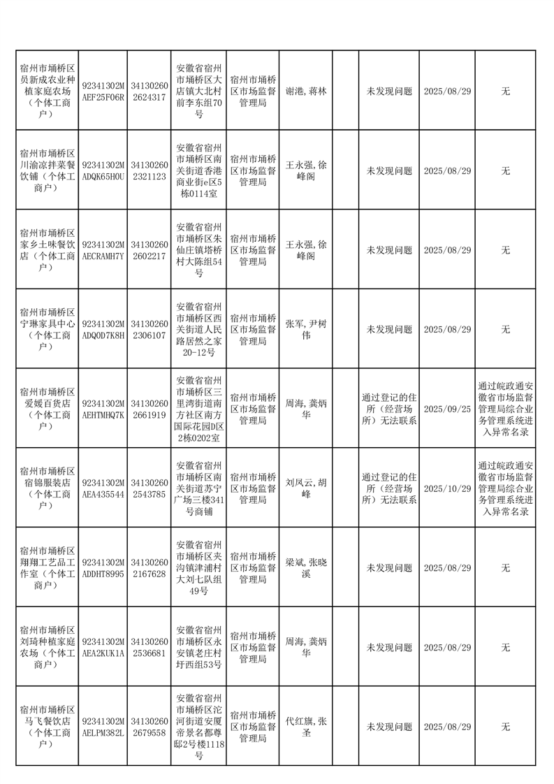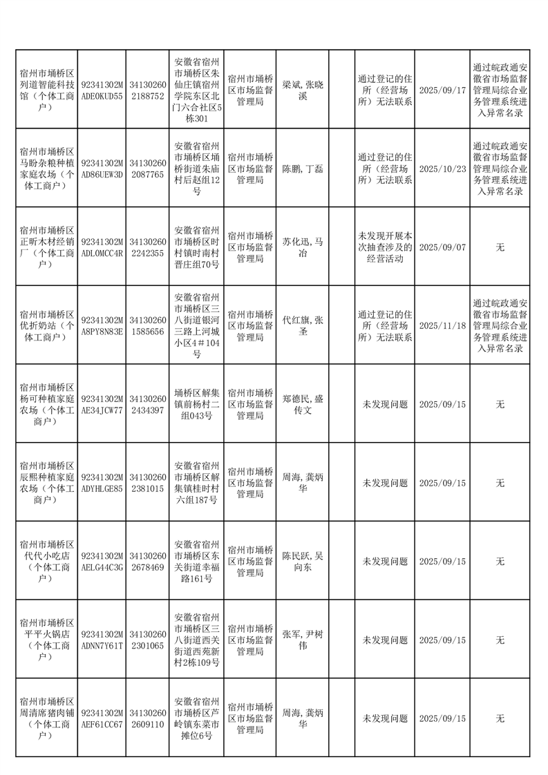 | 名称: | 宿州市埇桥区市场监督管理局2025年全区市场监督管理部门不定向(个体户)抽取计划(检查结果) | ||