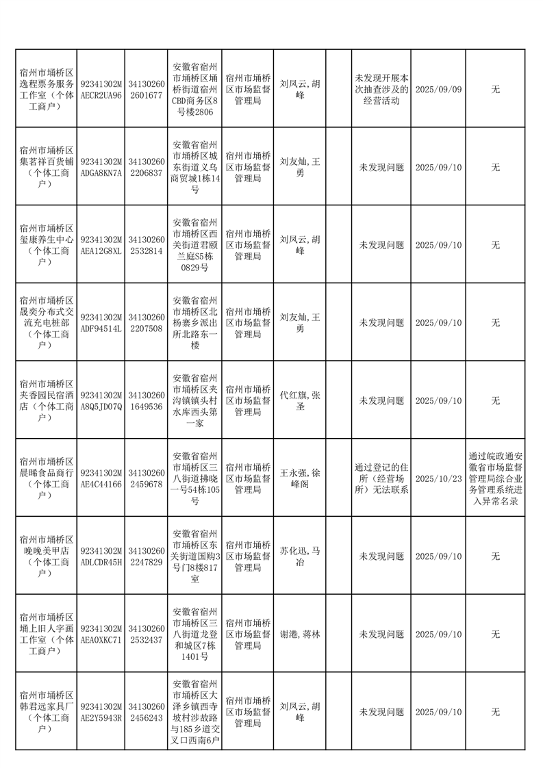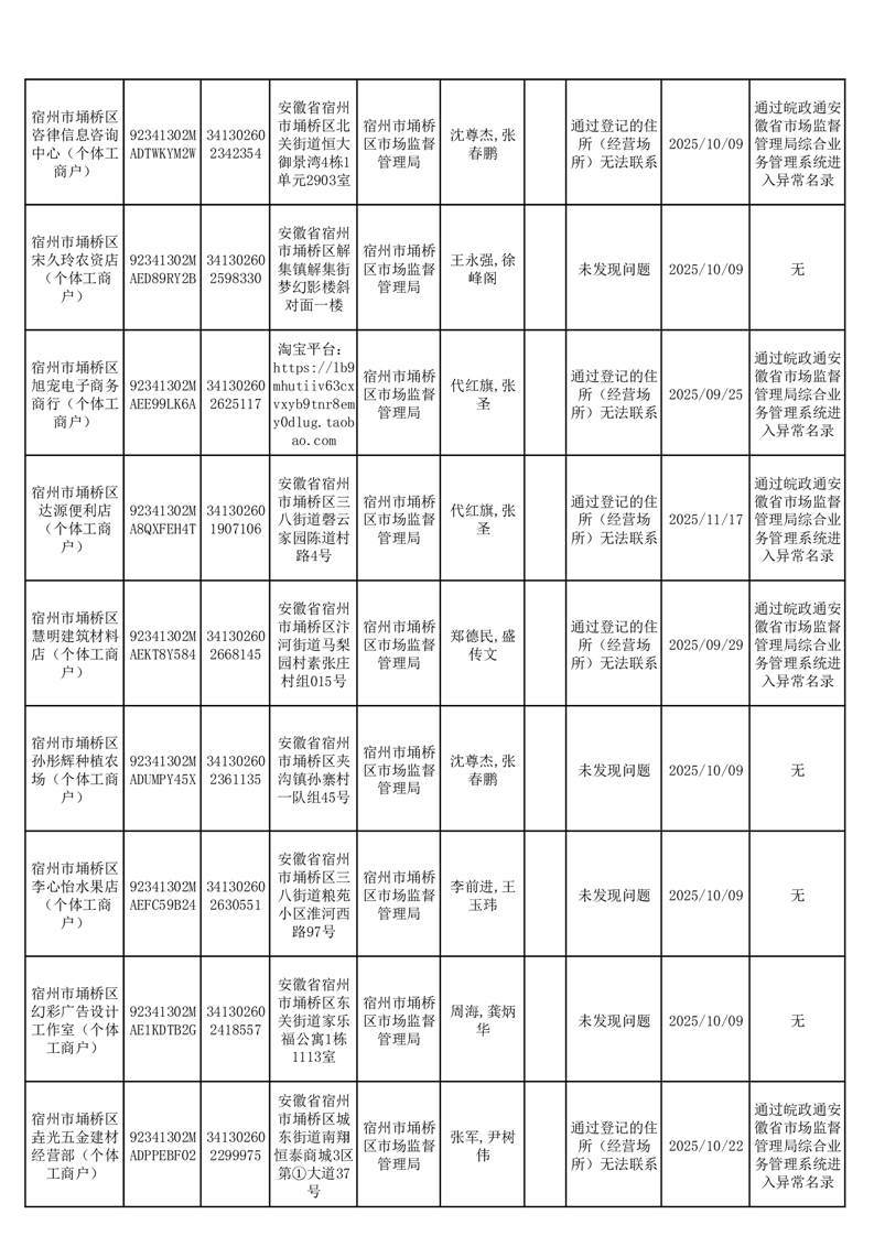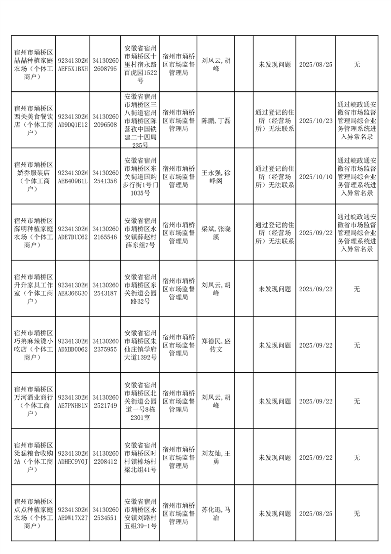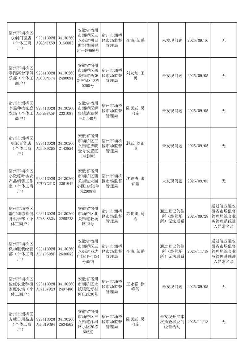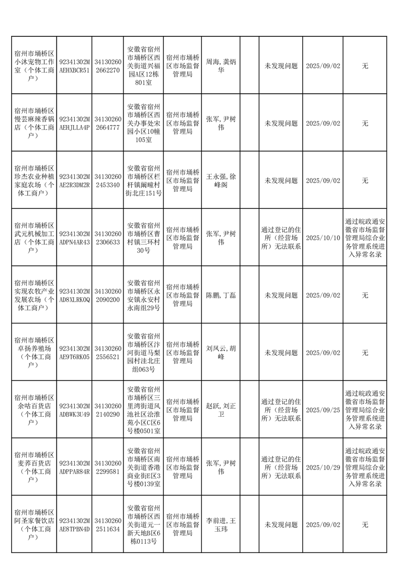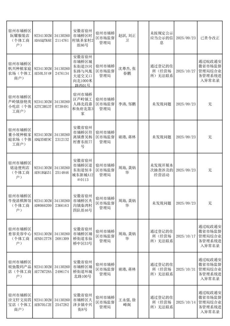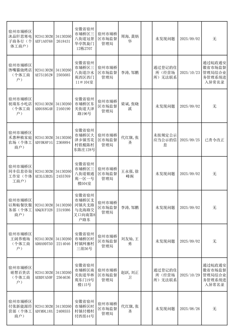 | 名称: | 宿州市埇桥区市场监督管理局2025年全区市场监督管理部门不定向(个体户)抽取计划(检查结果) | ||