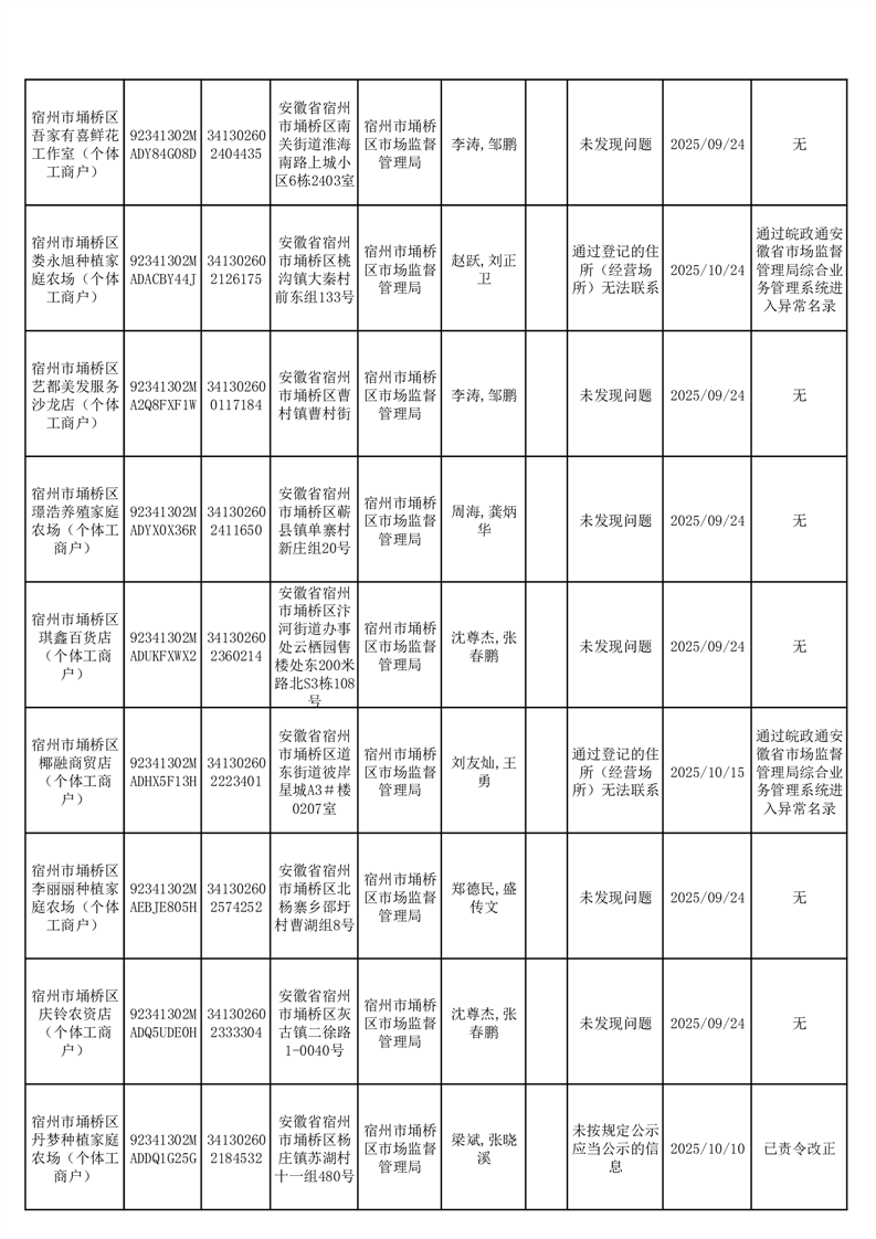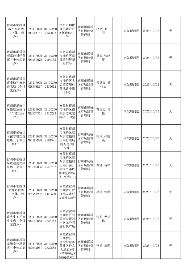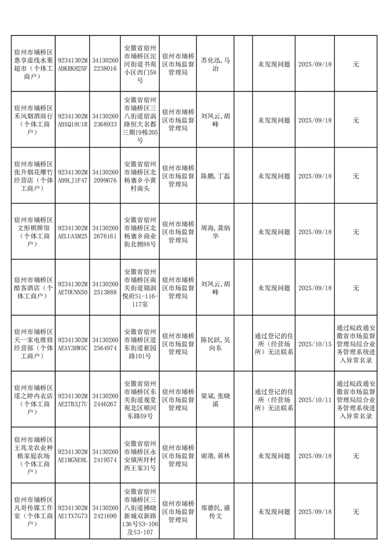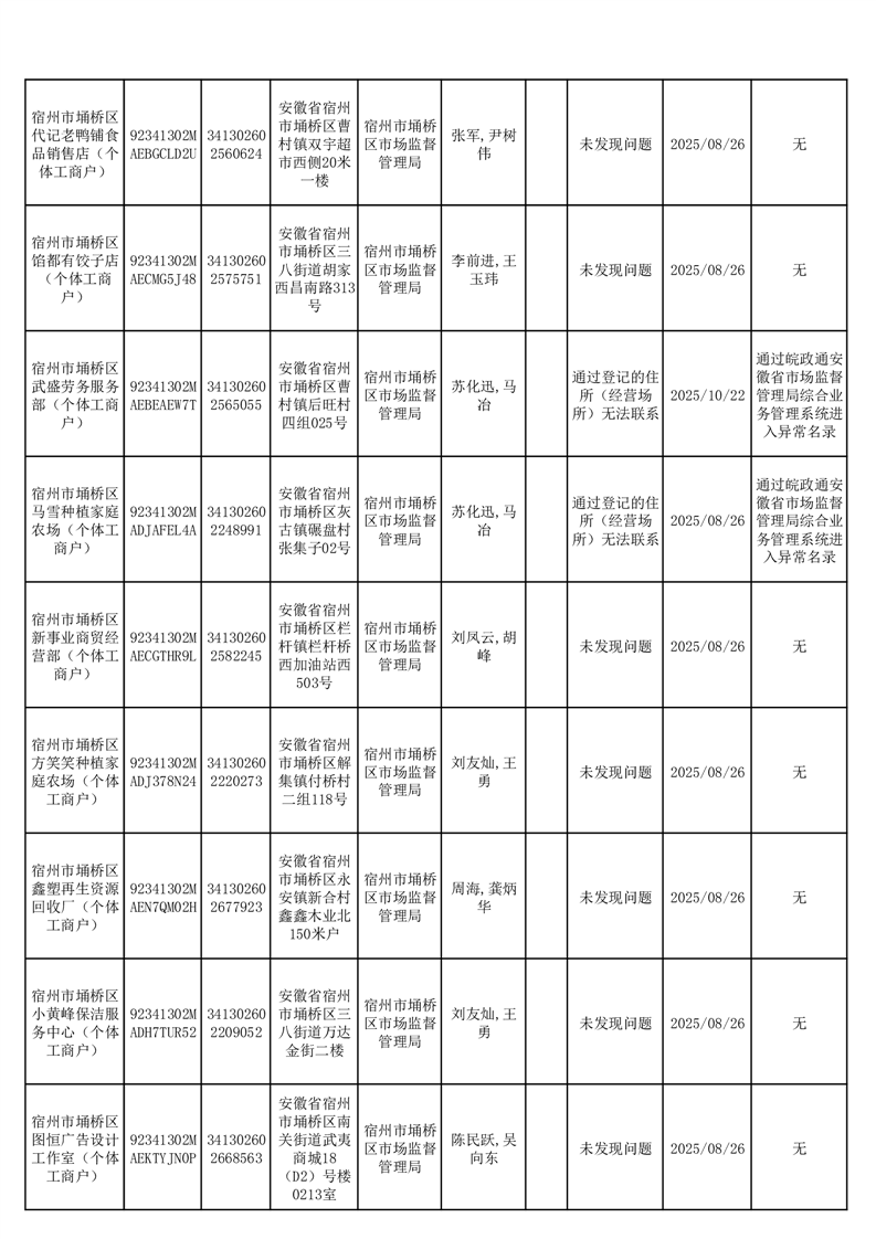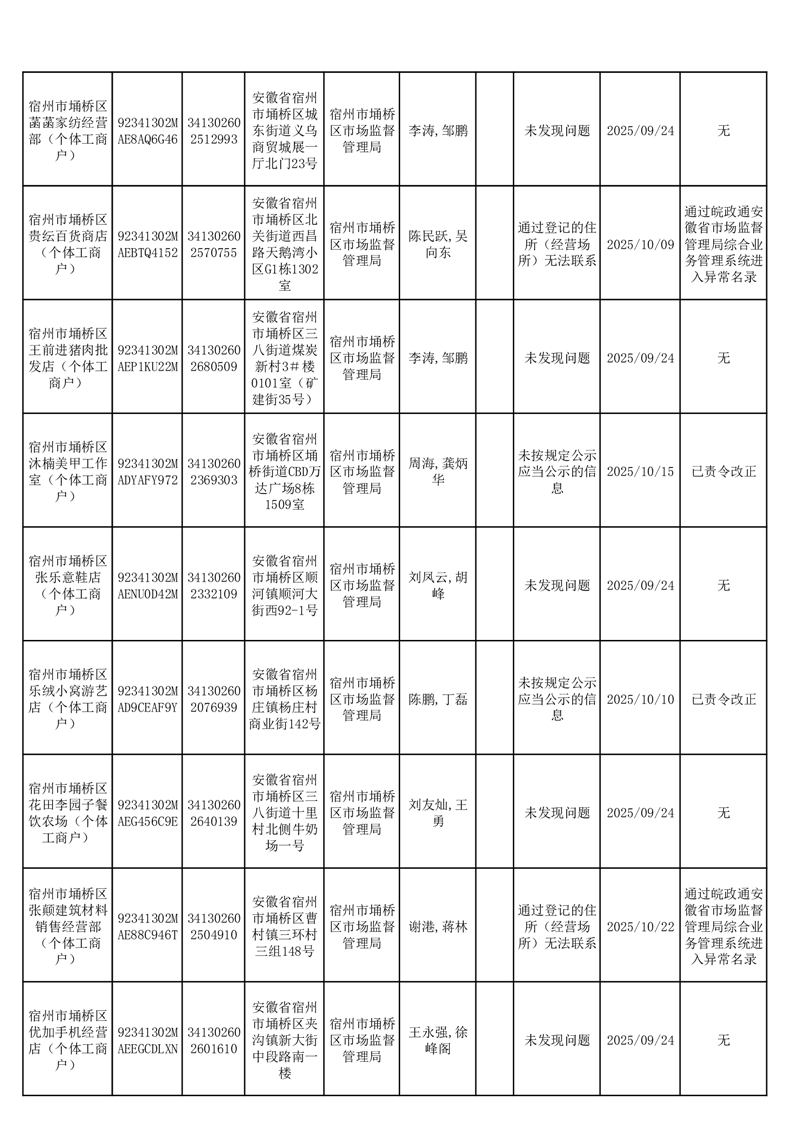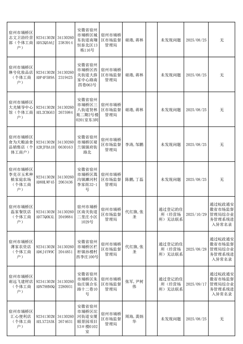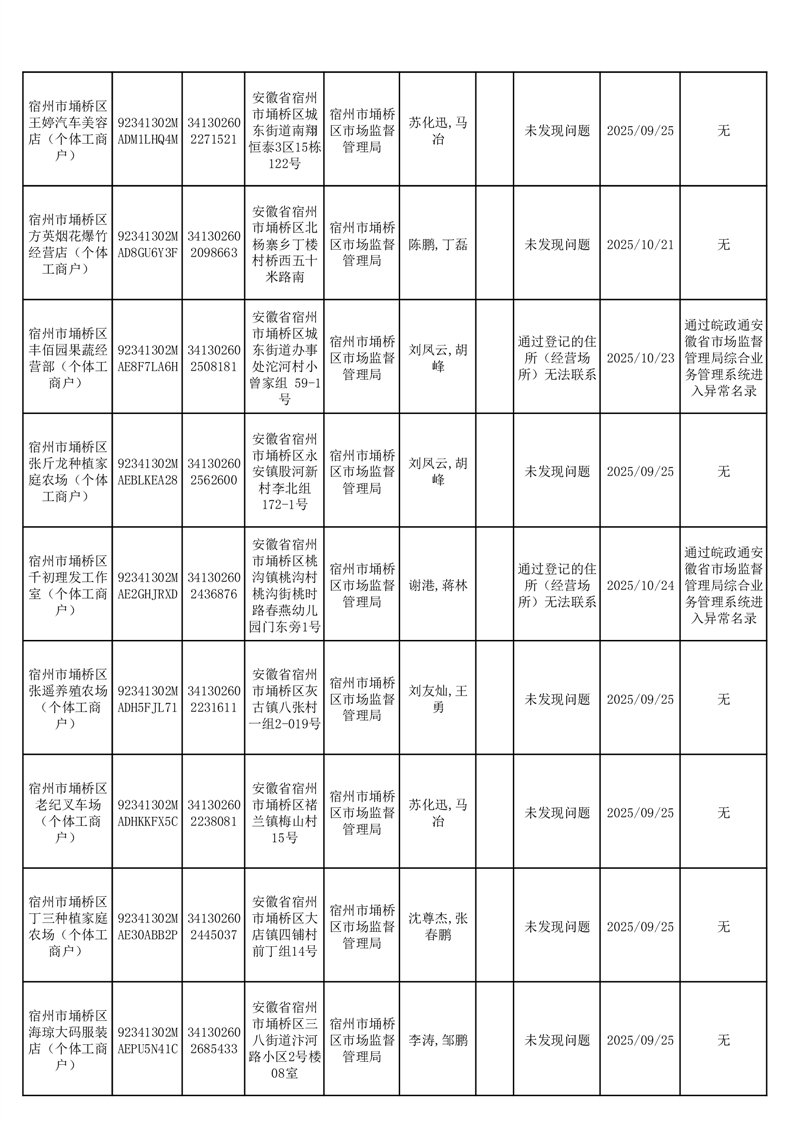 | 名称: | 宿州市埇桥区市场监督管理局2025年全区市场监督管理部门不定向(个体户)抽取计划(检查结果) | ||