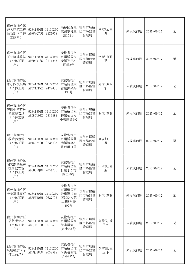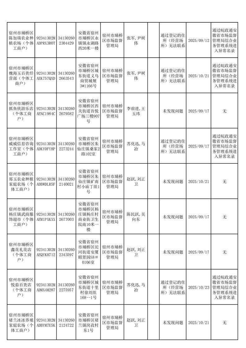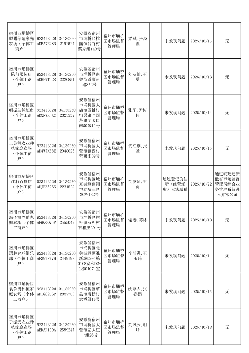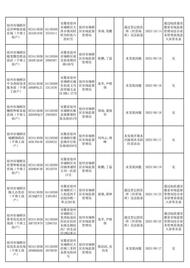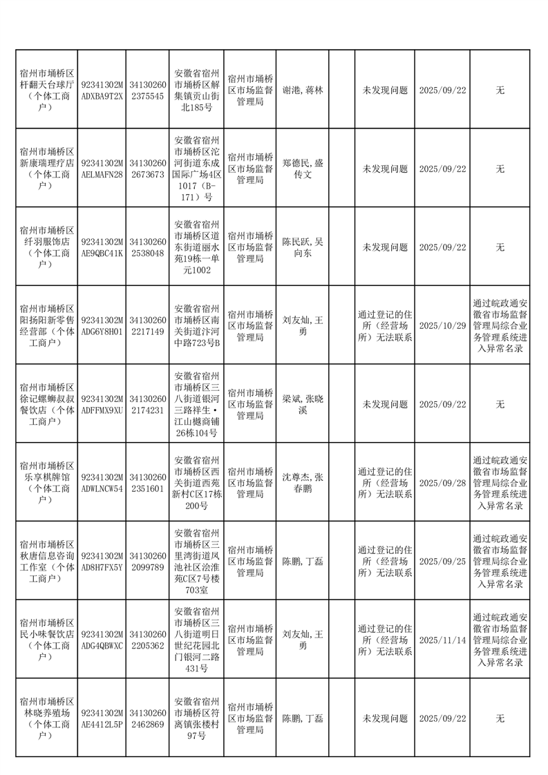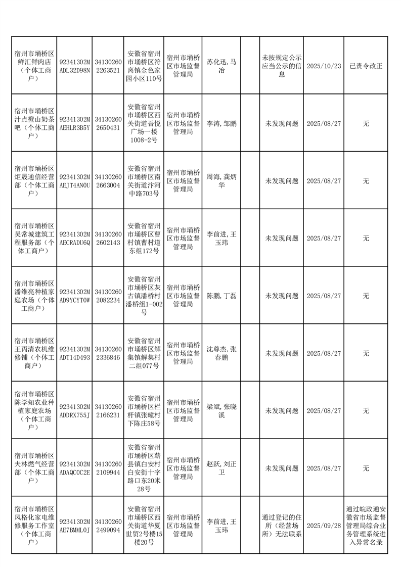 | 名称: | 宿州市埇桥区市场监督管理局2025年全区市场监督管理部门不定向(个体户)抽取计划(检查结果) | ||