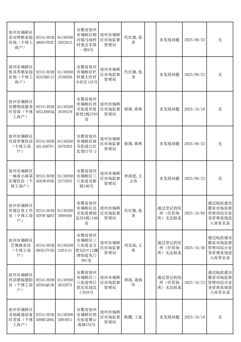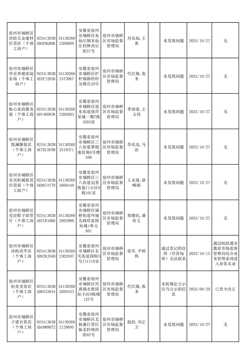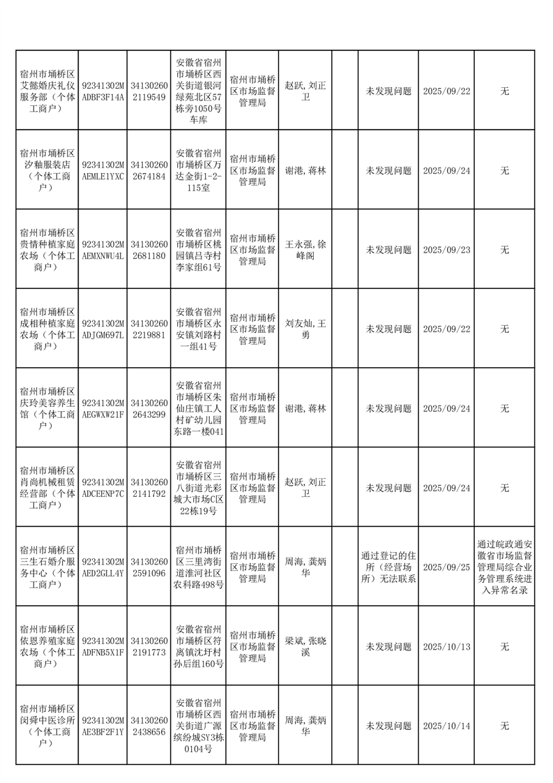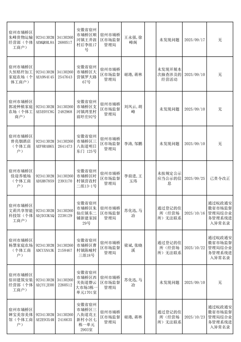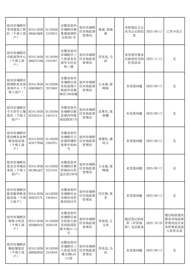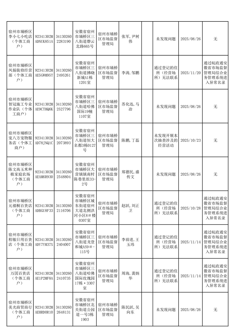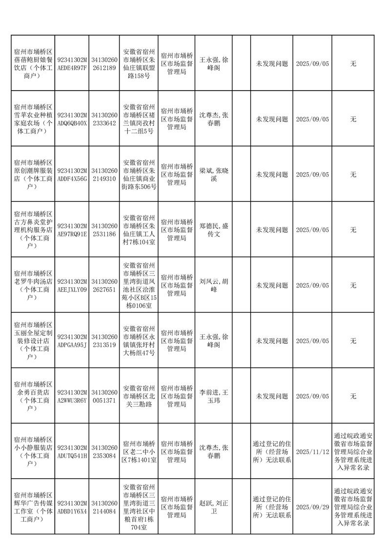 | 名称: | 宿州市埇桥区市场监督管理局2025年全区市场监督管理部门不定向(个体户)抽取计划(检查结果) | ||